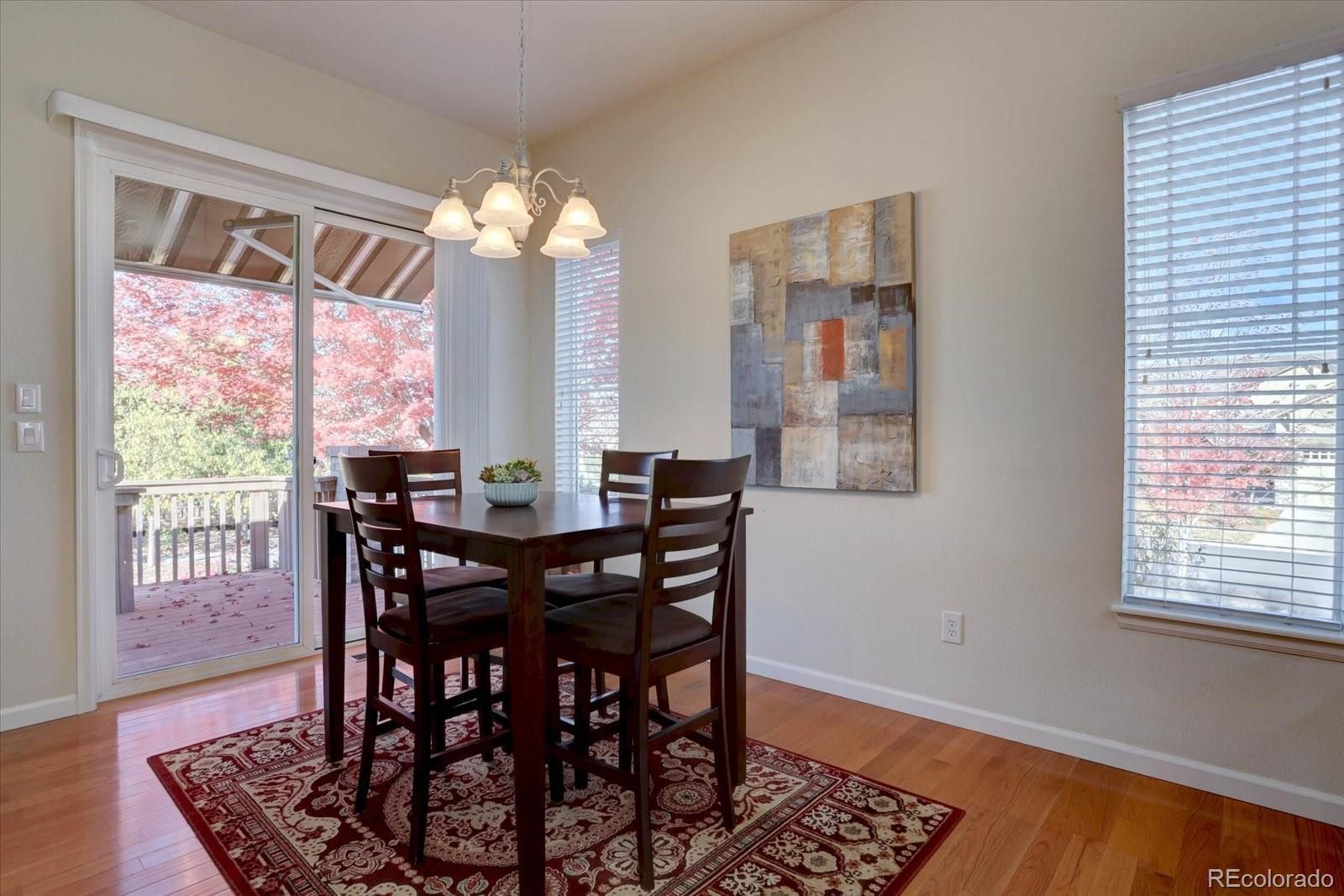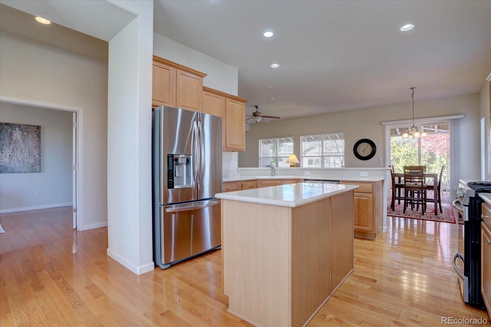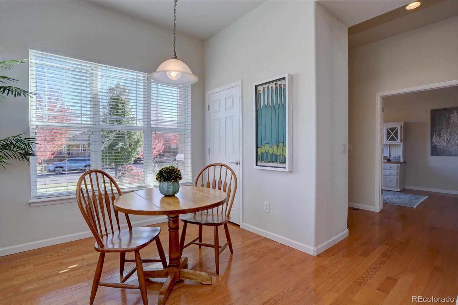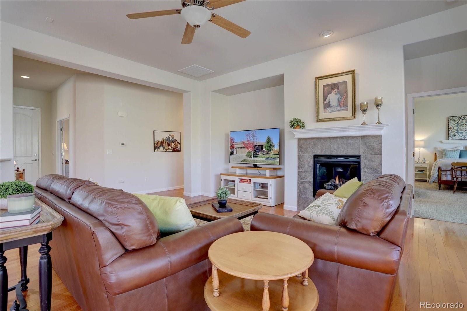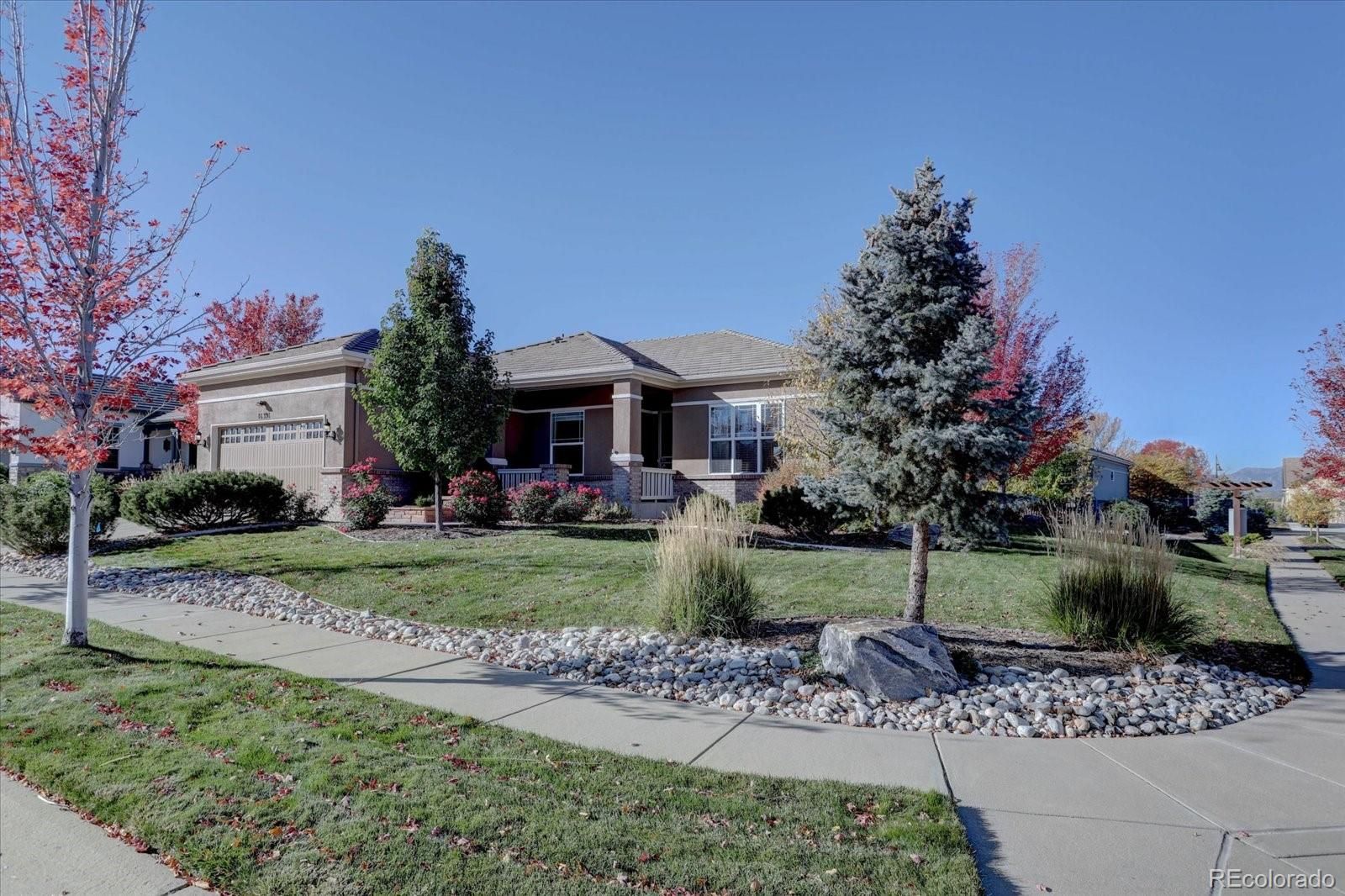 Come enjoy Anthem Ranch in this 2 BR, 2 Bath ranch style home with open concept floor plan, back deck, front covered porch and office. This corner lot property has minimal stairs to access the home and plenty of natural light. Hardwood flooring throughout main living areas and office, newer SS appliances, eat in kitchen with pantry and large center prep island. You'll love the community center - Aspen Lodge with it's gathering rooms, library, fitness center and indoor/outdoor pools. Amenities include tennis and pickleball courts, miles of walking trails, ponds, waterfalls and bocci courts. The lodge veranda also provides a wonderful setting for you to enjoy with stunning mountain views. Anthem Ranch is an award winning del Webb community on the Colorado Front Range. Come for the views, but stay for the lifestyle!