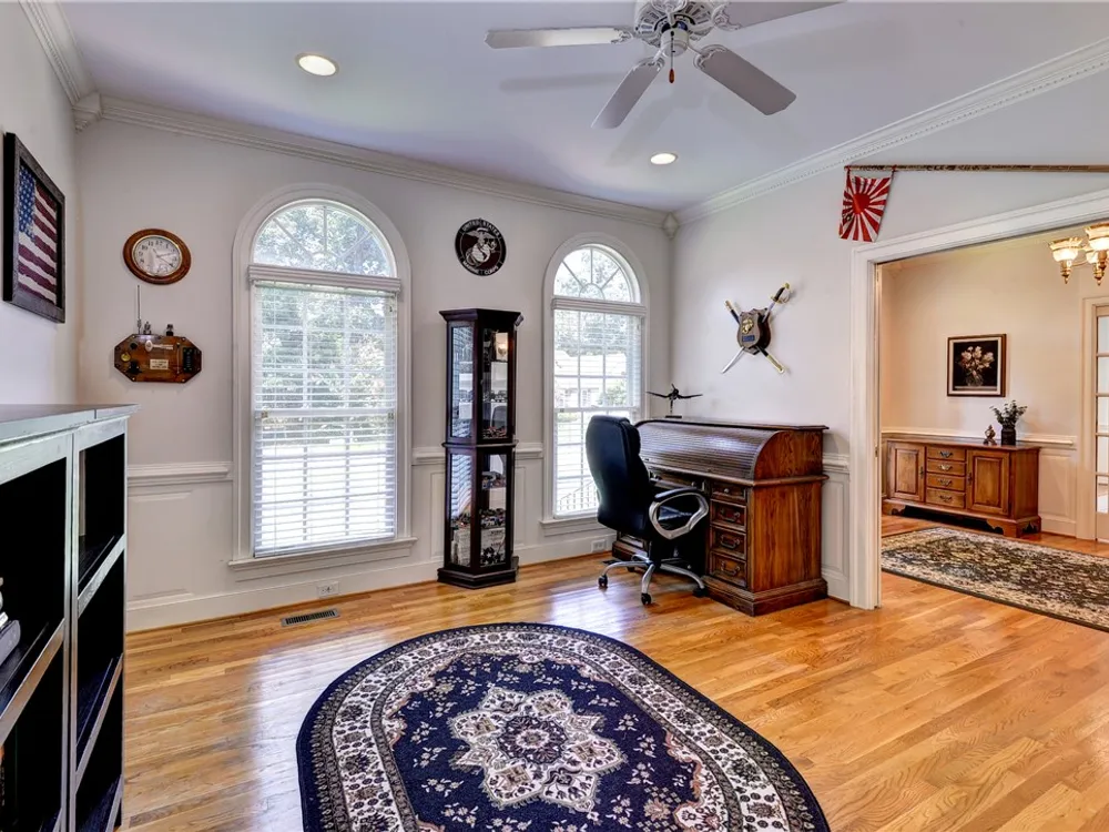 Spacious and flexible living in Ford’s Colony! This beautifully maintained home that backs to wooded privacy offers five bedrooms, 4½ baths and a smart layout ideal for today’s lifestyle or multi-generational needs. With 3,973 square feet, the home features two first-floor bedrooms, including a generous primary suite with fireplace, plus a second suite with an adjacent living area that is perfect for an in-law suite or private guest retreat. The light-filled great room with a gas fireplace opens to a screened porch and deck. The kitchen includes stainless appliances, a center island and a sunny breakfast area. Upstairs, discover three additional bedrooms, a large bonus room with wet bar and an office with built-ins. Additional highlights include hardwood floors throughout, three gas fireplaces, two walk-in attics, NEW tankless water heater and a 2½ car garage. This is a home designed for flexibility, comfort and privacy in a premier gated community.