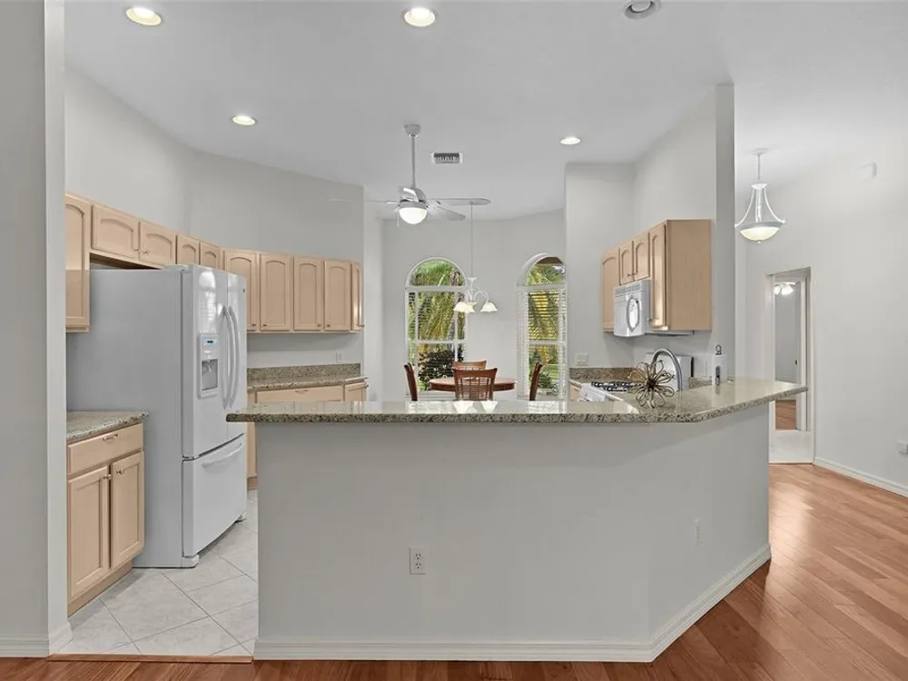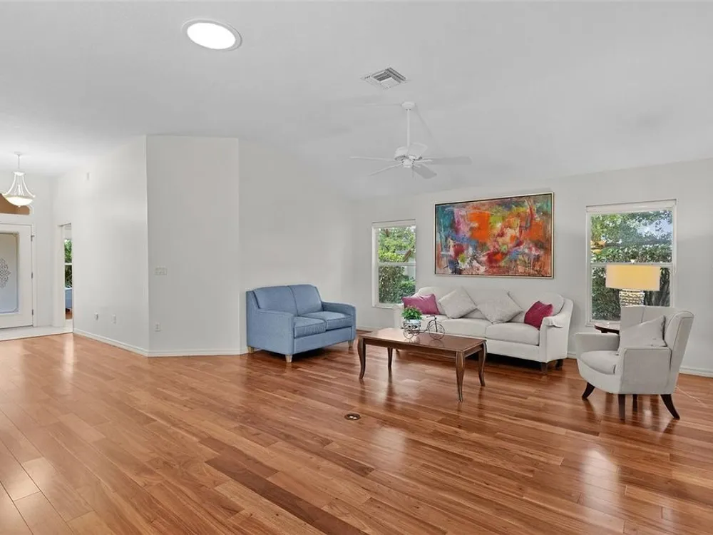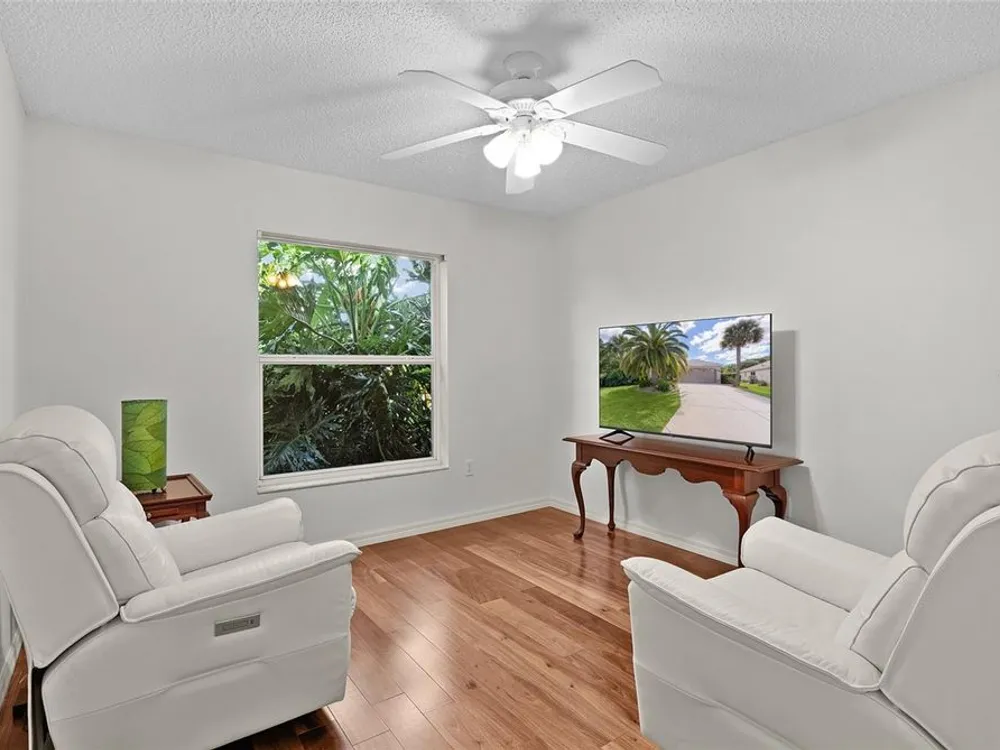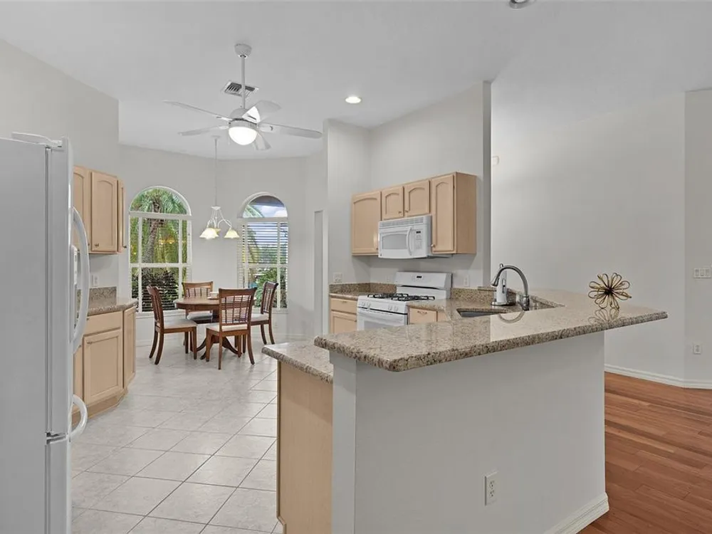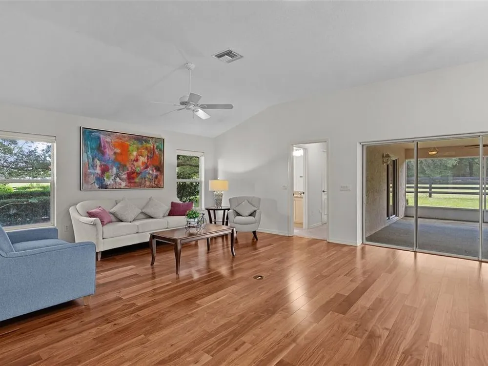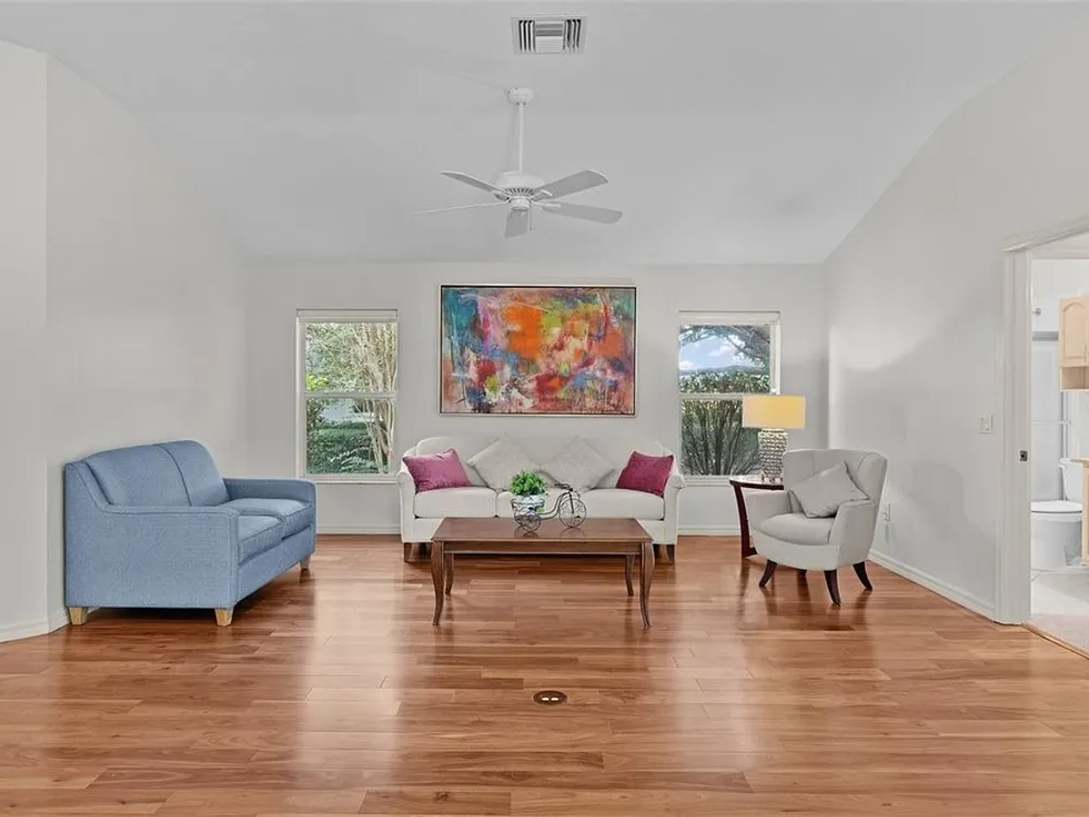 ~NO BOND~ ~2025 ROOF~ ~2017 HVAC~ This EXPANDED and CUSTOMIZED 4/3 GARDENIA is perfectly nestled in the Village of MIRA MESA, backing up to a PEACEFUL PRESERVE with mature landscaping for added PRIVACY and natural beauty. Step inside to find HARDWOOD FLOORS flowing from the entryway into the living and dining areas, complemented by VAULTED ceilings, a SOLAR TUBE, and a ceiling fan for light and comfort. The kitchen features CERAMIC tile flooring, GRANITE countertops, GAS hook-up, roll-out cabinetry, and a cozy eat-in area with a ceiling fan—ideal for casual dining. There are 2 PRIMARY SUITES with en suite baths! The 1st primary suite offers HARDWOOD floors, dual walk-in closets, sliders to the lanai, and a beautifully updated EN SUITE bath with a NEW TILED walk-in shower, linen closet, DOUBLE SINKS, QUARTZ countertops, NEW vanity, and toilet. The guest bedrooms provide ample flexibility, 2 feature carpets (including the 2nd primary), built-in closets, and ceiling fans, while the 3rd includes HARDWOOD flooring. Both guest baths are updated with CERAMIC tile, tiled tub/shower combos, linen closets, and GRANITE countertops. Enjoy Florida living year-round in the ENCLOSED LANAI with carpeted flooring, telescoping sliders, ceiling fan, and a LARGE BIRDCAGE overlooking the serene PRESERVE—with ROOM TO ADD A POOL! The 2-car garage features painted flooring, attic stairs, and a laundry tub for added convenience. A perfect blend of comfort, updates, and nature views, this Mira Mesa gem invites you to start living The Villages lifestyle today! Close to Spanish Springs Town Square and Lake Sumter Landing with all the conveniences of shopping, restaurants and medical along US 441 and CR466.