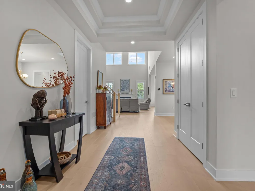 This expanded Welman elevation includes upgrades and options that are valued at almost 200,000 making this is a truly spectacular home. open floor plan drenched in sunlight vaulted ceilings in the great room tray ceilings in the foyer and primary bedroom. you will appreciate the abundance of natural light. Gorgeous hardwood flooring throughout. The center island, fabulous gourmet kitchen is a true chefs delight, featuring upgraded quartz countertops, gas cook top with pot filer, under counter lighting and stainless appliances. Custom made Hunter Douglas California shutters throughout. The great room with vaulted ceilings and walls of windows, also offers a gas fireplace, perfect for those cool winter evenings at home! The primary bedroom suite is spacious and includes a tray ceiling and sitting area. The sumptuous main bath includes a large, walk-in shower with seat and dual sinks, along with large walk-in closets. The main level also includes a second well-proportioned bedroom and full bath. The upper level offers additional living space that includes a spacious loft that is an ideal space for a home office, along with a third bedroom and full bath. 2 car garage, back patio. You will also find a large, unfinished storage room on this floor, as well. The extensive list of upgrades and options is comprehensive. This home is situated on a great lot within the 55+ community, just steps away from the clubhouse which offers guests convenient additional parking. The 12,000 sq. ft clubhouse and community offer extensive amenities including indoor and outdoor pool, pickle ball, tennis, bocce, state of the art fitness center, card room, banquet room and billiards. Enjoy the community walking trails, as well. Don't miss the chance to enjoy the carefree, upscale lifestyle that Regency at Yardley offers!
