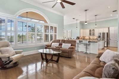 Welcome home to this spacious and inviting 4-bedroom, 3-bath residence with a flex room, ideally situated in the desirable Country Club of Mount Dora. Designed for comfort and entertaining, this home features an open floor plan with both a family room and a formal living area, providing plenty of space for gatherings and everyday living. The kitchen offers an abundance of cabinet space, bar seating, and a breakfast nook filled with natural light. The downstairs primary suite is a relaxing retreat, complete with direct access to the pool, a walk-in closet, dual sinks, a soaking tub, and a separate shower. Upstairs you’ll find additional bedrooms and a full bath, perfect for guests or family. The versatile flex room can easily serve as an office, hobby space, or playroom to fit your needs. Step outside to your private backyard oasis featuring a heated, saltwater pool with a view of the tranquil waters of Loch Leven. The covered and screened patio provides plenty of space to unwind, enjoy morning coffee, or host friends while taking in the peaceful lake view. Located in one of Mount Dora’s most sought-after and secure communities, you’ll enjoy the beautifully maintained Country Club of Mount Dora with access to golf, tennis, and a clubhouse restaurant. Downtown Mount Dora is just minutes away, offering quaint shops, local dining, and year-round festivals. This property truly offers the best of Florida living—comfort, style, and a stunning setting.