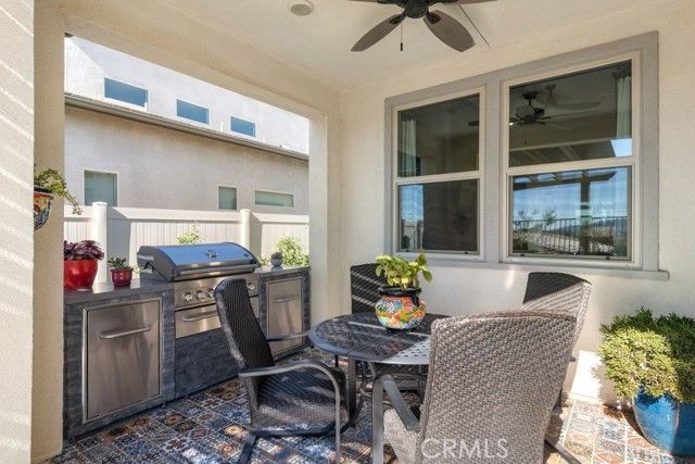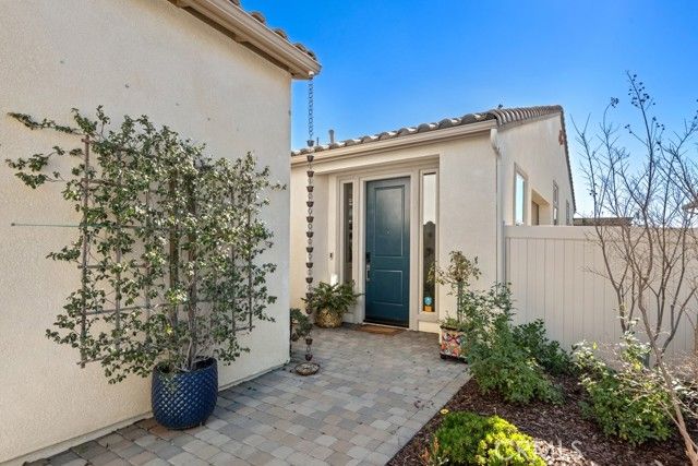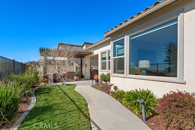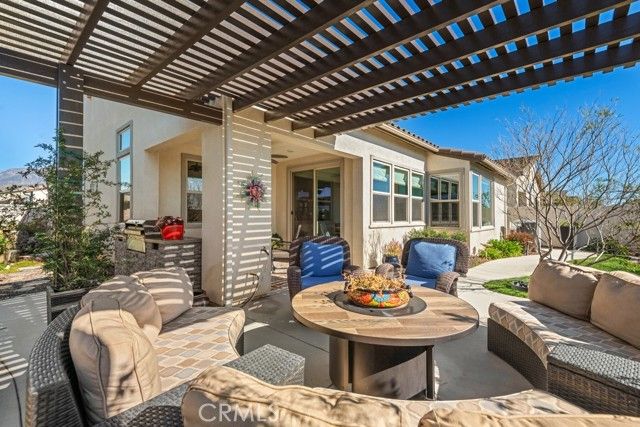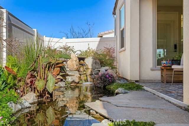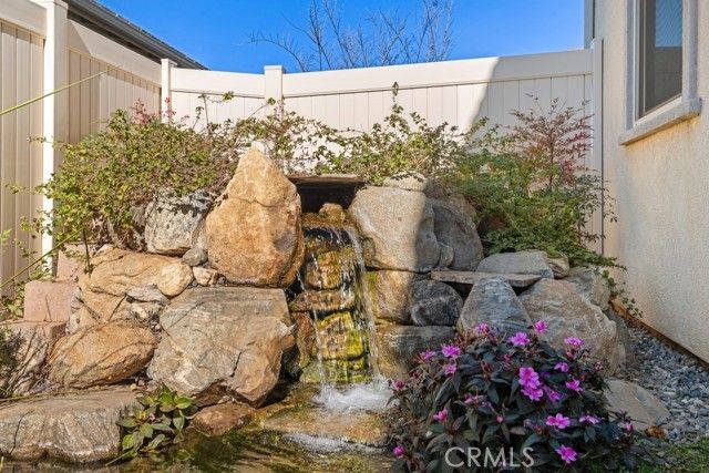 Stunning home that shows like a model! Wonderful curb appeal with paver walkways. This immaculately maintained and highly upgraded 2 BD / 2 BA home is located in Beaumont’s newest 55+ gated community, Altis! Featuring a premium lot with panoramic mountain views, great curb appeal, and Paid-Off 8-panel Solar System and a 2-Car Garage with included EV Charger! The interior offers an open floor plan with 9-ft and 11-ft ceilings, 24-inch porcelain tile, custom baseboards, and designer paint. Additionally there are Smart Home features including thermostat, doorbell and lock, and the home has a QuietCool whole-house fan! The huge great room features a gas linear fireplace. The versatile "Flex space" offers multifunctional use. The kitchen is a chef’s dream with abundant cabinet space, white soft-close maple cabinetry, quartz countertops, custom pendant lighting, recessed lighting, a large pantry, and an island approximately 7 ft x 3.5 ft. High-End GE Monogram stainless steel appliances with included built-in refrigerator complete the kitchen! The primary suite offers a large walk-in closet with organizers and a ceiling fan. The primary bathroom includes a resort-style shower with a rainfall spout and dual sinks. There is also a generously sized secondary bedroom and a full-size hall bathroom with quartz countertops for the 2nd bedroom and guests! A large laundry room with plenty of extra storage space completes the home. Enjoy the private backyard with a beautiful koi pond and decorative patios and pergolas where you can relax and entertain with included BBQ bar and fantastic views. Residents also get to enjoy an array of Resort-Like community amenities including pools, spa, social clubs, events, health spa, lounge, and more! Do not miss this one!