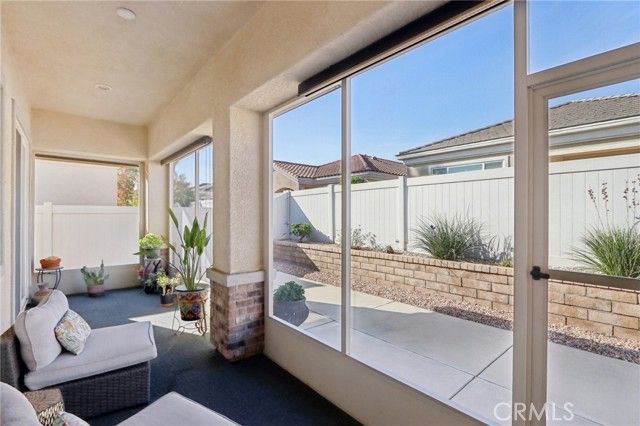 Welcome to your dream home in the highly sought-after 55+ Solera Diamond Valley Community! This beautiful 2-bedroom, 2-bathroom plus den home offers 1,782 sqft of thoughtfully designed living space perfect for relaxed, active living. Step inside to an open-concept layout where the living, dining, and kitchen areas flow seamlessly—ideal for entertaining or simply enjoying your day-to-day. Cozy up by the fireplace on cooler evenings or step through the sliding glass door to your enclosed patio, a perfect spot for morning coffee or afternoon relaxation. The home features spacious bedrooms for ultimate comfort, and a kitchen equipped with a refrigerator, washer, and dryer included for added convenience. Outside, enjoy drought-tolerant landscaping and easy-maintenance front and back yards, allowing you to spend more time enjoying the community and less on upkeep. This home combines style, comfort, and practicality in a vibrant, welcoming 55+ community—don’t miss the opportunity to make it yours!