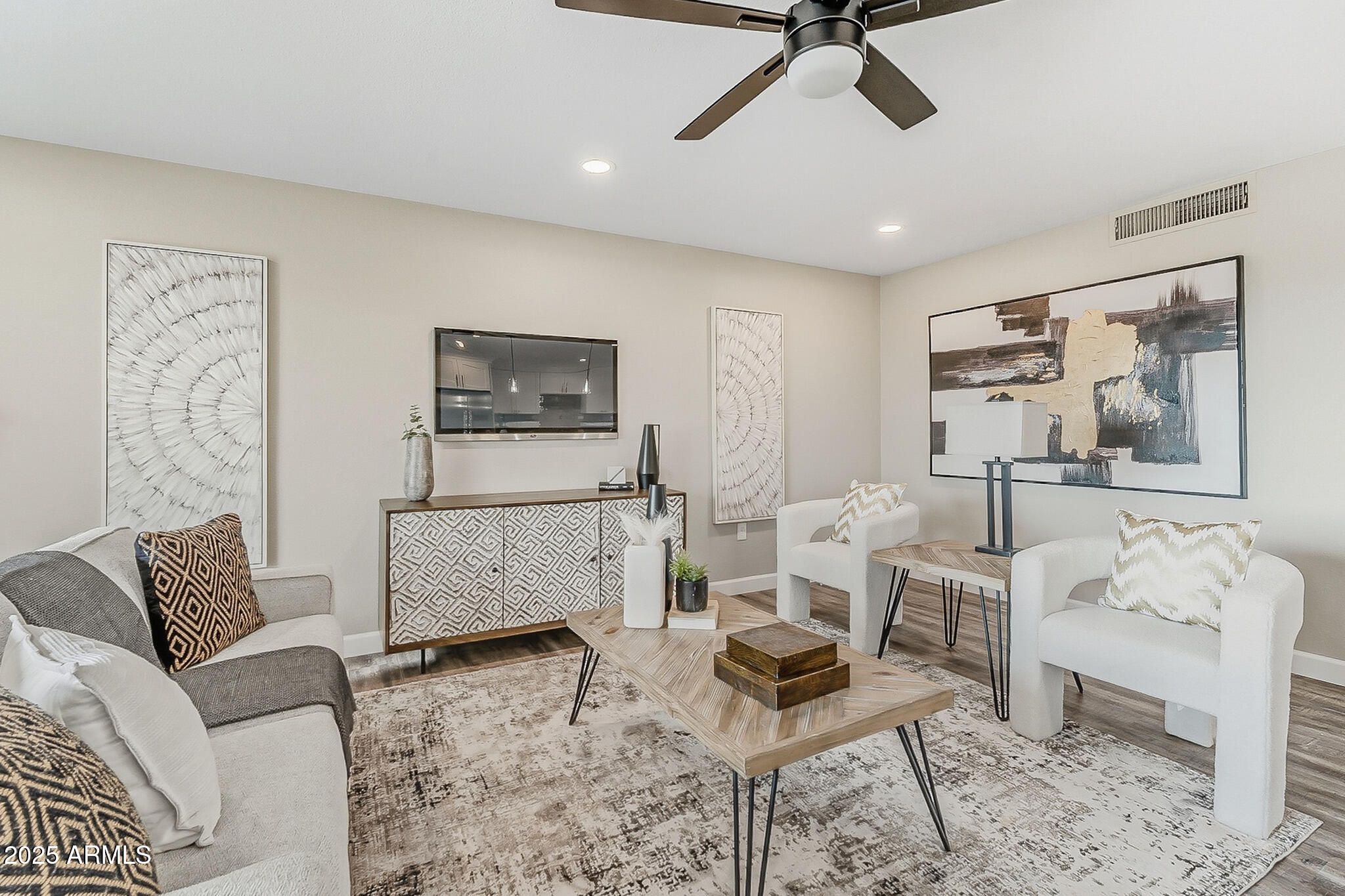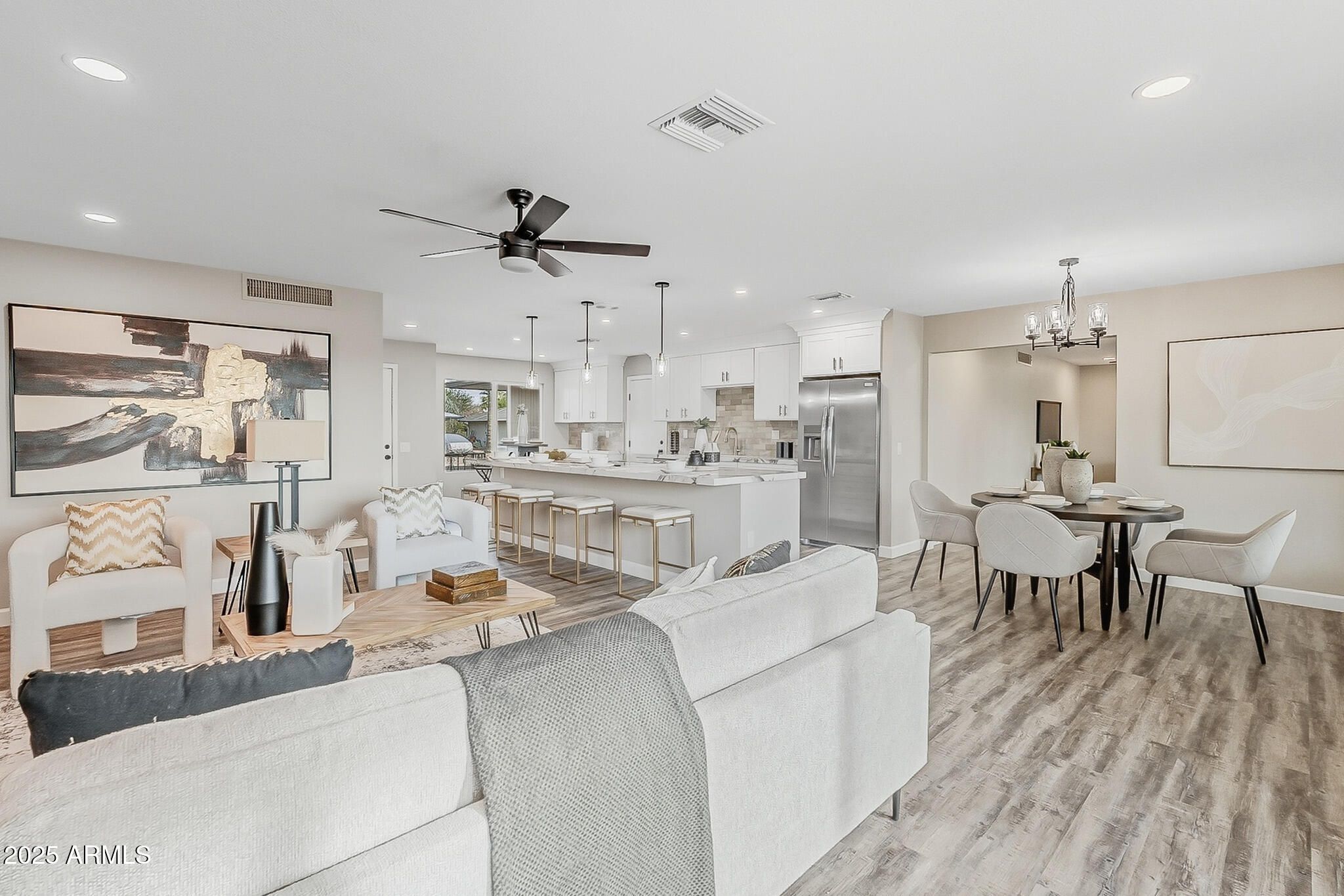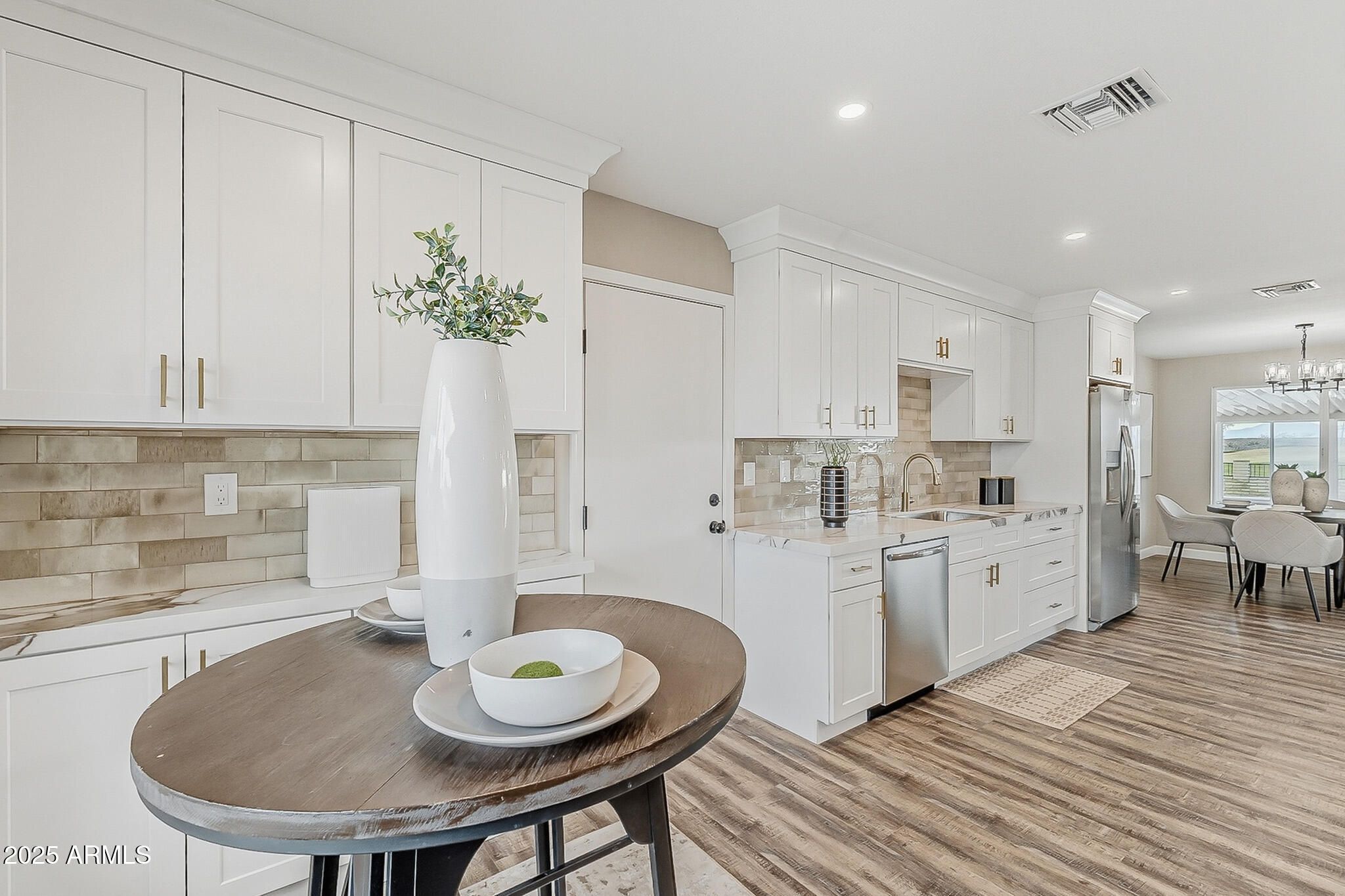Welcome to Your Sun City Sanctuary! Step into this beautifully remodeled gem nestled right on the golf course, where stunning mountain views greet you every day. The open-concept floorplan is perfect for entertaining, offering a seamless flow from the living area to the heart of the home — a gorgeous kitchen featuring brand-new cabinetry, sleek stainless steel appliances, and luxurious Symphony Carmen quartz countertops. Every detail has been thoughtfully updated, including new flooring, fixtures, hardware, windows, and interior doors. Enjoy peaceful mornings and spectacular desert sunsets from the spacious Arizona room, designed for relaxation and year-round enjoyment. Outside, the refreshed landscaping adds to the charm, creating a serene outdoor space that's ready for you to enjoy. And when you're ready to explore, you'll love the unbeatable location in the heart of Sun City. Enjoy access to 8 beautifully maintained golf courses, including Lakes West, Riverview, and Willow Creek all part of the Recreation Centers of Sun City (RCSC) system. Beyond the fairways, the community offers 8 recreation centers, a 33-acre man-made lake, an outdoor amphitheater, and even a dog park perfect for staying active and social. Whether you're into swimming, tennis, fitness classes, or arts and crafts, there's something for everyone with dozens of activities and social clubs. This home is truly move-in ready and waiting for you to start your next chapter in one of Arizona's most vibrant 55+ communities.