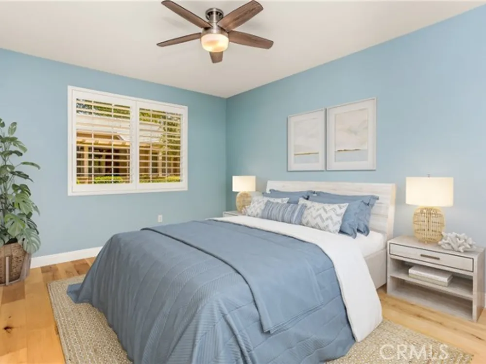 Located in the gated 55+ senior community of Four Seasons. This beautiful Springdale 2 model has been recently updated with over $65,000 in improvements. Those upgrades include: High end wood flooring throughout the home, new wide base moldings, new plantation shutters, new flush lighting, new ceiling fans and new stainless steel appliances. There was a total master bathroom remodel with designer shower and floor tile, quartz counter top, new toilet, removal of a wall, new mirrors and new heavy duty shower door. The secondary bathroom has new tile floors. There has been a new Alumawood patio cover added to the rear patio. The Four Seasons resort community includes a lodge with a resort style pool complex with cabanas and jacuzzi, grand ballroom, bistro, 50 seat movie theater, billiards room, full service salon, bocce ball courts, 4 tennis courts, 8 pickle ball courts, 9 hole putting green, horseshoe court, shuffle board courts, basketball courts, 2 large fitness centers, six miles of walking trails, indoor pool complex and dog park.