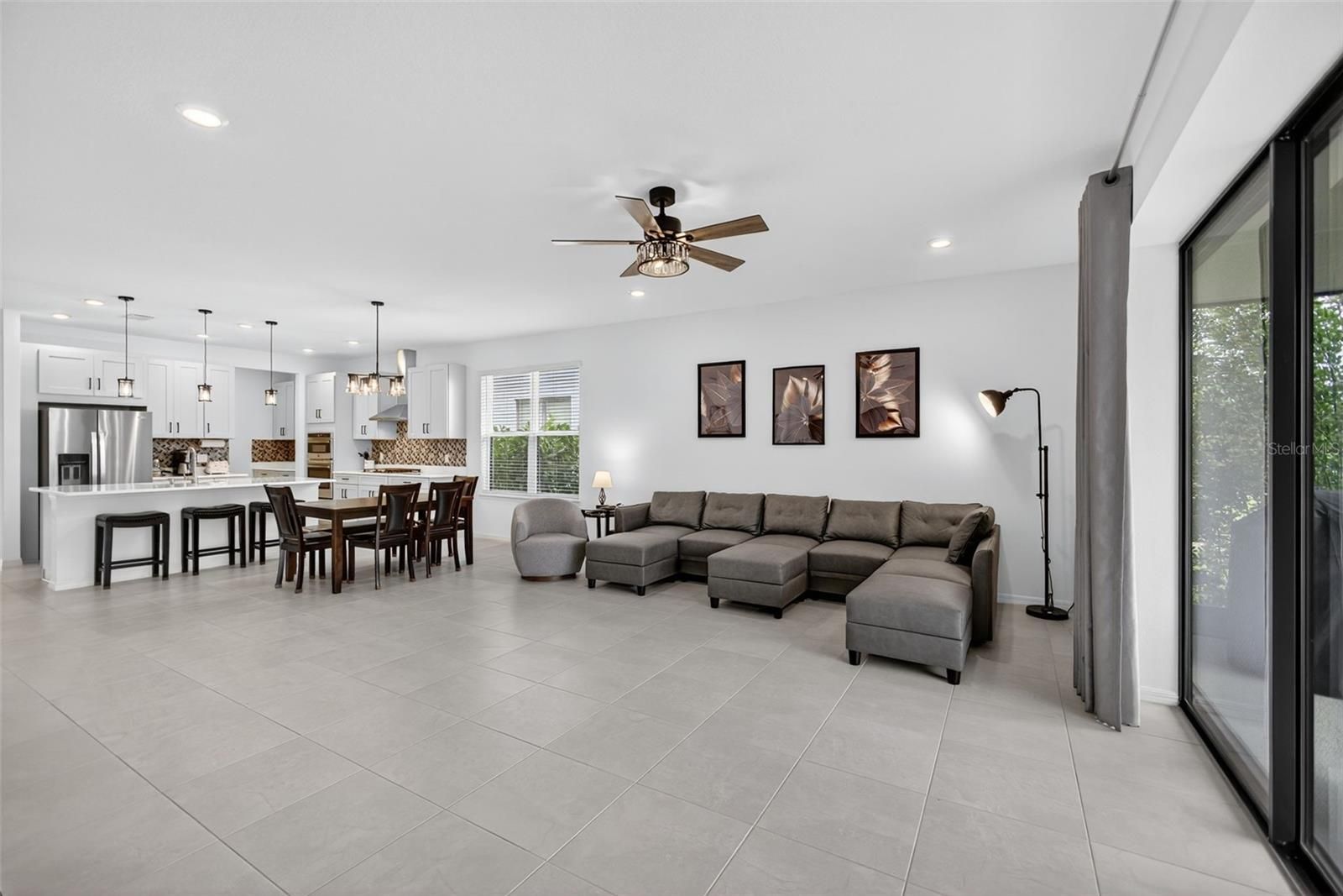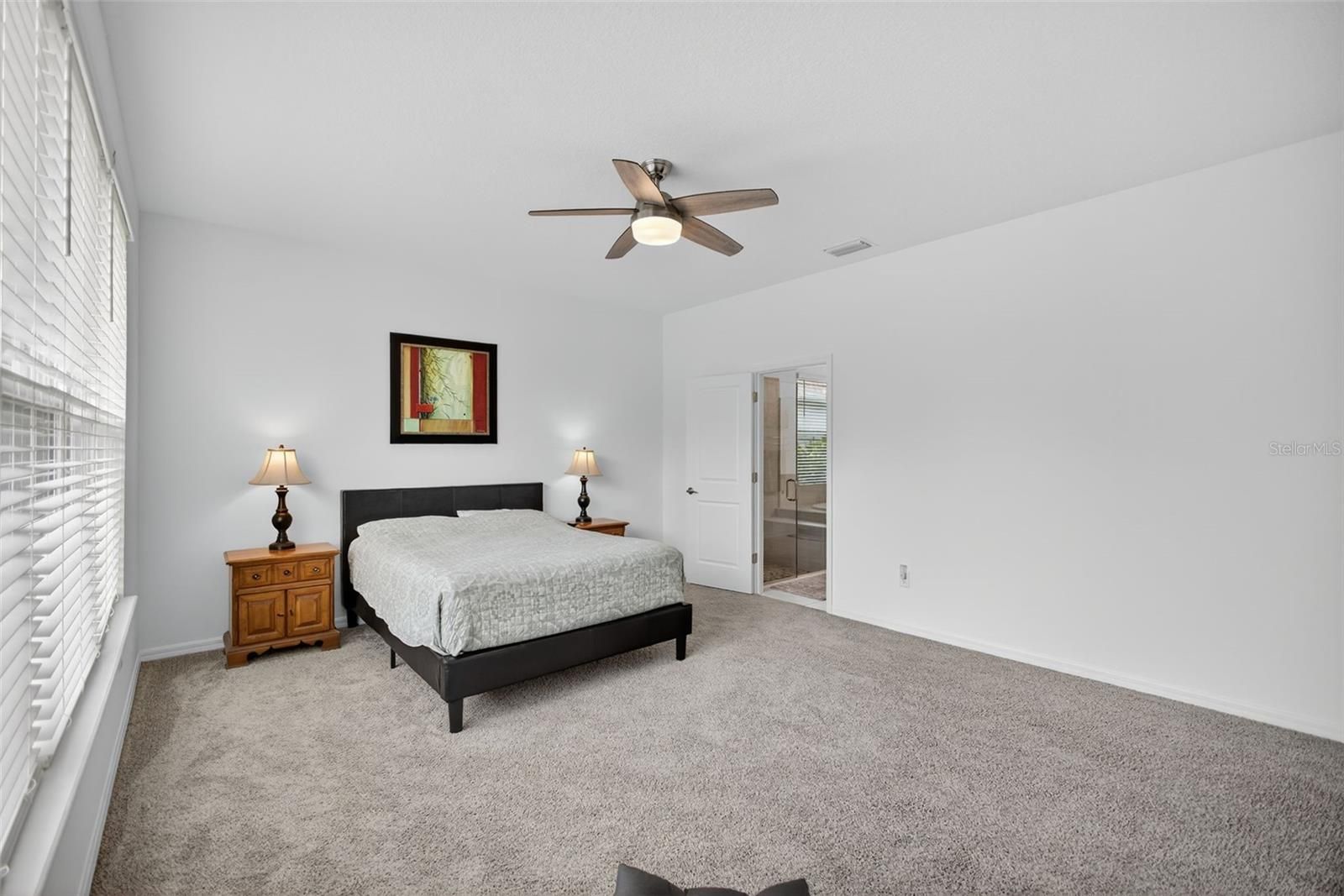 - Ceiling Fan(s), High Ceilings, Kitchen/Family Room Combo, Living/Dining Room, Open Floorplan, Main Level Primary, Thermostat, Walk-In Closet(s), Window Treatments