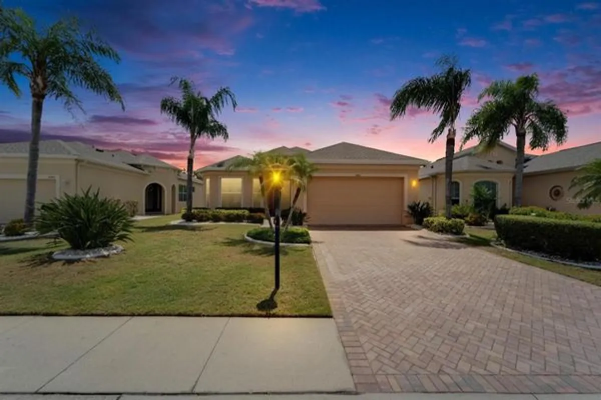 One or more photo(s) has been virtually staged. Freshly updated, beautifully maintained, and filled with thoughtful upgrades — welcome to 1643 Emerald Dunes, a move-in-ready Sun City Center home offering exceptional value and modern comfort. This spacious 2-bedroom + flex/office residence features an extended screened lanai overlooking peaceful greenery and two soothing water fountains — a private outdoor retreat perfect for morning coffee or relaxing evenings. Inside, the home feels crisp, bright, and modern with NEW interior paint in Sherwin-Williams Agreeable Gray, white trim, and 8-ft paneled doors. The flex/office room includes custom-built-in cabinetry — ideal for working from home, crafting, or extra storage. The kitchen and living areas flow seamlessly for entertaining and everyday comfort. The primary suite offers generous space, TWO large custom storage areas, and a beautifully organized en-suite closet system. A full laundry room features added cabinetry, storage, and a washing tub. Additional updates include upgraded interior lighting throughout, recessed lighting in the garage, ceiling storage racks, and a hydraulic ladder leading to attic storage — a rare and convenient feature. A NEW ROOF was installed in 2022, A/C Capacitor 2024, Hurricane Shutters, Whole-House Surge Protector, Energy-Efficient Low-E Windows and Full Water Filtration System providing peace of mind for years to come. The sellers truly maximized ease of living and functionality — this home shows beautifully and feels even better in person. Buyer Incentive: Seller will contribute $3,000 toward closing costs or buyer-selected improvements, such as outdoor sound-softening landscaping or premium lanai curtains. Quiet Inside: The home’s interior is well-insulated and remarkably peaceful — the noise factor is primarily outdoors and reflected in the competitive pricing. Enjoy the Sun City Center lifestyle with resort-style amenities, pools, clubs, fitness centers, golf carts, and convenience to everything. This upgraded, well-maintained home is ready for you — schedule your showing today!