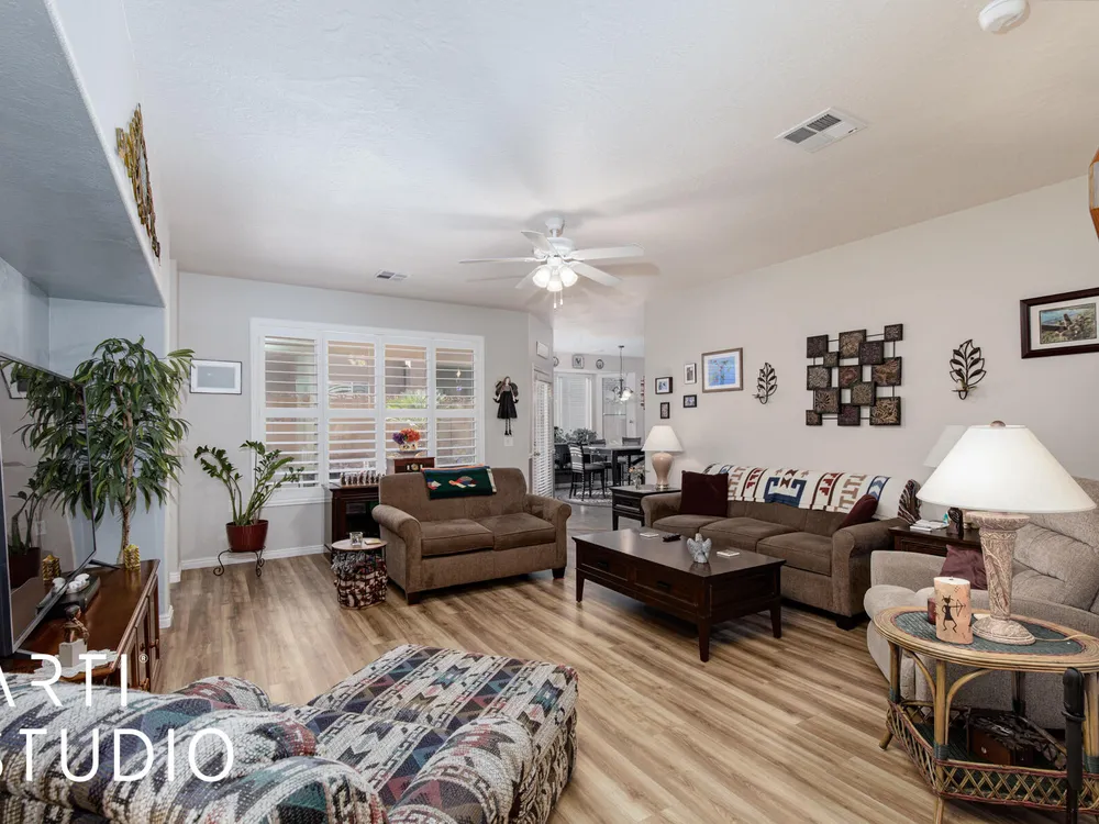 Welcome to your dream home in the vibrant 55+ community of Sun River St. George! Marrying practicality with a touch of luxury, this home features living spaces accentuated by newer flooring that flow seamlessly throughout. The kitchen boasts a layout and appliances that inspire culinary creativity and gatherings with friends and family. The upgraded primary bath features modern finishes that invite a relaxing experience. The additional den/office/3rd bedroom provides an excellent solution for workspace, guest accommodations, or private space to unwind. A newer water heater, water softener, and reverse osmosis add protection to your plumbing throughout the home. All this and a 3 car garage for all your toys! You will also love having Dixie Power as your electricity source, recognized for its affordable rates. Sun River offers indoor and outdoor pools, exercise gym, pickleball, tennis, basketball, a woodworking studio, scenic golf course, walking paths, and on-site restaurant. Shopping is just minutes to the Smith's grocery superstore, restaurants, Big Shots Golf, and upcoming facilities including a Costco and megaplex theater! Reservoirs, state and national parks, and the Tuacahn Theater are a short drive away.