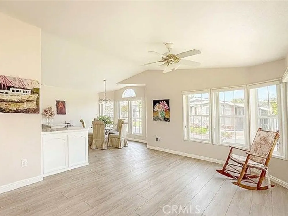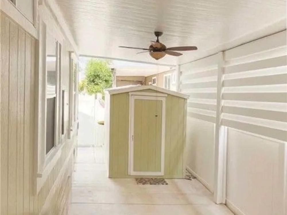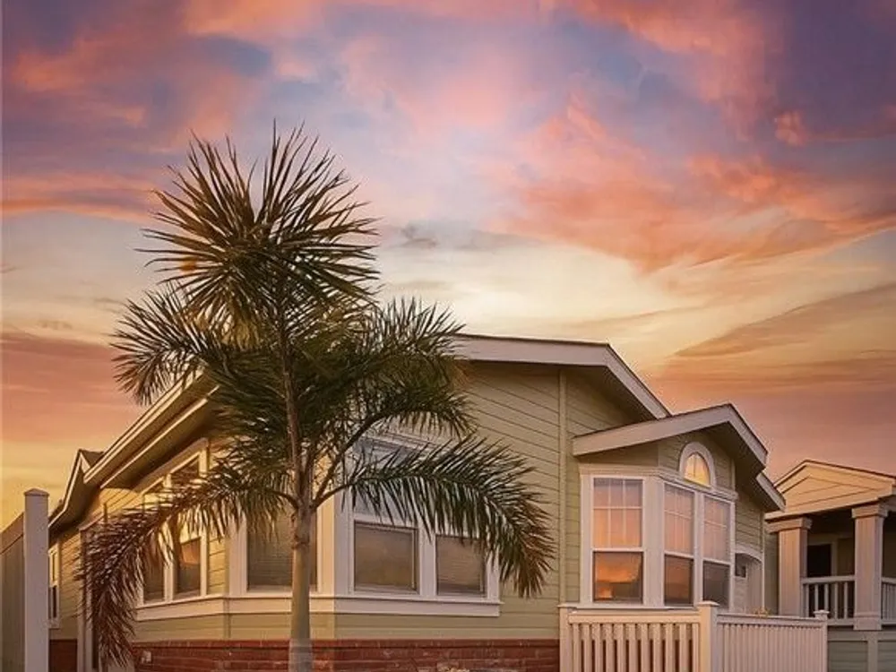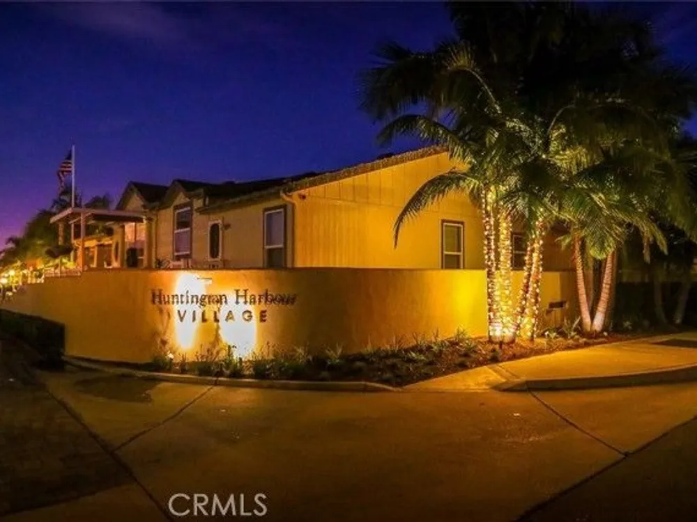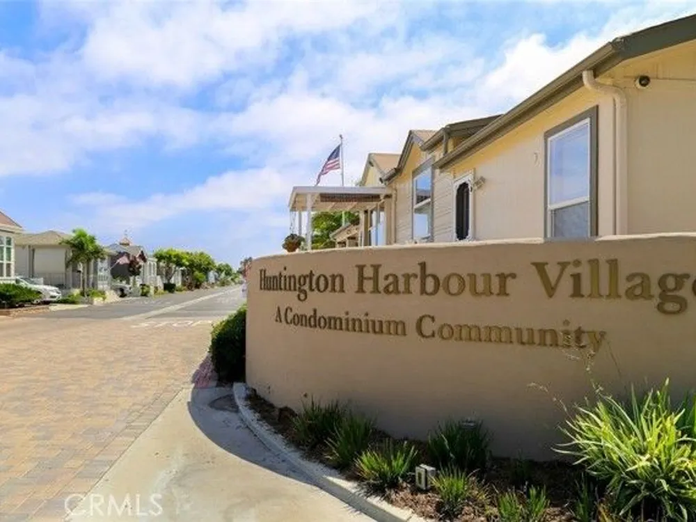 Welcome to Huntington Harbour Village a condominium community of manufactured homes for ages 55+ where residents own their land with no space rent! Just minutes from the beach. This well-maintained, move-in-ready home offers 2 bedrooms, 2 bathrooms, a dedicated office, and an open-concept layout filled with natural light. Vaulted ceilings and skylights create an airy feel, while ocean breezes, ceiling fans, and central A/C keep you comfortable year-round. Enjoy luxury vinyl plank flooring throughout, a modern kitchen with solid-surface counters, gas range, microwave, dishwasher, and a pantry with pull-out drawers. The office features a built-in desk and wall unit- perfect for remote work or hobbies. The spacious primary suite includes dual sinks, closet organizers, and a charming window seat. The laundry room gives you plenty of extra storage, and outside, a charming white picket-fenced patio is perfect for relaxing or entertaining. The garagette with its matching built-in shed ties the home all together with style. Huntington Harbour Village offers resort-style amenities: remodeled clubhouse with catering kitchen, heated pool, spa, saunas, fitness room, game/card lounge, putting green, BBQ area, and RV storage rentals. All this, just minutes to beaches, shopping, Bolsa Chica trails, and paddle boarding.