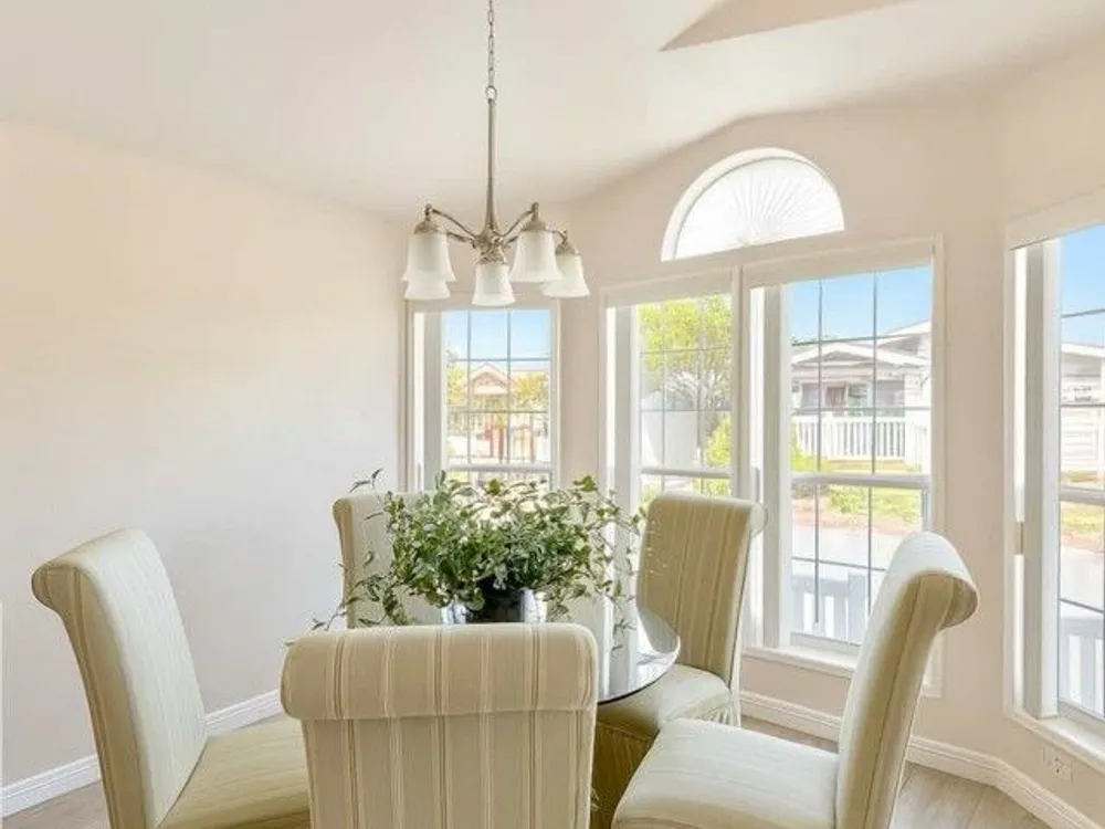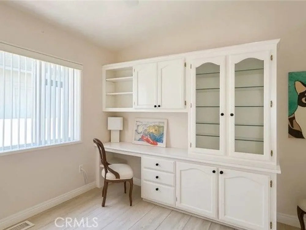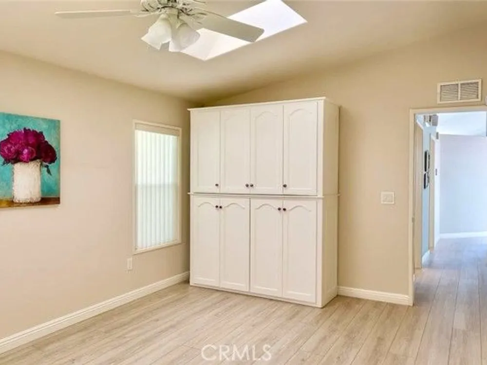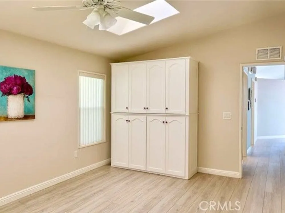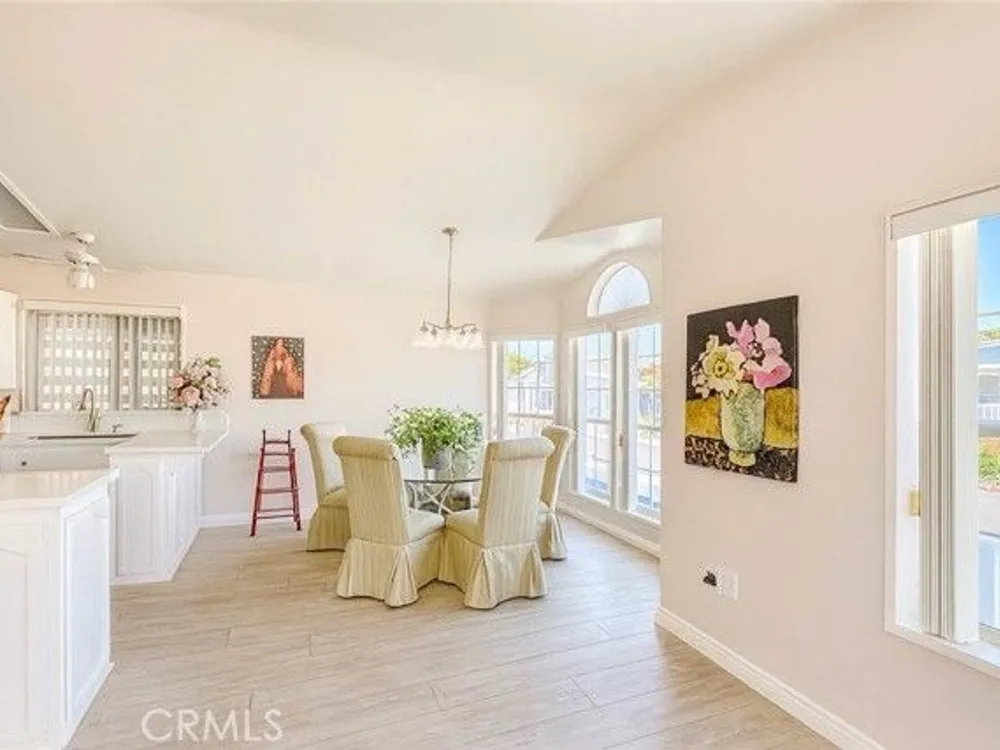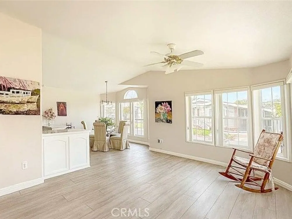 Welcome to Huntington Harbour Village a condominium community of manufactured homes for ages 55+ where residents own their land with no space rent! Just minutes from the beach. This well-maintained, move-in-ready home offers 2 bedrooms, 2 bathrooms, a dedicated office, and an open-concept layout filled with natural light. Vaulted ceilings and skylights create an airy feel, while ocean breezes, ceiling fans, and central A/C keep you comfortable year-round. Enjoy luxury vinyl plank flooring throughout, a modern kitchen with solid-surface counters, gas range, microwave, dishwasher, and a pantry with pull-out drawers. The office features a built-in desk and wall unit- perfect for remote work or hobbies. The spacious primary suite includes dual sinks, closet organizers, and a charming window seat. The laundry room gives you plenty of extra storage, and outside, a charming white picket-fenced patio is perfect for relaxing or entertaining. The garagette with its matching built-in shed ties the home all together with style. Huntington Harbour Village offers resort-style amenities: remodeled clubhouse with catering kitchen, heated pool, spa, saunas, fitness room, game/card lounge, putting green, BBQ area, and RV storage rentals. All this, just minutes to beaches, shopping, Bolsa Chica trails, and paddle boarding.