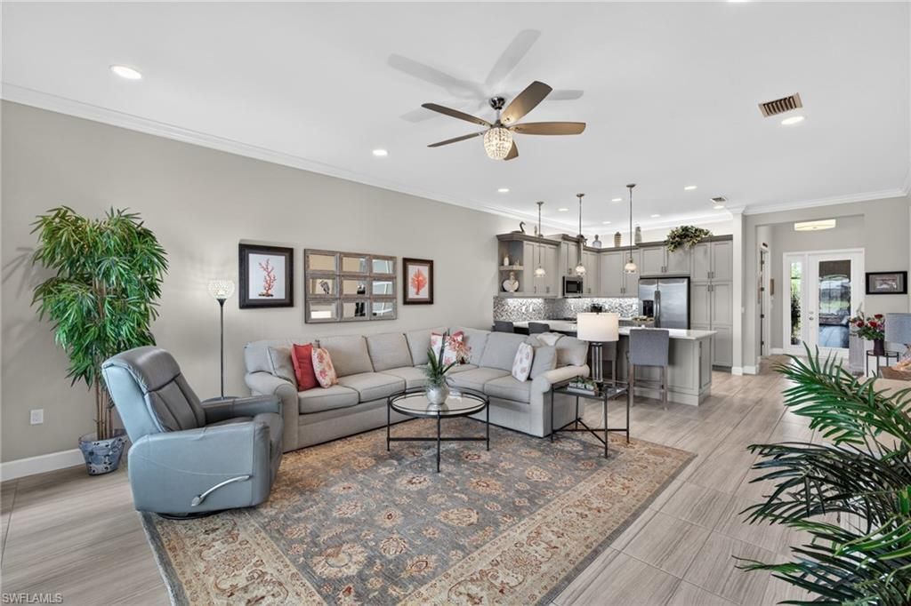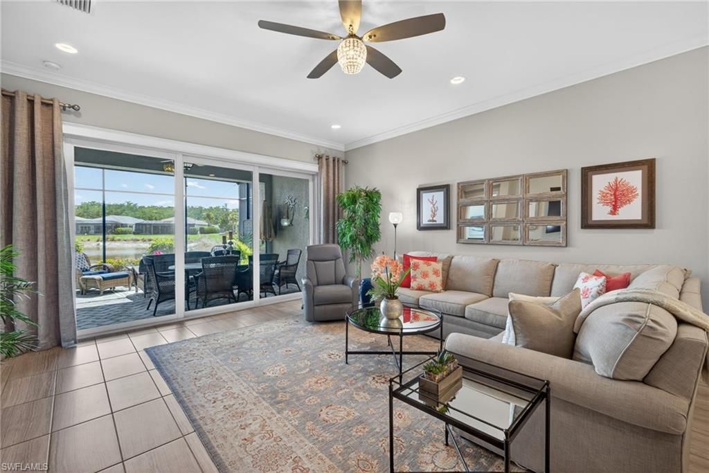 Here’s your chance to join Valencia Bonita’s coveted 55+ active lifestyle community.This spacious lakefront Oxford Villa (2 bedrooms + den / 2 baths) truly stands above the rest, offering an impressive collection of high-end upgrades and thoughtful enhancements throughout. Enjoy peaceful lake views from your extended rear lanai with screened enclosure and pre plumbed natural gas for your grill, along with an additional extended outdoor patio beyond the lanai, creates the perfect setting for relaxing or entertaining. The home also features a screened front entry, allowing for great airflow and additional outdoor living space.Interior upgrades include plantation shutters, crown molding, and tile flooring throughout, along with a decorative dining room accent wall and a tray ceiling in the primary bedroom, adding both style and architectural detail. The kitchen has been beautifully upgraded with custom island woodwork, an updated backsplash, and under-cabinet lighting, while the pantry features custom wood shelving for added functionality. The den is enhanced with glass insert French doors, and The California Closets in the primary suite provide upgraded storage throughout the home. Bathrooms feature wood trim around mirrors for a refined finish. Additional functional upgrades include a laundry tub and a tankless water heater. Outside, enjoy a widened driveway and walkway along with a garage featuring an epoxy floor.Beyond the stunning finishes, this home offers valuable peace of mind with impact-resistant windows and sliders, a whole-house generator, and a pre-wired alarm system.Valencia Bonita living is truly unparalleled, offering low HOA fees with a newly bundled Xfinity cable and internet package for added savings, no CDD fees, and a natural gas community. The 45,000-square-foot clubhouse and lifestyle complex sits on 10 acres of resort-style amenities, including tennis, pickleball, bocce, multiple pools, a state-of-the-art fitness center, indoor and outdoor dining and bars, and over 25 social clubs. Residents also enjoy fire pits, cabanas, a full-service spa and nail salon, and even a pottery studio. With clubs ranging from adventure and stitching to bourbon and wine, you can tailor your lifestyle to be as active and social as you choose, all supported by a full-time Lifestyle Director and a top-tier fitness program with classes for all levels.This home is more than just a residence; it is your gateway to a vibrant, resort-style community. Move in and start living the ultimate Florida lifestyle, just 20 minutes to the beach and less than 30 minutes to RSW Airport. This villa is truly like having your cake and eating it too — you have a fabulous community and all the upgrades you can dream of.
