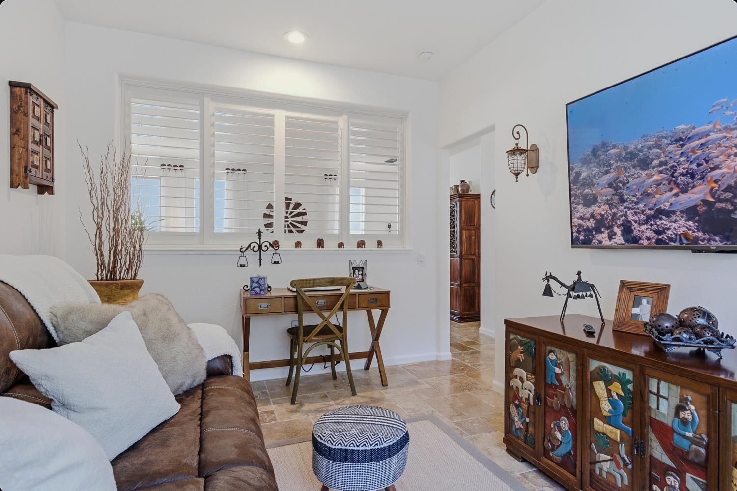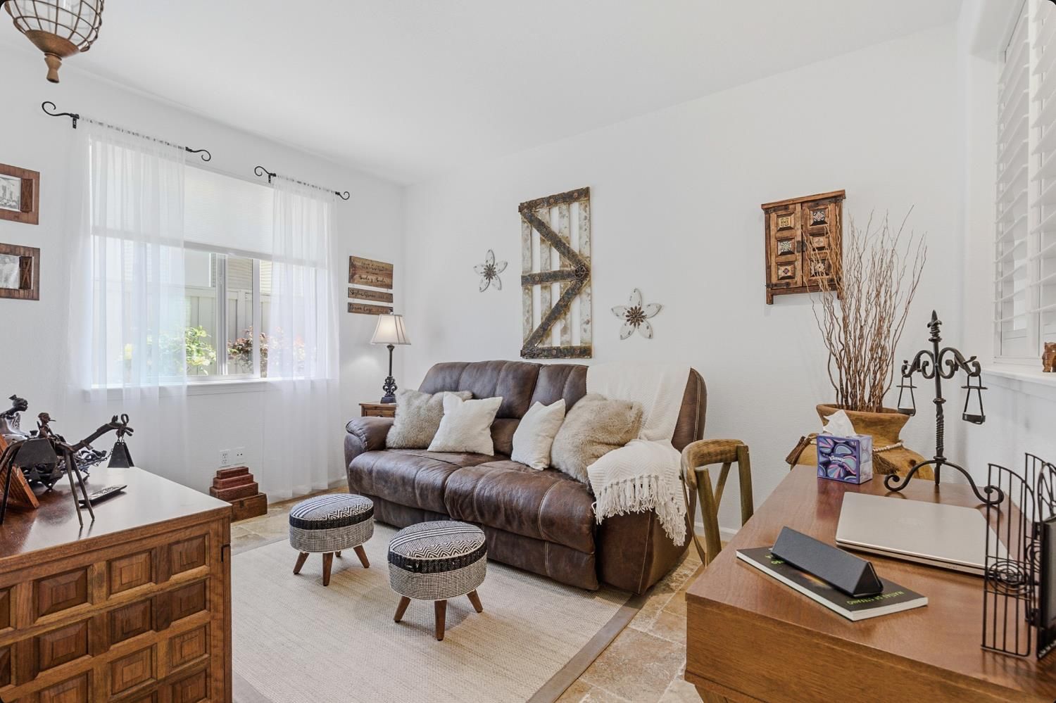 Welcome to Sun City Lincoln. This bright and inviting Madera home, with 2 bedrooms, 2 baths and a den offers an open layout with upgrades in the last few years to include gorgeous travertine tile flooring throughout the entire home, interior paint, front door and cabinets in laundry room. Kitchen cabinets have been painted and new cabinets have been installed where the desk was located along with new backsplash, sink, microwave and oven. New light fixtures throughout the home and mirrors in the bathrooms. Serene backyard with no homes behind you and full shade in the afternoon. Make an offer, this home won't last long!