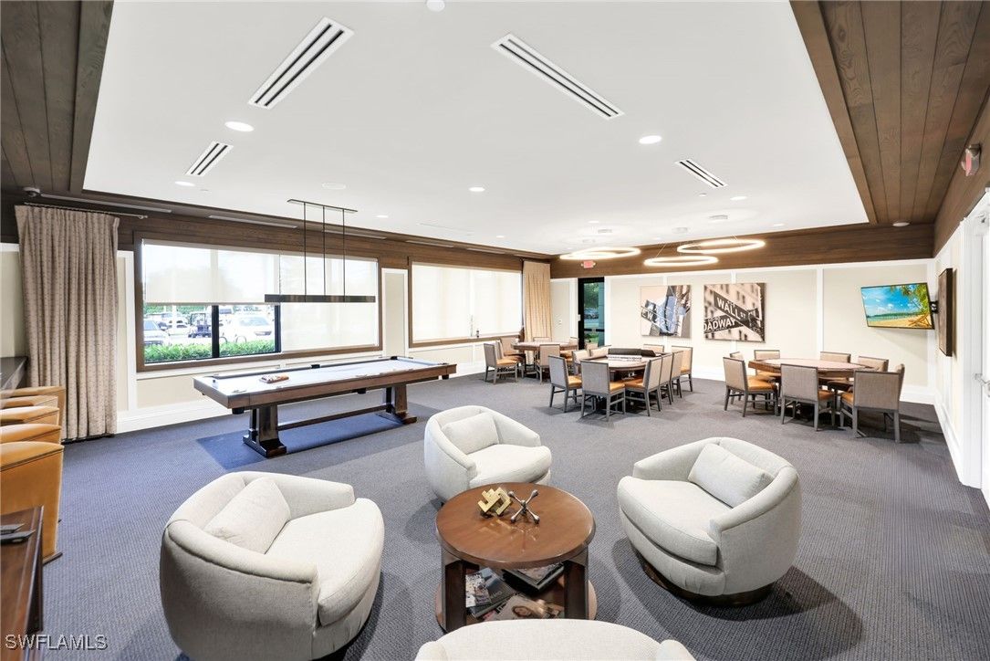 - Includes: Bocce Court, Billiard Room, Cabana, Clubhouse, Dog Park, Fitness Center, Hobby Room, Pickleball, Pool, Restaurant, Sauna, Spa/Hot Tub, Sidewalks, Tennis Court(s), Management