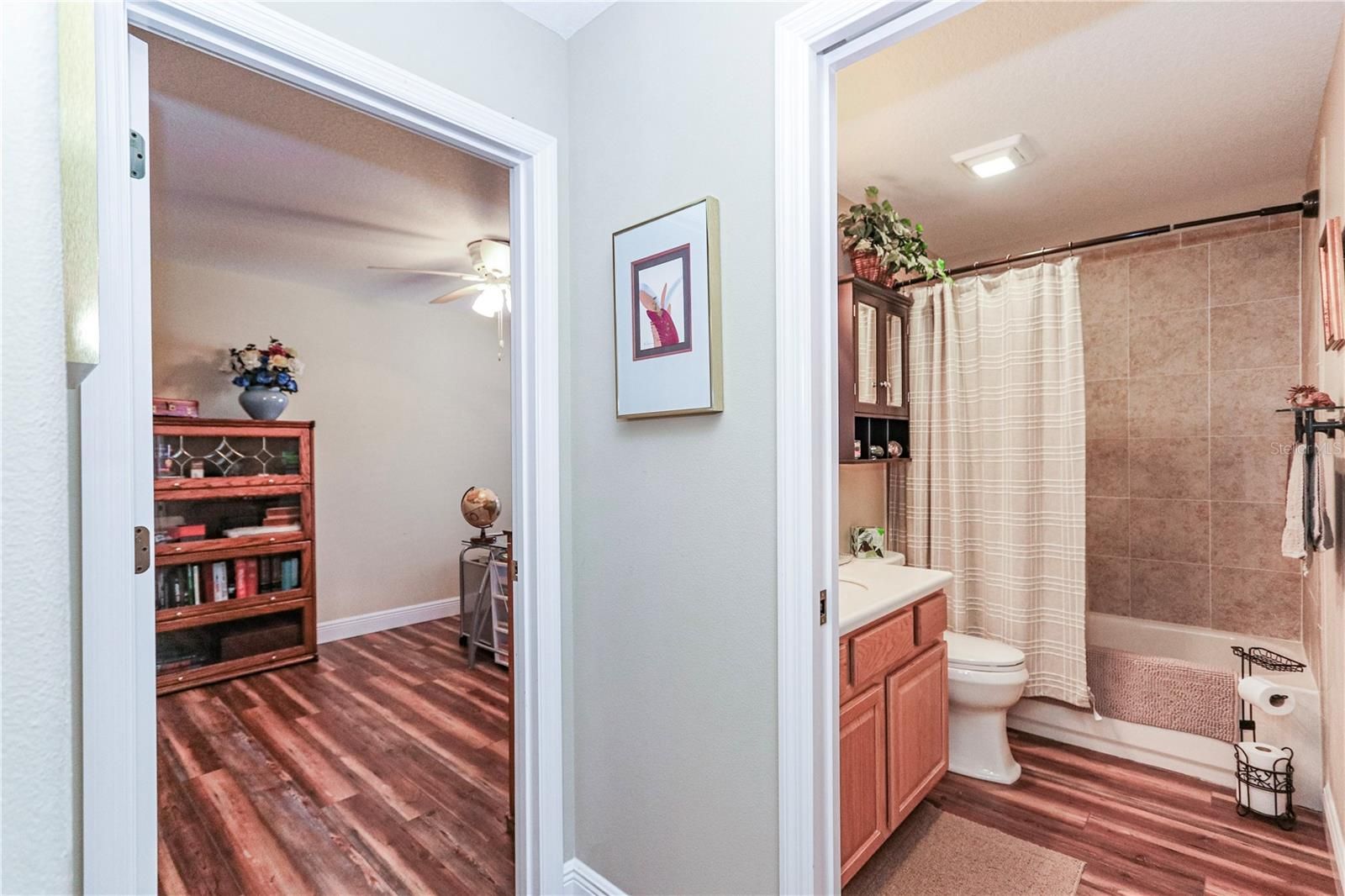 Step into this stunning 3-bedroom, 2-bathroom home with a 2-car garage plus a convenient golf cart garage, perfect for those who enjoy the Florida lifestyle. Recently updated with a new HVAC and water heater (2024) and fresh paint and waterproof wood laminate flooring (2022), this home feels like new! Seller willing to purchase a full year of home warranty for eventual buyer. From the moment you approach the beautiful etched glass front door, you’ll be captivated by the inviting details. The wide-open foyer leads to a spacious, open-concept living and dining area, providing plenty of room for your favorite furniture and entertaining. The cozy kitchen boasts real wood cabinetry with crown molding, sleek hardware, and Corian countertops with a breakfast bar, ideal for casual dining or morning coffee. The dining nook is large enough to double as a formal dining space, offering flexibility for gatherings. Retreat to the expansive master suite featuring a walk-in closet, dual vanities, and a walk-in shower. Thoughtful touches like detailing on baseboards add a touch of elegance throughout. The extended epoxy coated garage accommodates larger vehicles like a truck, and the private screened lanai overlooks a fenced rear lot, offering serene outdoor living just steps from the back gate. New poured concrete patio provides space for lounge area or outdoor grilling area. Located in the vibrant 55+ community of SummerGlen, you’ll enjoy a wide range of indoor and outdoor amenities, community protected by a front gate with gate guard greeter including golf and a delicious on-site restaurant with a menu to please any palate. Plus, the low HOA fee of $375/month includes mowing and edging of the yard, trash, Wi-Fi, and cable—making life here even more convenient! HOA members receive $30/Month in clubhouse restaurant credit that rolls over monthly if you don't use it. Don’t miss the chance to call this beautifully updated home your own. Schedule your private showing today!