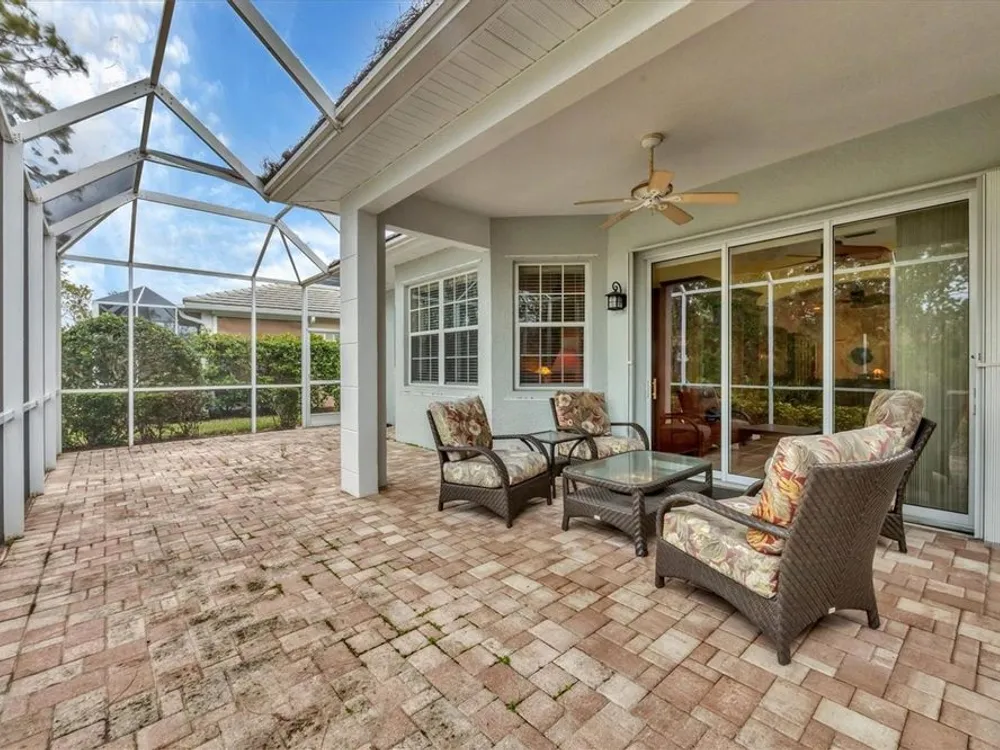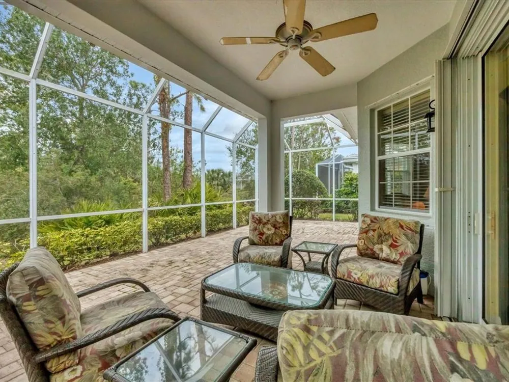 Welcome to truly maintenance free living in this beautifully appointed patio home. This charming home offers the perfect combination of comfort, convenience and natural beauty. This spacious property boasts 3 bedrooms and 2.5 baths providing ample space for you and your loved ones to create lasting memories. Step outside and discover the gem of this home-the oversized lanai that overlooks the preserve. Birders will love the sights and sounds while relaxing in this private space. Hurricane shutters for all windows. The community offers two swimming pools and a small clubhouse for social gathering, exercise or just quiet enjoyment. The private country club offers an array of memberships from social, tennis or golf. Conveniently located just minutes from downtown Venice or Wellen Park and the Cool Today Park. A gem waiting to be discovered.