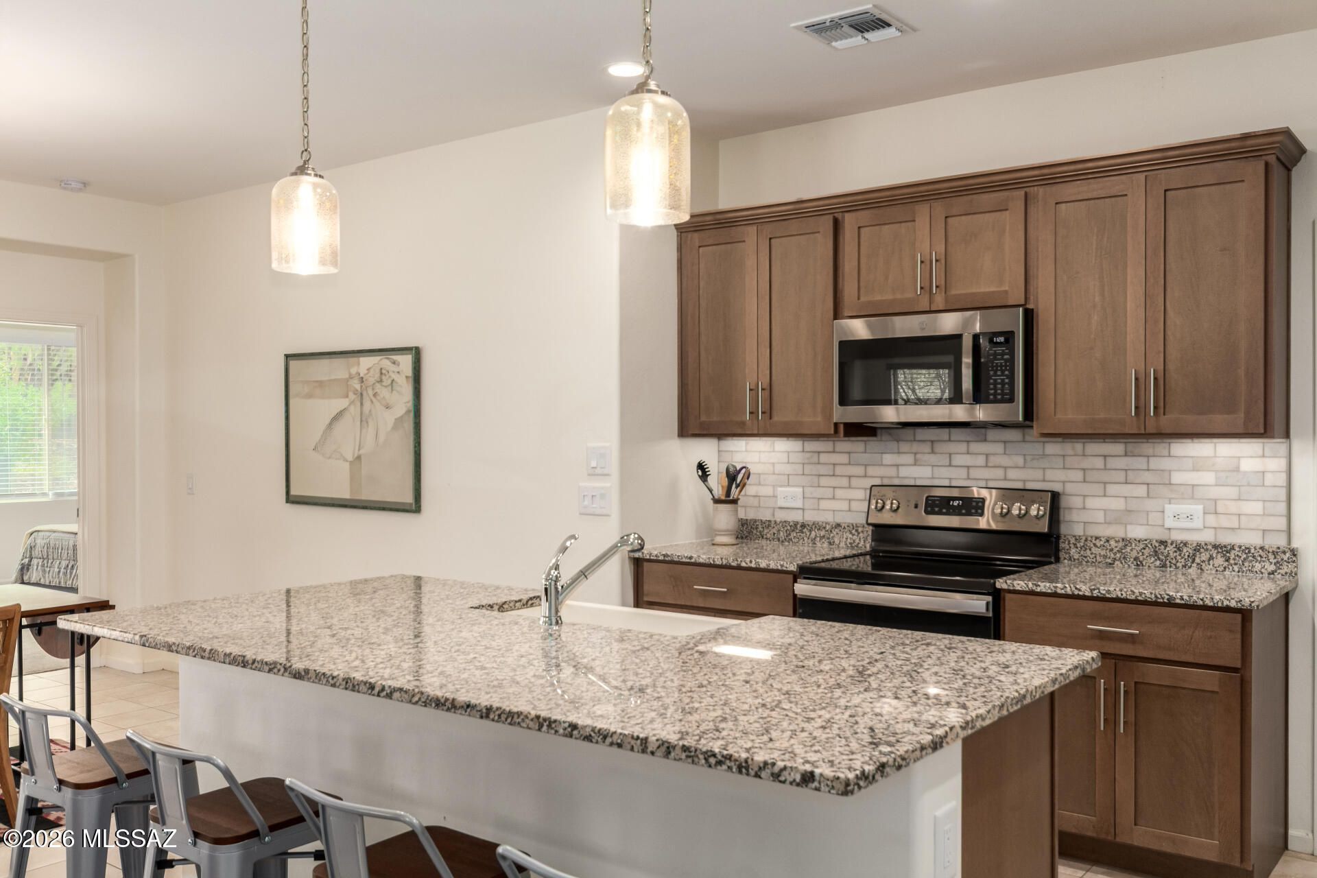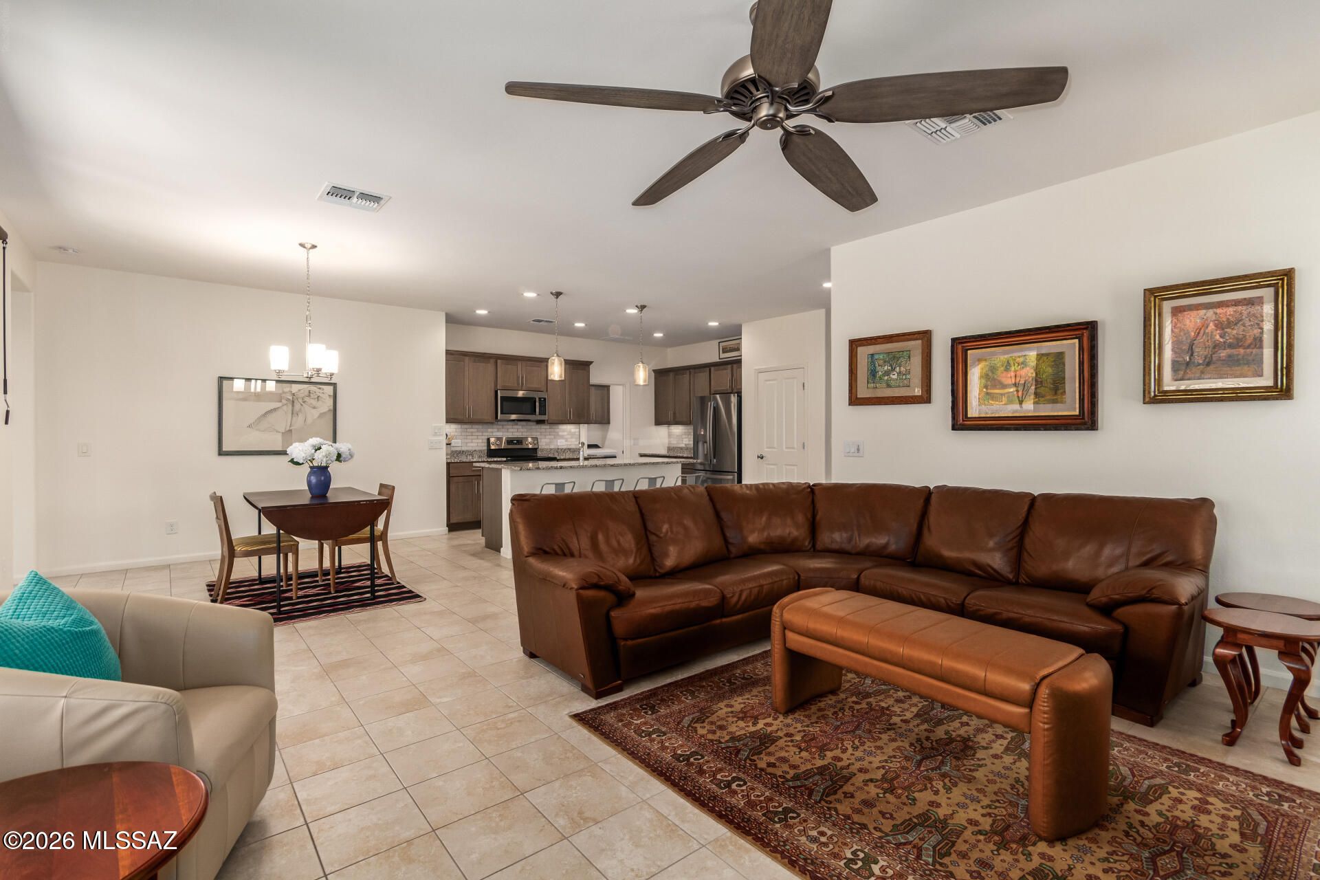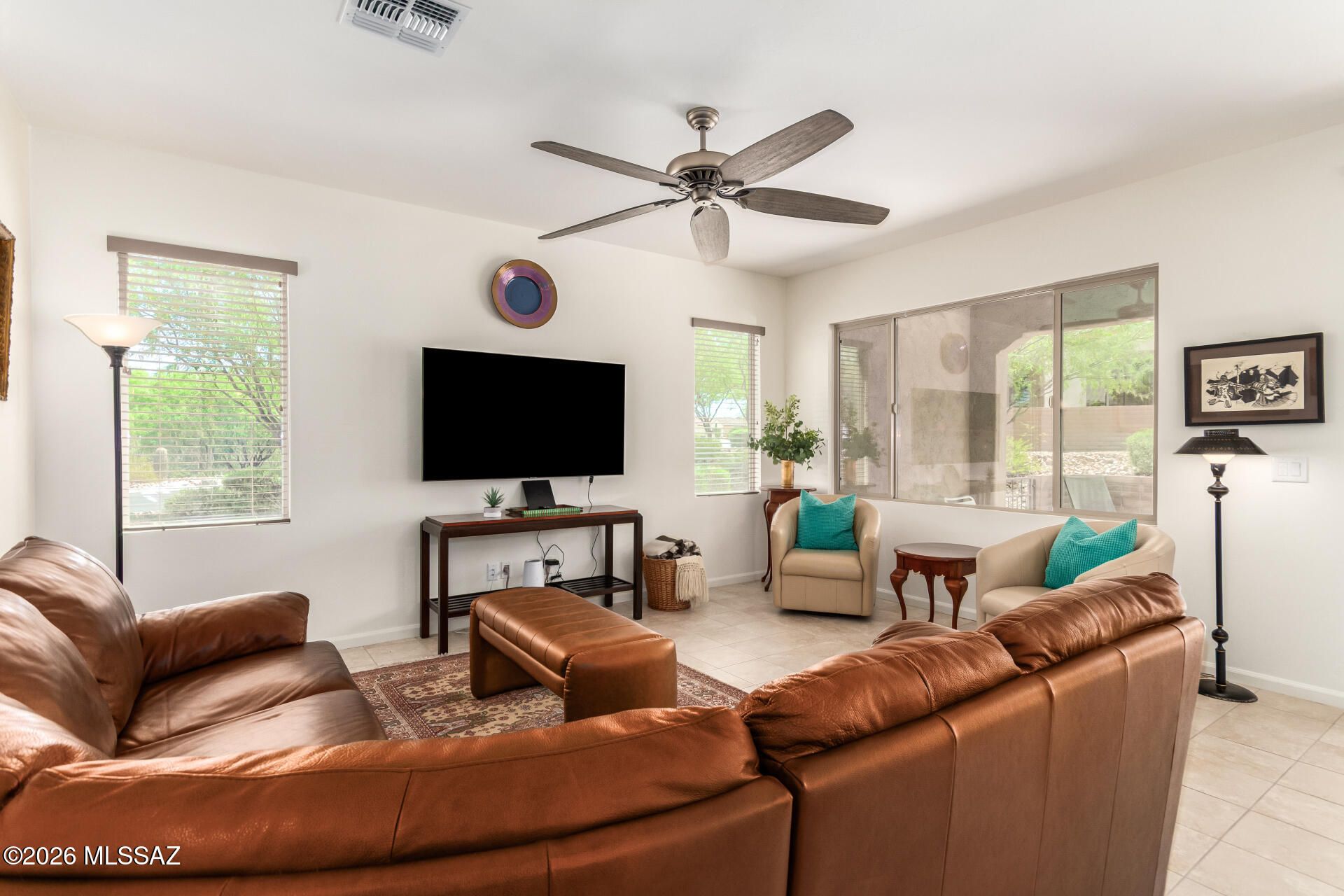 Experience the pinnacle of active adult living in this stunning 2020-built villa in the gated community of Quail Creek. This 1,508 sq. ft. home blends modern luxury with ''lock-and-leave'' ease. The open-concept layout features high ceilings and kitchen with granite countertops and stainless appliances. The spacious owner's suite offers comfort and privacy, while a versatile den works perfectly as an office or guest space. Enjoy Arizona sunshine on the private paved patio. Residents have access to premier amenities, including 27 holes of golf, a fitness center, pools, and pickleball courts. Ideal as a seasonal retreat or full-time residence, this well-maintained home delivers the lifestyle you deserve in Green Valley. This home comes fully furnished. End unit home in prized location.
