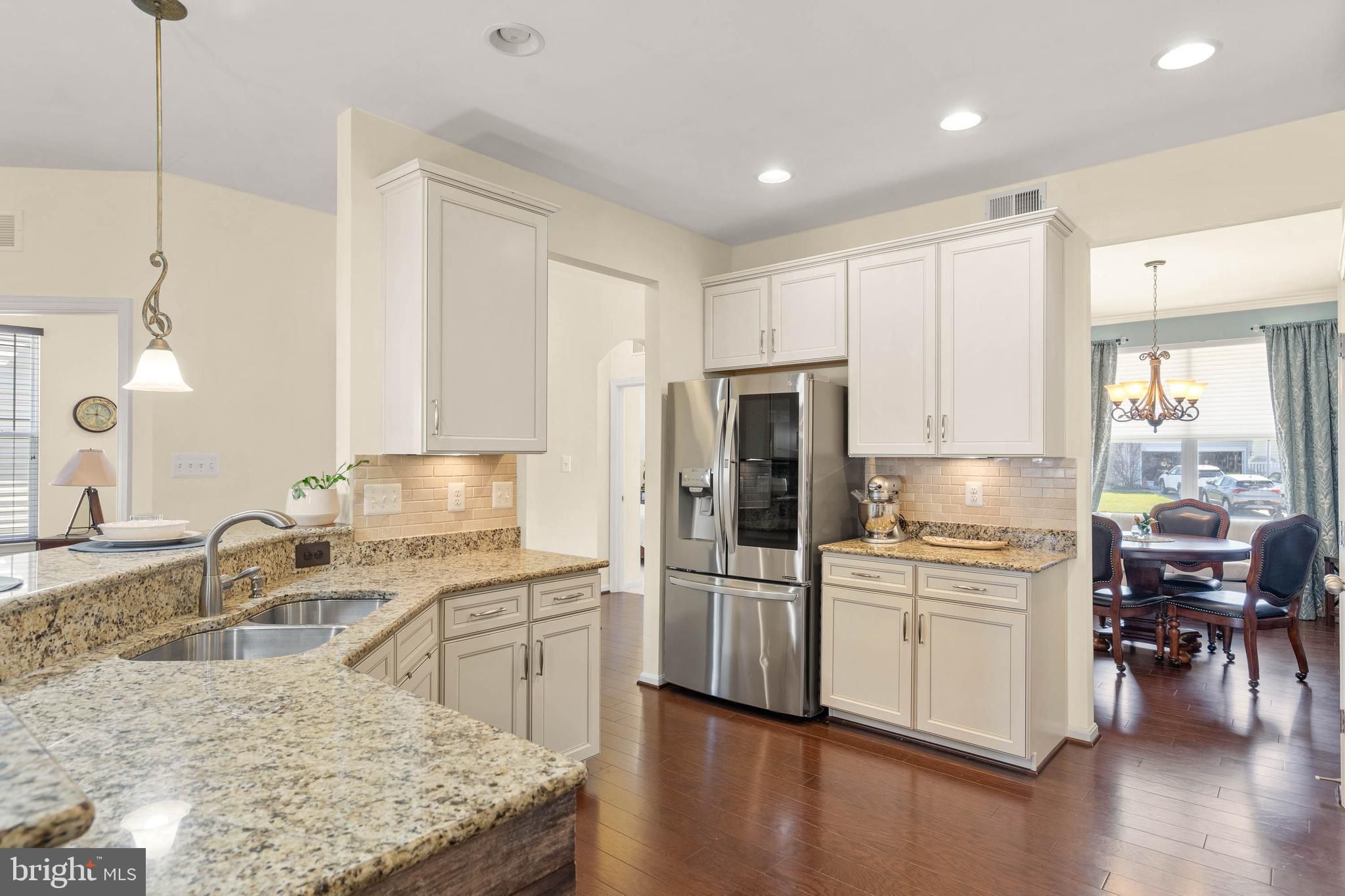 16480 Greenspring Avenue, located in the highly sought-after Villages at Red Mill Pond, offers a perfect blend of elegance, comfort, and coastal living. This beautifully maintained home features four spacious bedrooms, three well-appointed bathrooms, and a versatile floor plan ideal for both everyday living and entertaining. Just a short stroll to the community clubhouse, pools, fitness center, kayak dock, and access to Red Mill Pond, this location delivers an exceptional lifestyle. The community also connects to the Lewes-Georgetown Bike Path and is just minutes from beaches, shopping, and popular dining. Inside, a warm and inviting interior welcomes you. A flexible den sits just off the entry, perfect for a home office, game room, or formal dining space. The kitchen is thoughtfully designed with granite countertops, stainless steel appliances, under-cabinet lighting, a pantry, and a stylish tile backsplash. A redesigned raised island with rustic wood accents adds charm and creates a natural gathering space. The adjoining family room is the heart of the home featuring a floor-to-ceiling stone gas fireplace, rich hardwood flooring, and abundant natural light. The open dining area flows seamlessly from the kitchen and living space, making it ideal for everything from intimate dinners to larger gatherings. Step outside to the screened in porch overlooking a private, fenced backyard and patio perfect for relaxing or entertaining year-round. The primary suite offers a peaceful retreat with vaulted ceilings, generous natural light, and a spacious layout. The renovated ensuite bath includes a tiled walk-in shower with dual shower heads, a built-in bench, and dual vanities. A custom walk-in closet completes the suite with style and functionality. Also on the main level, a second bedroom provides comfort and flexibility, along with an updated hall bath featuring a sleek tiled walk-in shower with glass enclosure. A private office, easily used as a fourth bedroom, adds even more versatility, along with convenient main level laundry and ample closet space. Upstairs, an oversized loft with a full ensuite bath creates the perfect guest suite, bonus room, or private retreat. Additional storage can be found in the lower-level crawl space and oversized two-car garage. Outside, mature landscaping enhances curb appeal, while the covered front porch with epoxy finish, fenced backyard, and charming rose bushes create a serene and welcoming setting. Amenity-rich and ideally located, this home truly has it all. Welcome home!