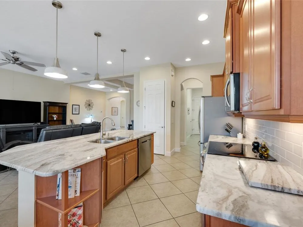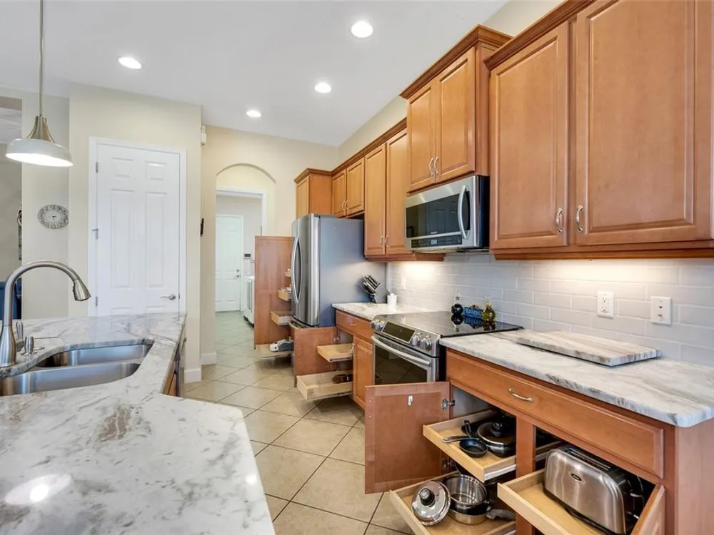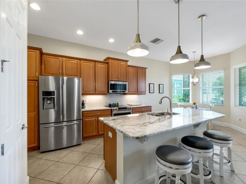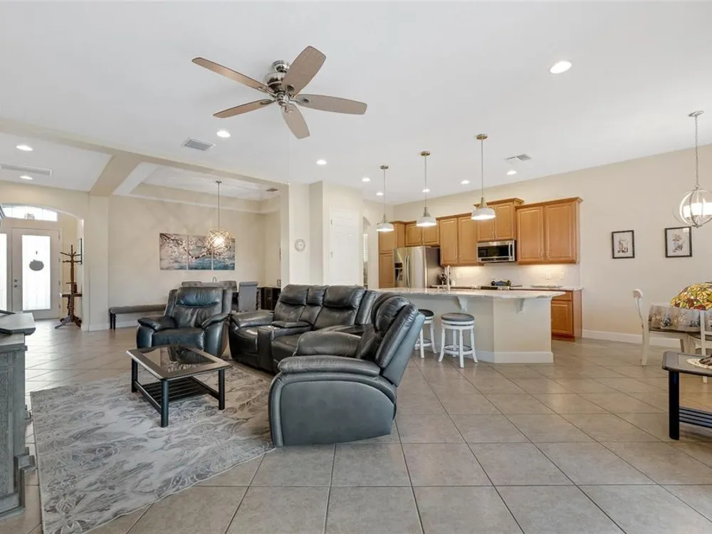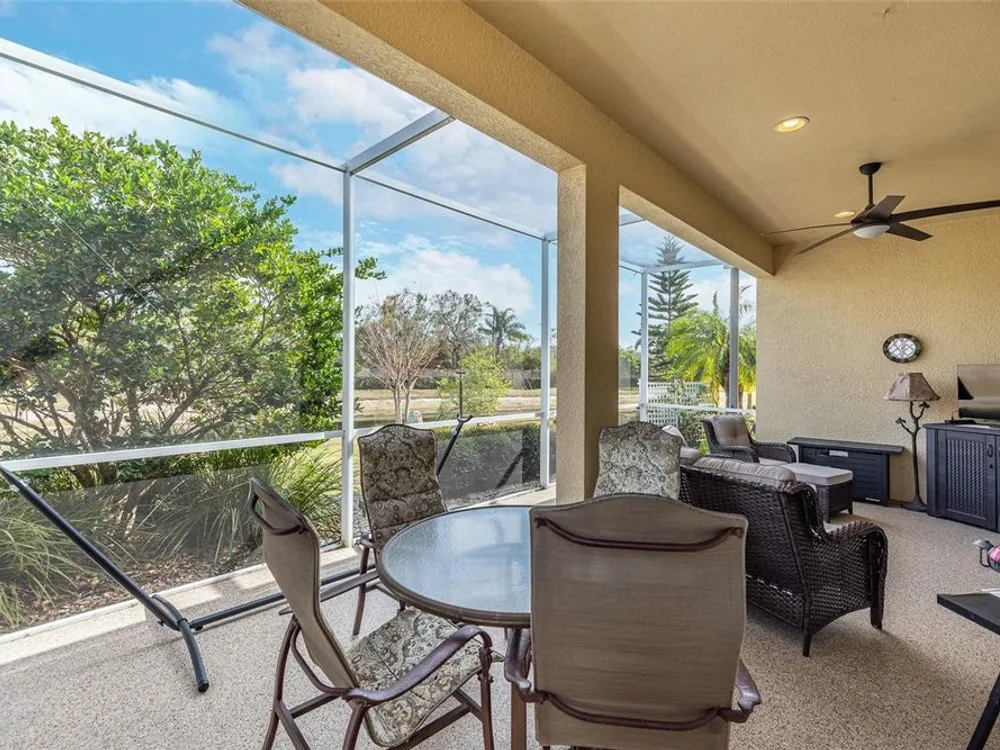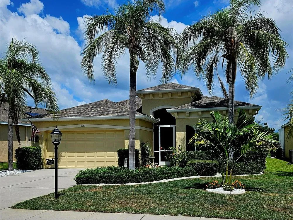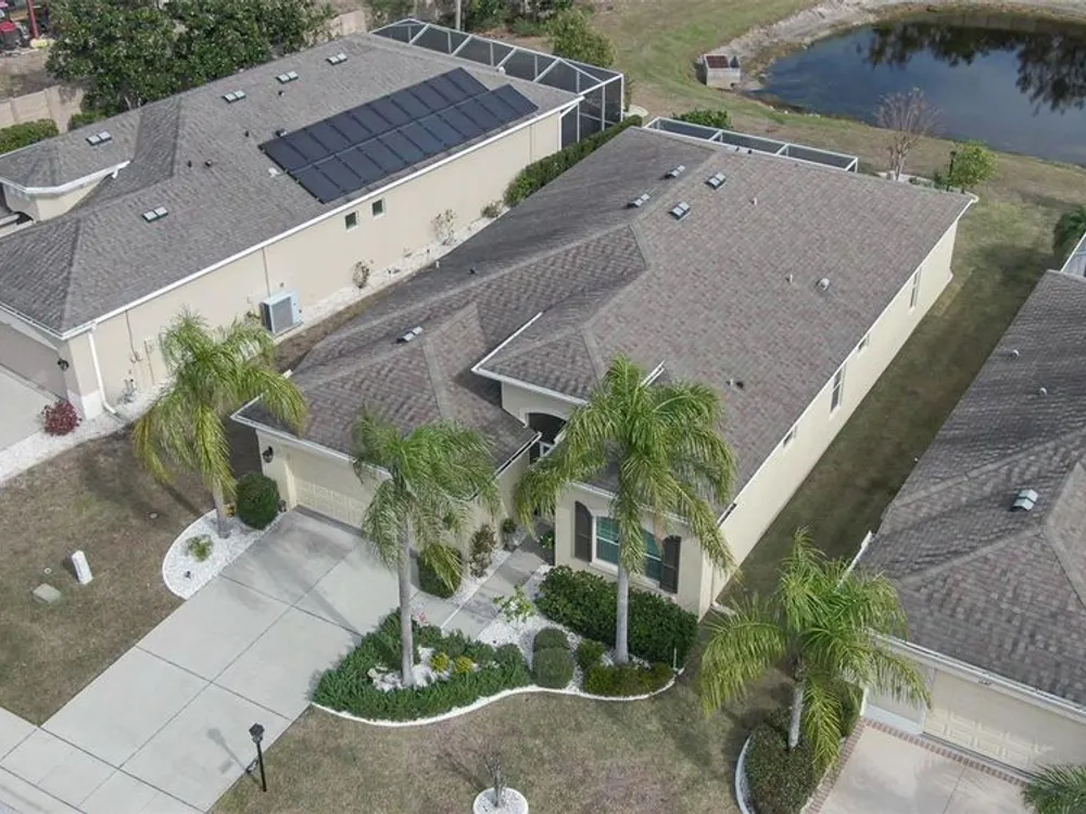 A SIZZLING PRICE AND A BRAND NEW ROOF!!! Bring all offers, seller motivated!! Located in America’s #1 Retirement Community for 2024 — Voted by Realtor.com & Travel + Leisure Magazine — As you drive up to the home you are INVITED by the lovey landscaping swaying Palm Trees… Don’t miss this immaculately maintained CARMEL model home with breathtaking pond views — no backyard neighbors! This 3 Bedroom, 2 Bath, 2 Car Tandem Garage home combines elegance, and serene outdoor living in one of the most sought-after active adult communities in the country. From the moment you enter the tiled, screened entry and step through the glass-insert front door, you’ll notice the quality and natural light throughout the home. A dramatic 14-foot foyer with tray ceiling welcomes you inside YOUR SPARKLING MOVE IN READY CLEAN HOME. The main living areas features ARCHED DOORWAYS, HIGH CEILINGS & CONTEMPORARY paint tones, diagonally laid ceramic tile, while all the bedrooms boast hardwood flooring—NO carpet anywhere! A large well-lit…recessed lighting Great Room. Separate dining room with tray ceiling is perfect for dinners and multiple uses. The great room is open to the kitchen, making sure that you are always part of the fun. The kitchen is LARGE enough for multiple cooks, Cozy dinette nook is for the intimate gatherings & overlooking the outdoor views, Stunning quartz countertops, white tile backsplash, warm honey oak cabinets, with pull out drawers, bookshelves, butler’s pantry, is located between the kitchen and dining room, designed for storage, food preparation, STAINLESS STEEL APPLIANCES, DUAL CONVENTION OVEN, pendant lights for kitchen island, UNDER MOUNT LIGHTING, RECESSED LIGHTING, convenient breezeway to the upgraded laundry room, washer & dryer, utility sink, and extra cabinetry is located adjacent to the Extended garage with built-in cabinets and overhead storage. The second bathroom is conveniently located in the hallway, serving the two additional bedrooms—one of which includes a custom closet with built-in shelves and pull-out drawers. These bedrooms are situated on the opposite side of the home from the primary suite, offering both functionality and separation.The Owner’s Suite boasts tray ceilings, his-and-hers walk-in closets, and a spacious en suite bathroom. You'll enjoy separate vanities with quartz countertops, matching honey oak cabinets, a large walk-in shower, and a private water closet for added comfort. Best of all, sliding glass doors lead directly to your extended screened lanai, offering peaceful views of the pond, fountains, and conservation area. Renaissance Club offers the exclusive feel of a different lifestyle—a premier 55+ community within Sun City Center, this home offers access to exclusive amenities including: A gym, heated pool, spa, clubhouse, lounge, and restaurant Full access to Sun City Center's extensive amenities, including three heated pools, fitness center, sports complex, arts & crafts center, and two clubhouses Over 150 clubs, golf courses, entertainment venues, and more—all golf-cart accessible! Location, location, location! Conveniently near shopping, top-rated medical facilities, Tampa, Sarasota, St. Petersburg, award-winning beaches, international airports, major sporting events, and fine dining. Sellers feel so good about this home. We have a four-point inspection attached. You will not waste your money on this home. Make an appointment today!!!