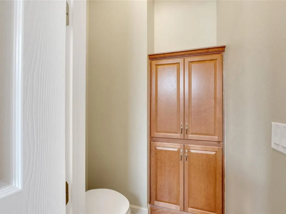 - Ceiling Fan(s), Eat-in Kitchen, High Ceilings, Living/Dining Room, Main Level Primary, Solid Surface Counters, Split Bedrooms, Walk-In Closet(s), Window Treatments
