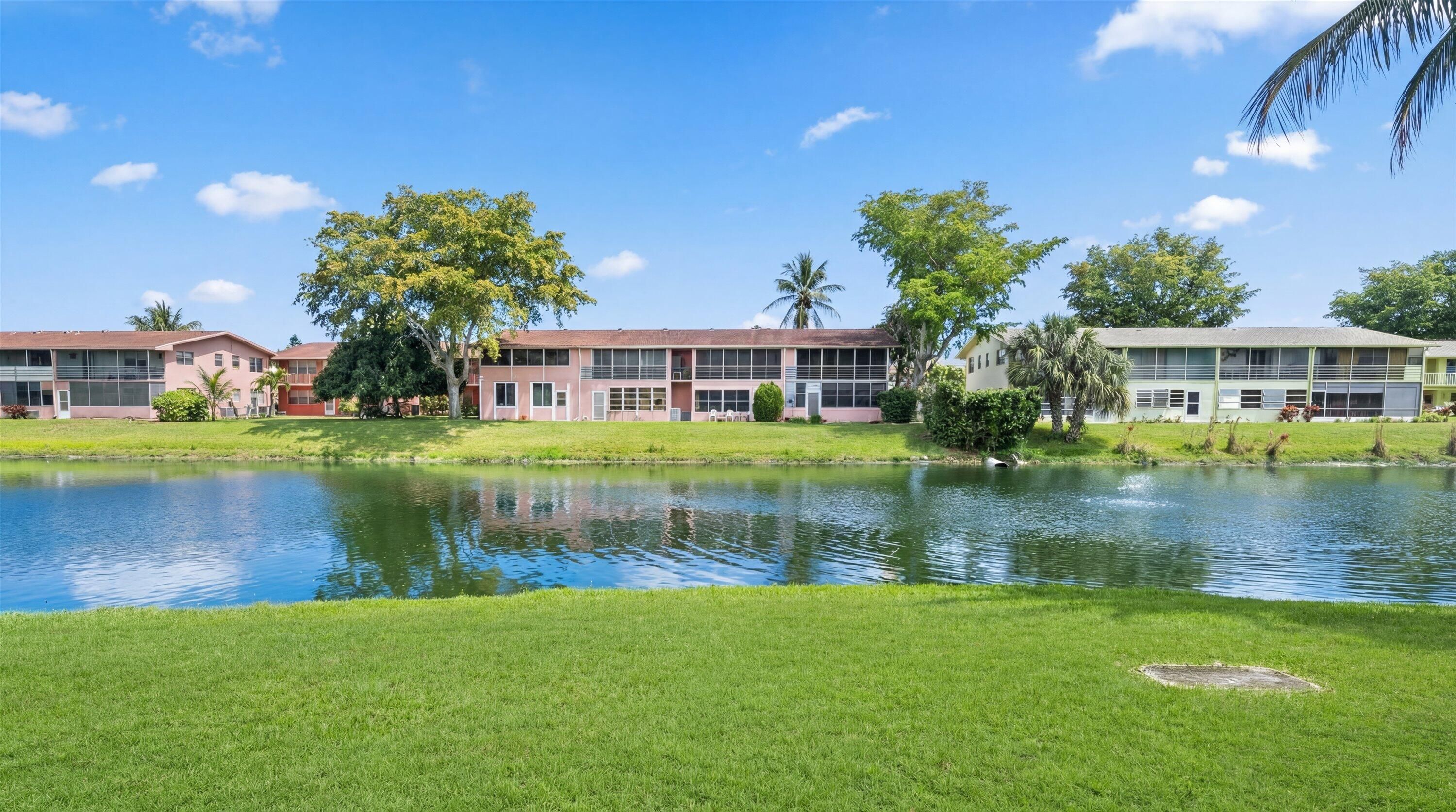 Wake up to peaceful canal views just outside your home, where ducks drift by and sandhill cranes stroll along the water's edge. Tucked away in one of the most desirable spots, 165 Dorchester H is a rare end-unit on the water that brings in extra light and a level of privacy you just don't get in most units. Inside, the space feels open and comfortable right away. The living areas and bedrooms are generously sized, with beautiful wood-look tile floors throughout that give the home a clean, elevated feel without sacrificing ease. There's also a true dining area, so you're not squeezing a table into the living room. The kitchen and primary bathroom have both been thoughtfully updated, with a bright white kitchen that feels fresh and timeless, and a primary bath finished with elegant marble floors that add just the right touch of luxury. Both bedrooms open directly to the enclosed back patio, which ends up being one of your favorite spots in the home. It's perfect for morning coffee, a quiet afternoon, or winding down at night while you take in the water and all the nature around you. And here's what really makes this one stand out. It has central air, which is not common in Century Village and makes a noticeable difference in comfort. Add in the end-unit location and the water view, and you have a combination that is hard to come by and is going to go quick. Living in Century Village is where this home really shines. This is a true social community where it's easy to meet people and stay as busy as you want to be. You'll find everything from pickleball and fitness classes to mahjong groups, book clubs, art classes, and card games happening all the time. At night, there are broadway style shows and concerts, plus social events that give you something to look forward to every week. Residents also enjoy a beautiful clubhouse, indoor and outdoor pools, a fitness center, tennis, pickleball, cable, and transportation for grocery shopping and many of West Palm Beach's most popular spots, which makes day-to-day life simple and convenient. If you've been waiting for something on the water that feels updated, spacious, and easy to live in, with a built-in social lifestyle, this one just makes sense.