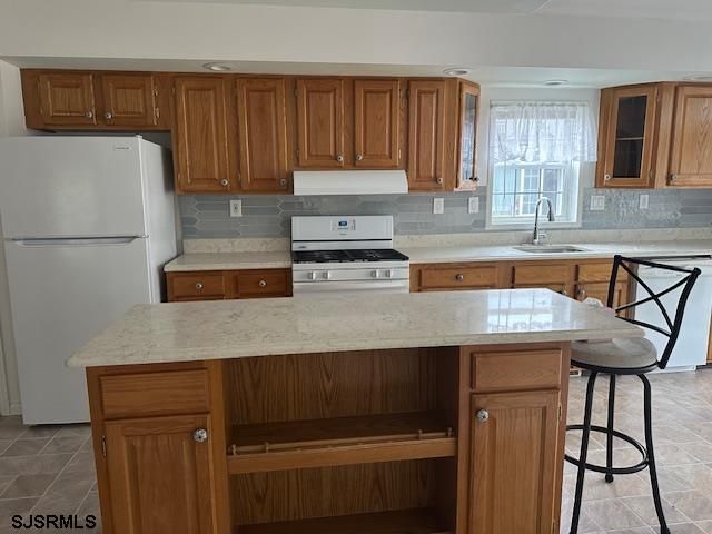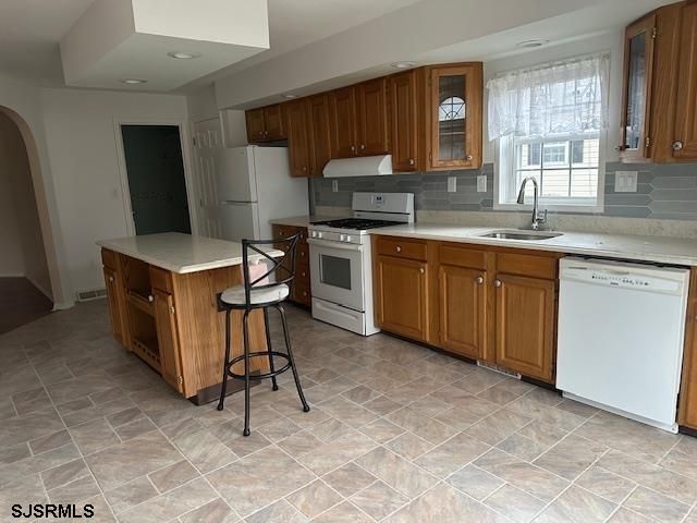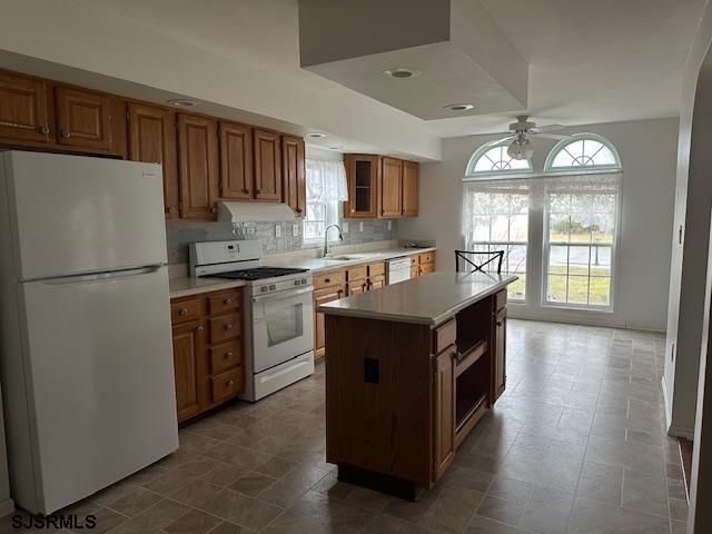 Come and enjoy the countless ways to stay active & make new friends in the desirable Fairways, a 55+ adult community. This charming 2 bedroom/2 bath well maintained Glen Eagles model corner ranch with covered front porch invites you into a large open living room with a cozy gas fireplace and laminate floors. A huge kitchen with a large island, tons of cabinets with new quartz counters and backsplash with windows that make this room bright and cheery. Newer refrigerator and vent hood complete the kitchen which opens to a formal dining room. Laundry room with access to a 1 car attached garage with storage loft. Also a patio outback with a retractable awning. Spacious primary bedroom has its own bathroom, soaking tub, double sink and shower plus a large 8'10x9'8 walk in closet. Also a second bedroom to enjoy. Home has new heat and air condition as well as a new hot water heater. Lot rent includes trash, snow removal, common area landscaping, indoor/outdoor pool, gym, billiards and clubhouse entertainment room. Convenient to shopping, expressway, shore points, casinos & Philadelphia. Come take a look!