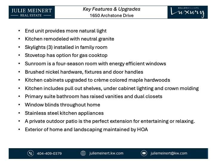 Listing courtesy of: Julie Meinert, Keller Williams North Atlanta Listing Agent Contact Information: 404-409-0379