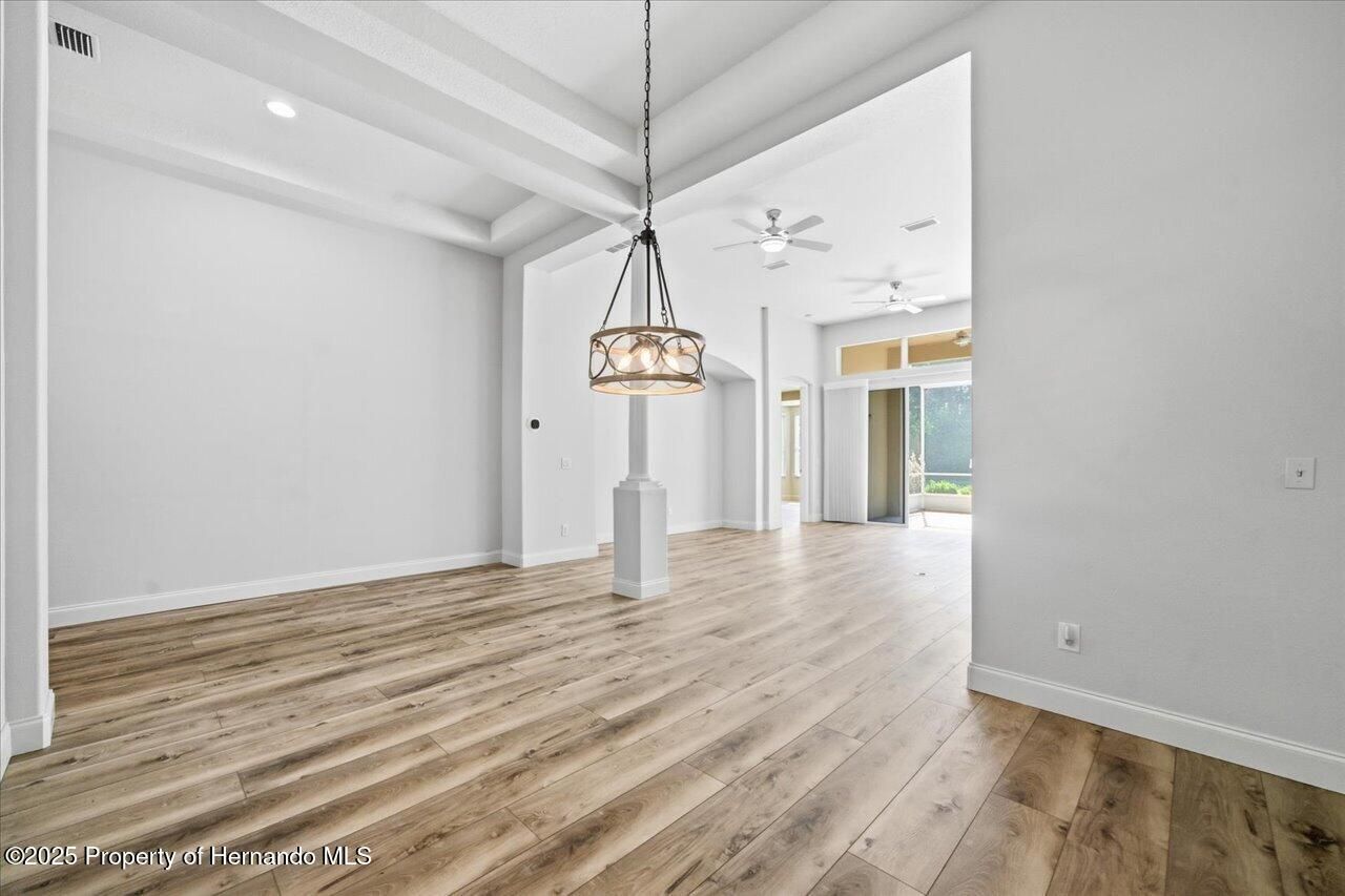 Owner Financing Available for Qualified Buyers! Welcome to this beautifully updated 3-bedroom, 2-bath home located in the highly desirable Celina Hills neighborhood of Citrus Hills, within the renowned Terra Vista community in Hernando, Florida. This move-in-ready residence offers refined Florida living with modern style, open spaces, and elegant architectural details throughout. Step inside to a bright and spacious interior featuring soaring ceilings with tray accents and abundant natural light. The wide-open great room and dining area showcase updated flooring completed in 2022 and create an inviting atmosphere ideal for both everyday living and entertaining. Sliding glass doors lead to an expansive screened paver lanai, seamlessly blending indoor and outdoor living while providing privacy and peaceful natural views. The well-appointed kitchen is designed for functionality and hosting, offering extensive cabinetry, solid-surface countertops, stainless steel appliances, a breakfast bar, and pantry storage. The primary suite serves as a relaxing retreat with walk-in closets and a private en-suite bath featuring a long dual-sink vanity, a glass-block walk-in shower, and ample storage. Two additional bedrooms offer flexibility for guests, family, or a home office. Residents enjoy the world-class amenities Terra Vista is known for, including championship golf, indoor and outdoor pools, fitness centers, tennis courts, scenic walking trails, a full social calendar, and impeccably maintained grounds. The HOA includes a mandatory quarterly activity due of 593.87, along with an additional social membership dues to be confirmed. Recent improvements include a new furnace and water heater installed in 2024, the entire home and garage interior professionally repainted in 2024, toilets replaced in 2022, and flooring updated in 2022. With excellent curb appeal, a tile roof, screened outdoor living, and access to unmatched resort-style amenities, this home offers the ultimate Florida lifestyle just minutes from shopping, dining, healthcare, and recreation. Experience the Terra Vista lifestyle at its finest. Seller may consider Bitcoin (BTC), Ethereum (ETH), or USDC, subject to conversion to U.S. Dollars at closing and standard Florida title and escrow requirements.