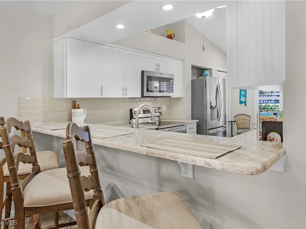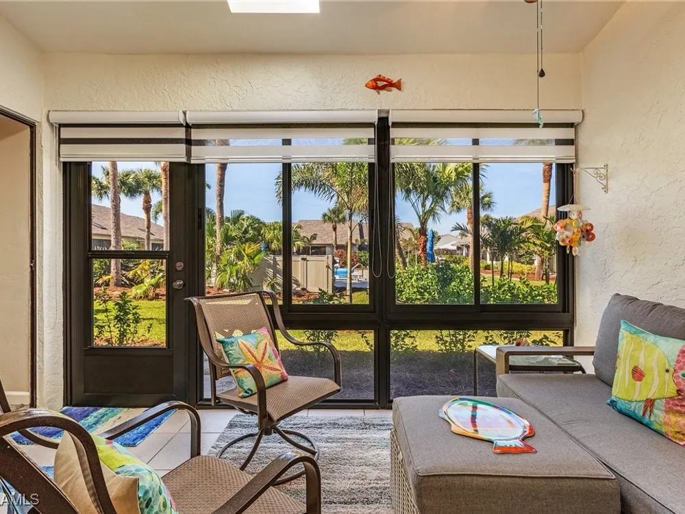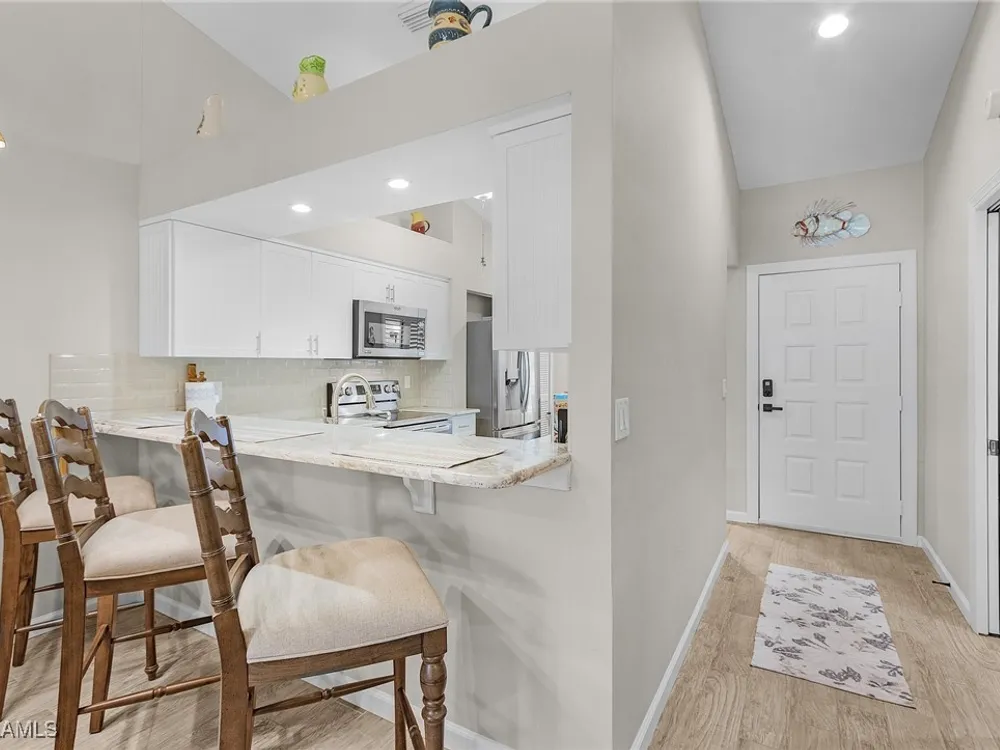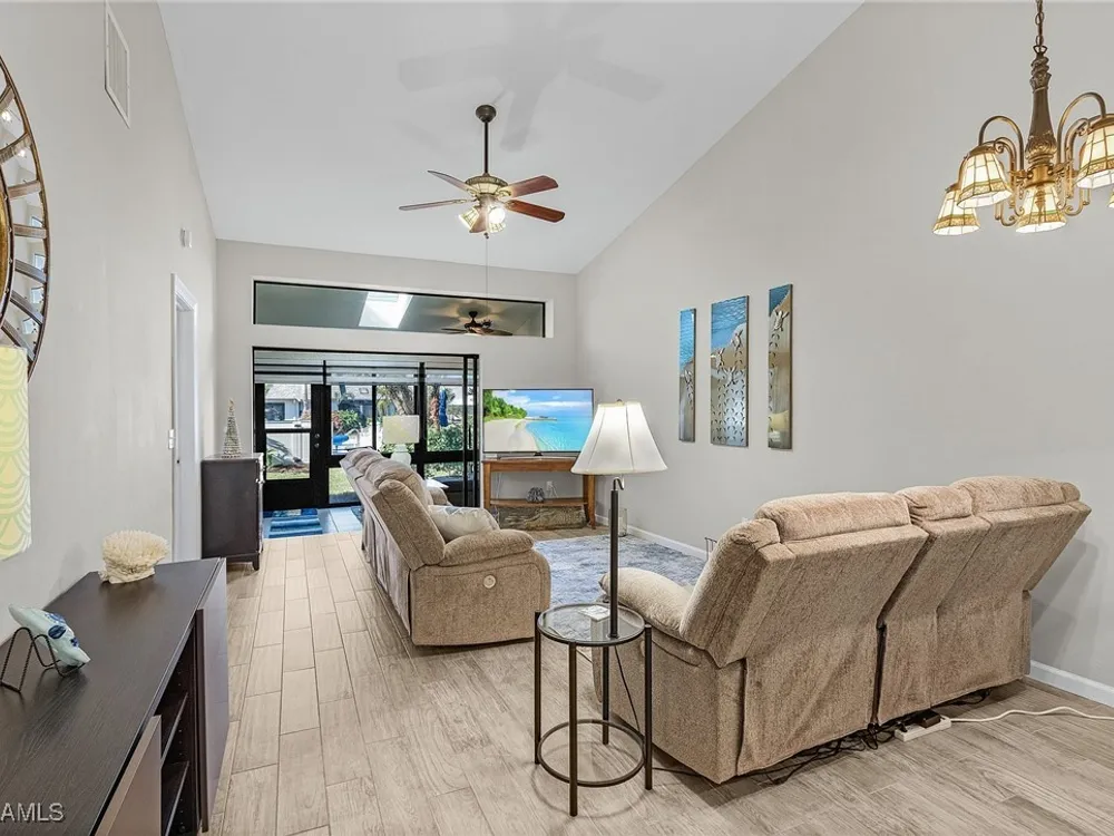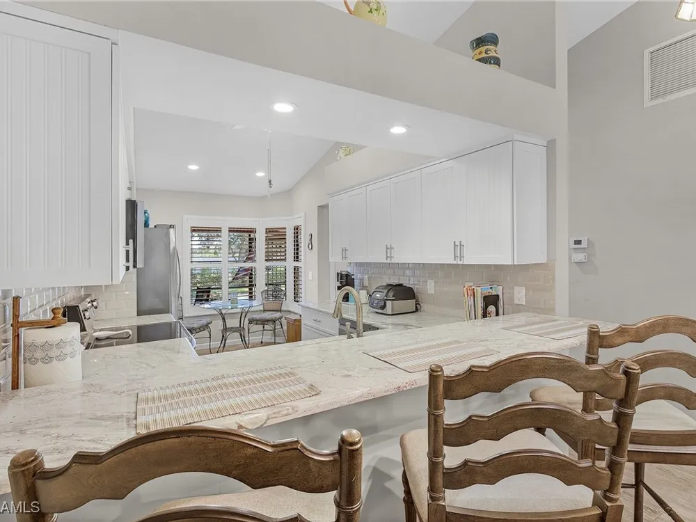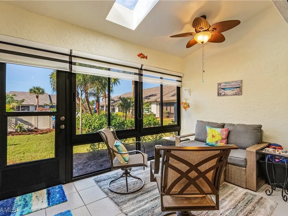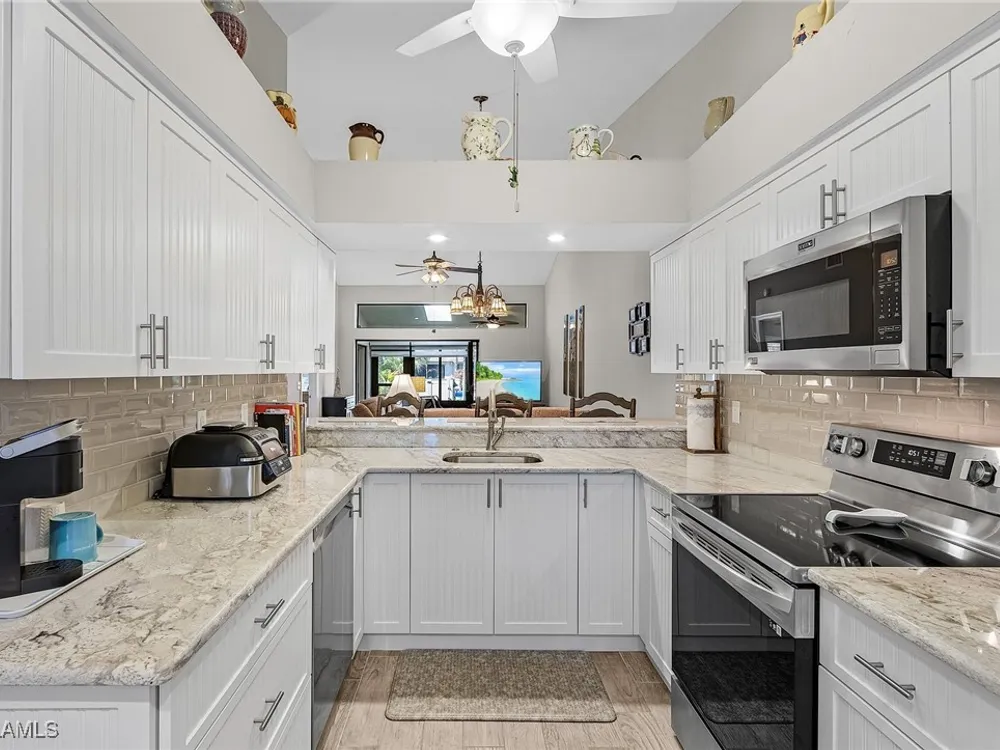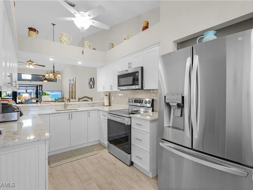 Welcome to your new Attached Villa home in South Fort Myers, where luxury meets leisure in this gated community of Cinnamon Cove. This gorgeous villa has stunning views of the outdoor spaces featuring a pool, lush green landscaping, and dual screened lanai’s with the rear lanai able to be open to the fresh air or close the sliding windows and make it under air extra space so you can pick up that good book and just relax. Inside, the residence you’ll find 2 bedrooms, 2 bathrooms, all stainless appliances(less than 2 years old), laundry in residence for ultimate convenience and a new larger water heater. This beautifully updated and remodeled home offers granite counters in kitchen and bath, all custom cabinets by Cornerstone and Plantation shutters that gives the perfect blend of elegance and comfort. The large clubhouse offers an array of social activities, fitness center, billiards, tennis, pickleball, and bocce ball. Revel in the proximity to popular beaches like Bunche Beach, Fort Myers Beach, and Sanibel Island. Enjoy convenient access to shopping, dining, hospitals, and the international airport, all just minutes away. Embrace the essence of comfortable living as you create your own story in this very active community.