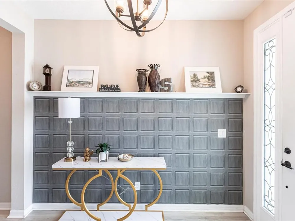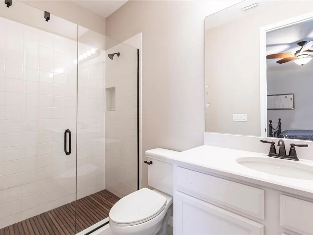 - Ceiling Fan(s), Central Vacuum, Eat-in Kitchen, High Ceilings, Open Floorplan, Main Level Primary, Solid Surface Counters, Walk-In Closet(s)