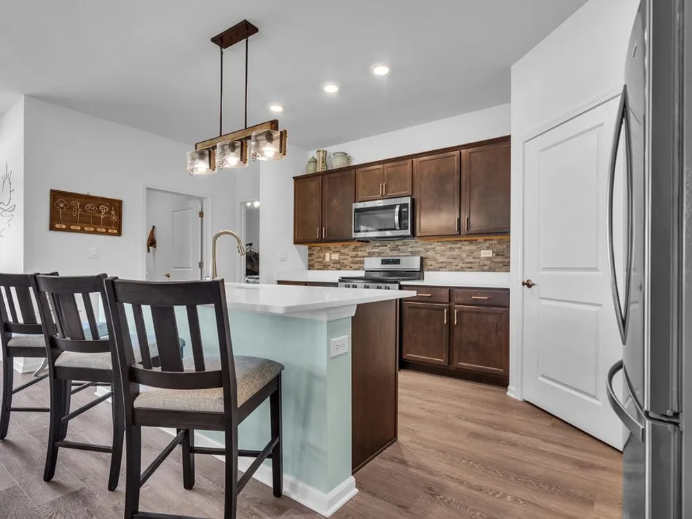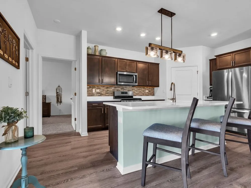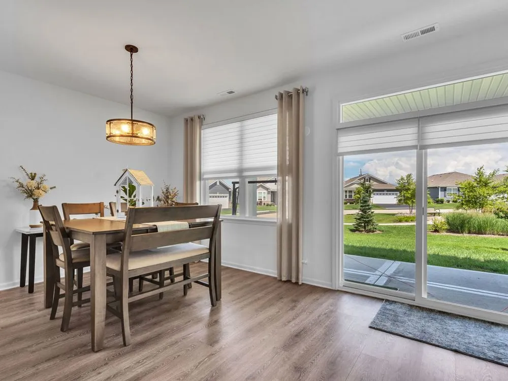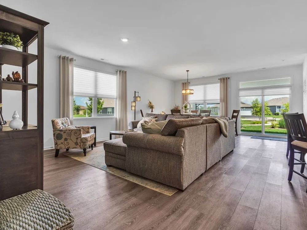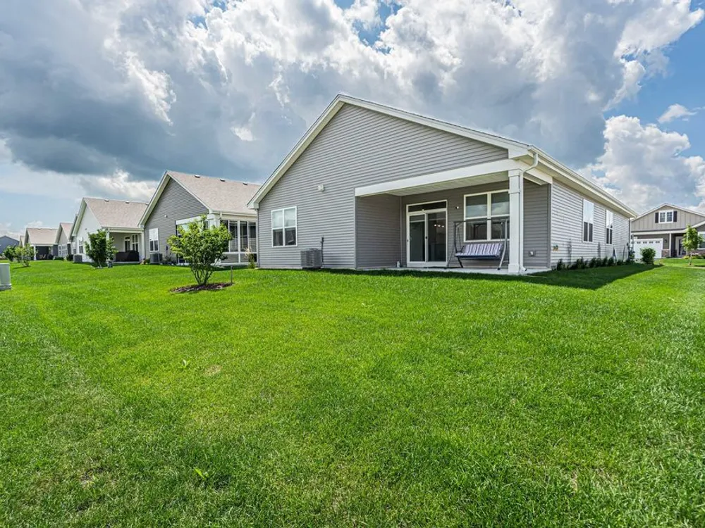 WELCOME HOME TO RESORT-STYLE LIVING! DISCOVER THE PERFECT BLEND OF ELEGANCE, COMFORT, AND CONVENIENCE IN THIS BEAUTIFULLY UPGRADED 2-BEDROOM, 2-BATHROOM HOME WITH A VERSATILE DEN, LOCATED IN A VIBRANT 55+ ACTIVE ADULT COMMUNITY OFFERING A TRULY MAINTENANCE-FREE LIFESTYLE. STEP INSIDE TO 9-FOOT CEILINGS AND AN OPEN-CONCEPT FLOOR PLAN THAT ENHANCES NATURAL LIGHT AND FLOW THROUGHOUT THE HOME. THE GOURMET KITCHEN IS A STANDOUT, FEATURING RICH ESPRESSO CABINETRY, WHITE QUARTZ COUNTERTOPS, A GLASS TILE BACKSPLASH, STAINLESS STEEL APPLIANCES, AND AN OVERSIZED ISLAND WITH A BREAKFAST BAR-IDEAL FOR CASUAL DINING AND ENTERTAINING.THE SPACIOUS GREAT ROOM IS PERFECT FOR EVERYDAY LIVING AND GATHERINGS, HIGHLIGHTED BY LUXURY VINYL FLOORING AND DESIGNER LIGHTING THAT ADD A TOUCH OF SOPHISTICATION. THE PRIMARY SUITE IS A PRIVATE RETREAT, OFFERING PLUSH CARPETING, A SPA-LIKE EN SUITE WITH DUAL VANITIES, QUARTZ COUNTERTOPS, A WALK-IN LUXURY SHOWER, A LARGE WALK-IN CLOSET, AND AN ADDITIONAL CLOSET. THE GENEROUSLY SIZED SECOND BEDROOM IS PERFECT FOR GUESTS OR HOBBIES AND IS CONVENIENTLY LOCATED NEAR A FULL HALL BATH. THE DEN OFFERS FLEXIBILITY FOR A HOME OFFICE, READING NOOK, OR CRAFT SPACE. ENJOY YOUR PRIVATE PATIO THAT OPENS TO LUSH GREEN SPACE-IDEAL FOR RELAXING EVENINGS OR SUMMER BBQS. THIS AMENITY-RICH COMMUNITY OFFERS A DYNAMIC LIFESTYLE WITH ACCESS TO SOCIAL EVENTS, A STATE-OF-THE-ART FITNESS CENTER, INDOOR AND OUTDOOR SWIMMING POOLS, PICKLEBALL, TENNIS, GOLF, AND MORE-ALL JUST STEPS FROM YOUR DOOR. DON'T MISS THIS OPPORTUNITY TO LIVE THE LIFESTYLE YOU DESERVE-SCHEDULE YOUR PRIVATE SHOWING TODAY!