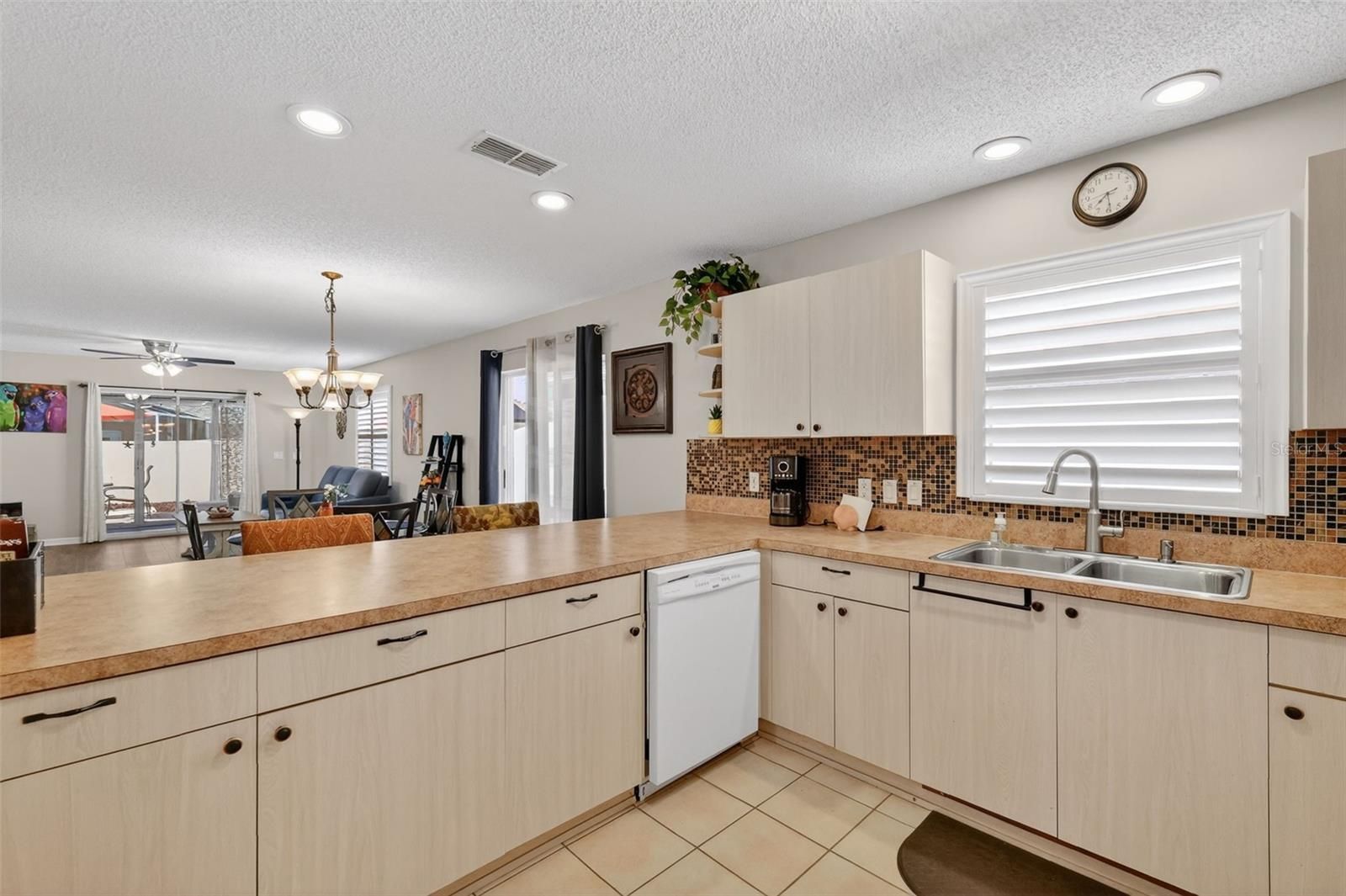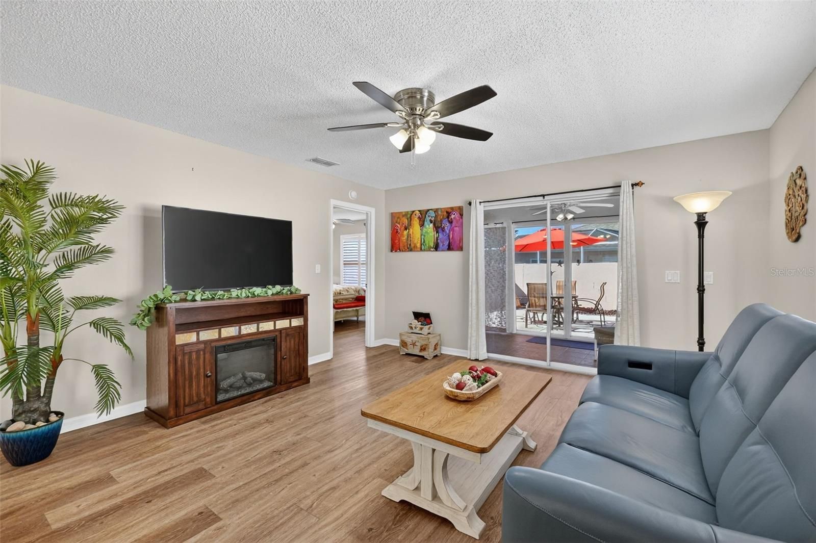 Looking for a Furnished Courtyard Villa? This lovely 2-bedroom, 2-full bath Courtyard Villa in The San Miguel Villas (just off Morse Blvd, near Rio Grande Ave) is for you! BOND PAID! This home has been tastefully furnished and decorated, and everything stays! You'll love the vinyl plank flooring throughout, with tile in the kitchen and baths. Both bathrooms were recently updated and include a beautiful tile shower in the primary suite. Other updates include a new A/C/HVAC system (2023) and roof (2019). Also, there are pull-out shelves and a garbage disposal in the kitchen, ceiling fans, an enclosed lanai, and Plantation Blinds/Shutters. All appliances stay, including the washer and dryer. The garage features epoxy floors, a newer water heater, and a wash tub. All blinds and curtains remain with the home. Golf cart can be purchased separately.