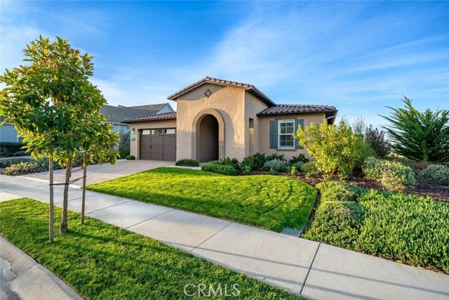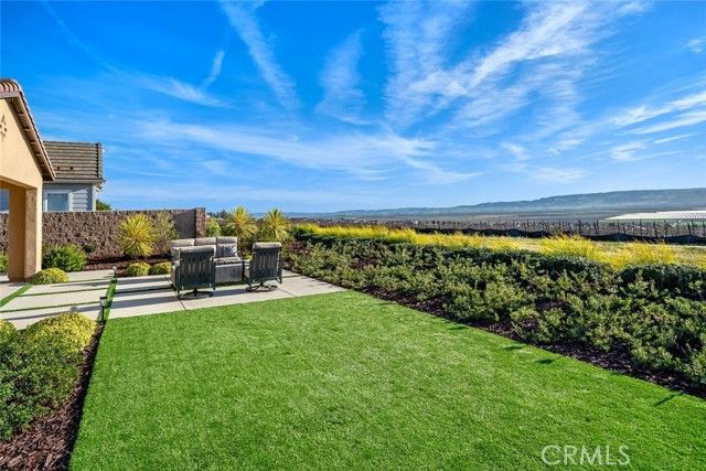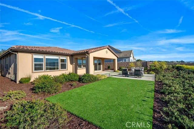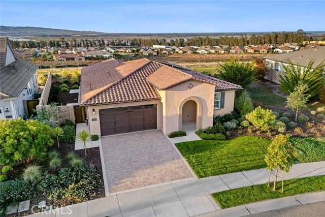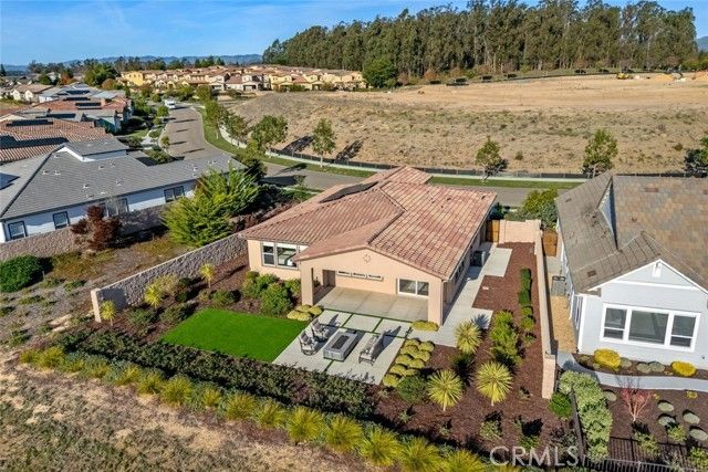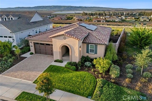 Welcome to the Solvang! This fabulous home has it all - a sweeping birds-eye panoramic view of vineyards, hills, trees and valley, magnificent Central Coast sunsets, a great floor plan, loads of natural light, the unbeatable Trilogy lifestyle, plus - it’s one of the newest homes in the neighborhood. Built in 2023, this 2 bedroom, 2 bath, plus den home features an open floor plan with a clean, modern vibe. You’ll love the neutral wood floors in the main living area, two-tone paint, plantation shutters up front with sleek shades elsewhere, brilliant white cabinetry, white quartz countertops and brushed nickel fixtures. The chef’s kitchen is equipped with GE Profile stainless appliances, including a 5-burner gas cooktop, wall oven/microwave, gleaming white tile backsplash, a beautiful quartz island and an expansive walk-in pantry. The kitchen looks out over the great room and dining area with lots of windows for plenty of natural light and fabulous views. Head outside and experience the vista backyard - dine Al Fresco under the covered patio or gather on the open-air extended patio around the built-in gas fire pit with a glass of wine and take in a magnificent sunset. Back inside, the owner’s suite is amazing - an oversized bedroom with an incredible view, an en-suite spa bathroom featuring a sleek, modern tile shower with frameless glass enclosure, dual sinks, quartz countertop, a super-sized walk-in closet and convenient linen storage. Up front, the guest quarters offer the ultimate in privacy - a spacious bedroom with a full luxury bathroom next door, plus hallway floor-to-ceiling linen storage. Additionally, there’s a private den for an office, media room, or a yoga/meditation retreat; a 2-car garage, energy-saving SOLAR and captivating low-maintenance landscaping front and back. It’s the home of your dreams in Trilogy Monarch Dunes with award-winning golf, tennis, pickleball, fitness center, lifestyle activities, member-led clubs, restaurants and Sandalwood Spa.