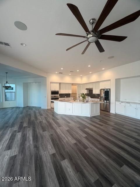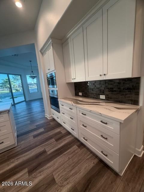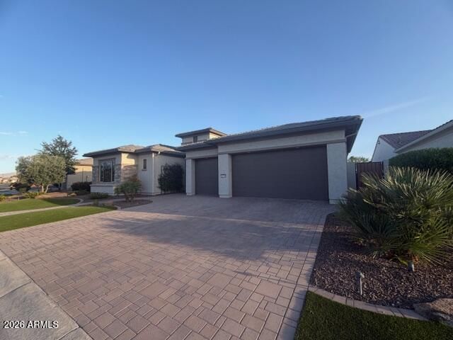 Golf Course Living in Tuscany at PebbleCreek Rarely available and beautifully appointed, this 2021 Solstice model is ideally positioned along the 8th hole of the Tuscany West Golf Course, offering sweeping fairway and mountain views in a setting that feels like new. Designed for both comfort and elegance, the home features a full three-car garage, custom paved driveway and walkways, and a resort-style backyard complete with a sparkling pool, custom lighting, tranquil water features, and a relaxing spa. The north/south orientation enhances natural light while capturing picturesque views of the golf course, mountains, and outdoor living spaces. Inside, the thoughtfully designed floorplan showcases an expansive walk-in pantry as well as a convenient butler's pantry with upgraded white Shak -style cabinetry. The gourmet kitchen is a true centerpiece, highlighted by an oversized island with Cambria quartz countertops, premium Wolf appliances, a full designer backsplash, soft-close drawers, additional lower cabinetry storage, and a built-in trash compactor. The spacious great room seamlessly blends indoor and outdoor living, featuring fully stackable sliding doors that open to a travertine patio and pool area--perfect for entertaining or enjoying Arizona's beautiful weather. Additional features include luxury vinyl plank flooring throughout, a private den with locking doors, and a state-of-the-art surround sound system. Both the primary and guest suites offer private en-suite bathrooms and generous walk-in closets, providing comfort and privacy for residents and visitors alike. Expanded bump-outs in the garage and bedrooms enhance the home's already generous proportions, while modern conveniences such as an electric vehicle charging station and garage service door add everyday practicality. This exceptional property presents a rare opportunity to own on one of the most desirable streets in the Tuscany neighborhood of PebbleCreek. Don't miss your chance to experience elevated golf course living at its finest.