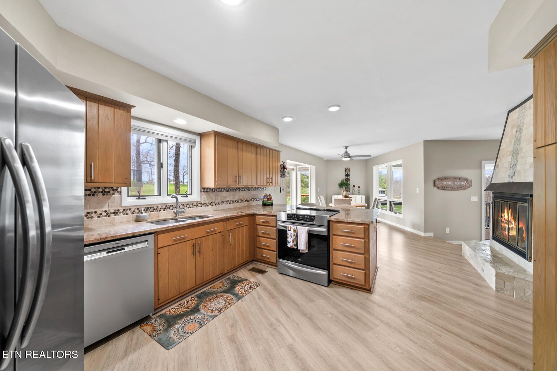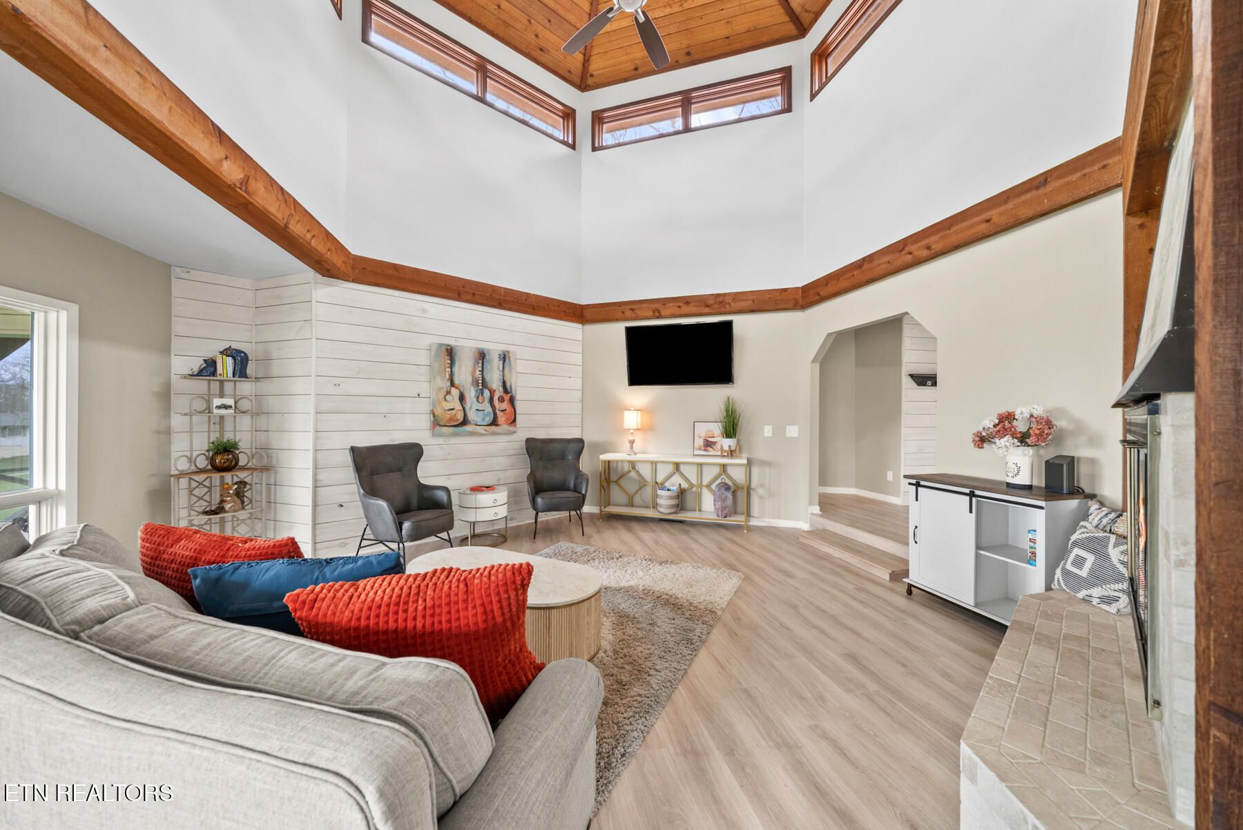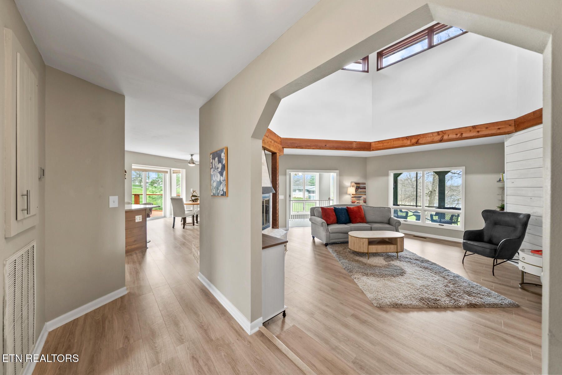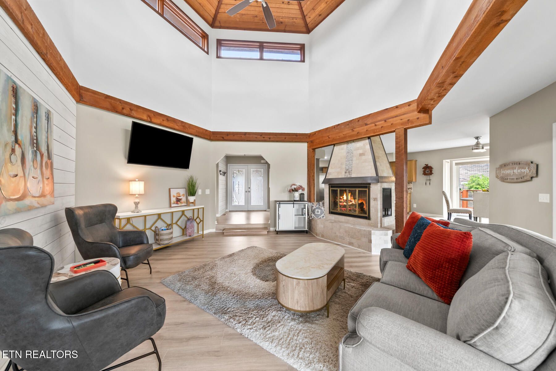 Unique Golf-Front Home in Fairfield Glade; Full of Character and Upgrades! Perched above the 18th hole of Druid Hills, this one-of-a-kind home is bursting with architectural charm and modern updates. Located in the heart of Fairfield Glade, it's just a short five-minute walk to the new Druid Hills Clubhouse and Restaurant, the community's exciting new gathering place, anticipated to open in August 2026. As you enter through welcoming double doors into the foyer, you're greeted by a stunning living room anchored by a soaring tower with windows and a beautifully stained wood-plank ceiling. A double-sided, wood-burning stone fireplace warms both the living and dining areas, creating a cozy, inviting vibe. This showplace is being sold completely furnished, featuring all-new, upgraded décor, along with refreshed flooring and updated kitchen counters. Enjoy breathtaking golf course views from abundant windows on both levels, or relax outdoors on your private screened porch or open deck as you watch the golfers finish their rounds. Recent Updates Include: New HVAC system (2025) Two new water heaters (2025) New crawl space dehumidifier (2026) New induction stove (2021) New double-sided fireplace (2021) The home's crawlspace is well maintained and offers ample storage, complemented by a huge walk-in closet in the downstairs third bedroom for even more space. Come explore this distinctive golf-front property, overflowing with character, views, and comfort and you'll want to call it your own. *All information is deemed reliable. Buyer to verify all information before making an informed decision.*