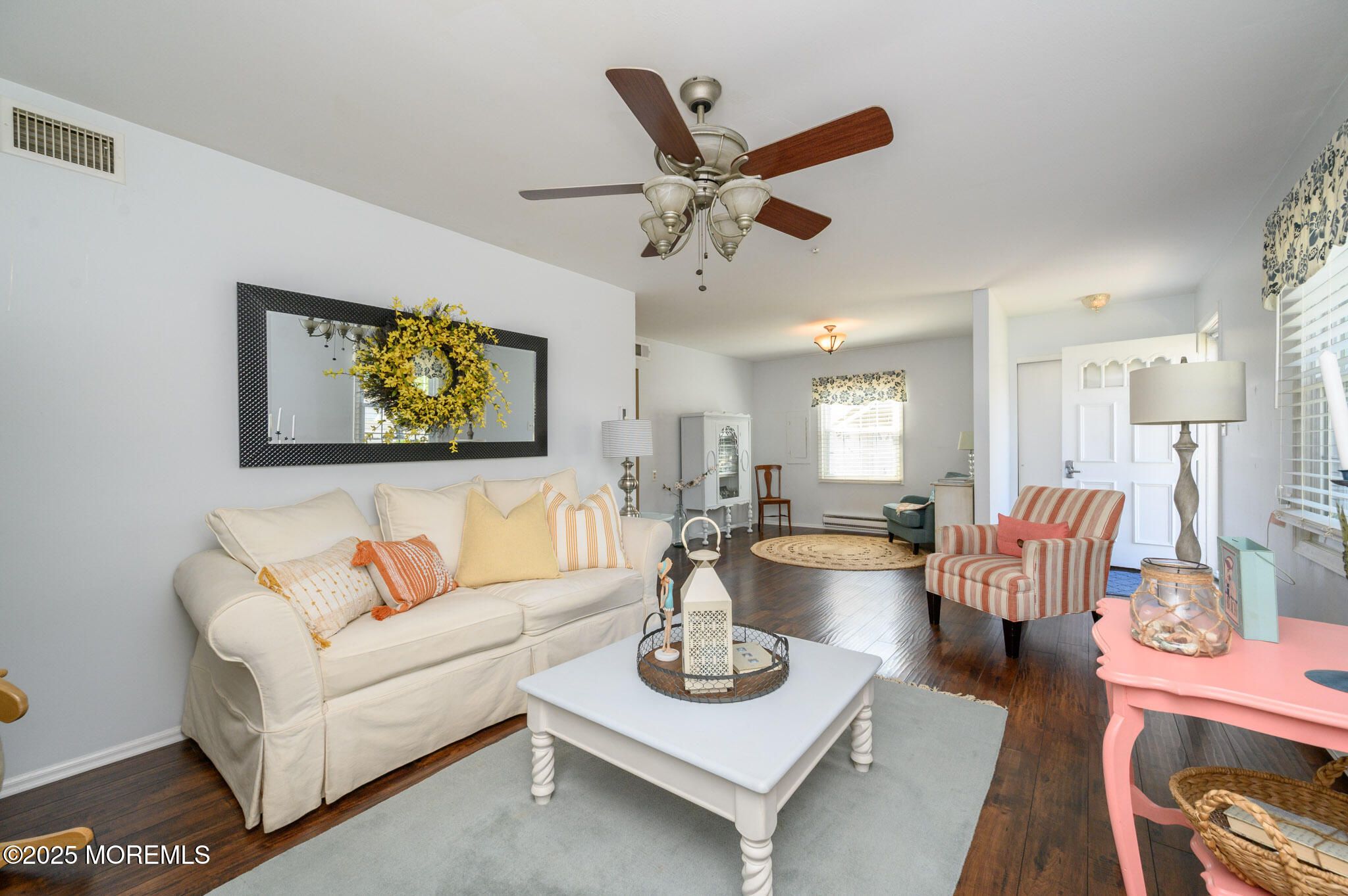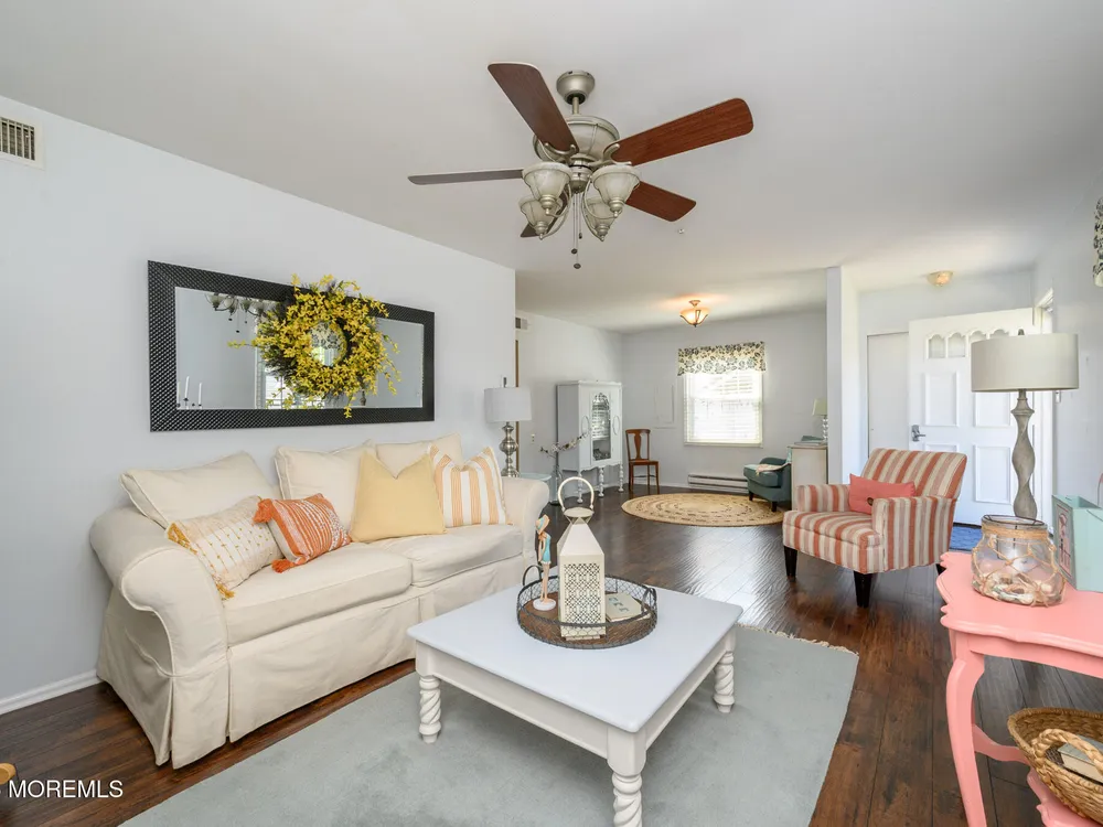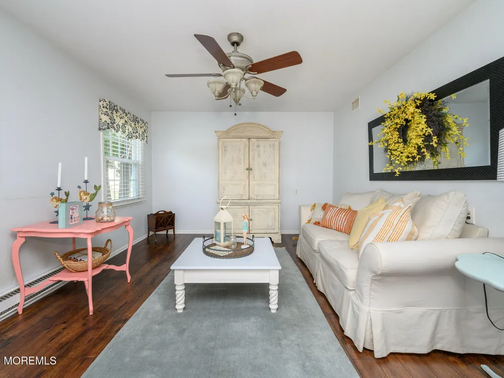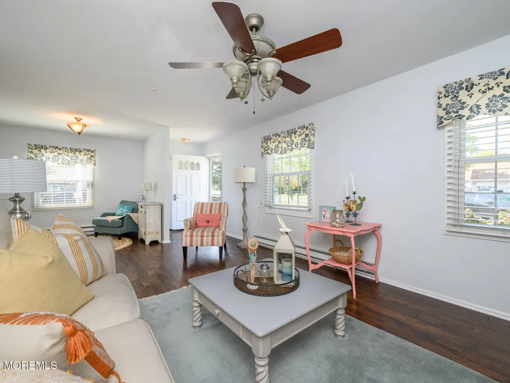Home Sweet Home! Charming 2 Bed 1 Bath Ranch with 1 Car Garage in highly desirable Freehold could be the one for you! Well maintained inside and out with curb appeal in a prime location, just pack your bags and move right in! Lovely, light and bright living room welcomes you in, with plenty of natural light all through, flowing right into the elegant formal dining area. Eat-in-Kitchen offers ample cabinet storage, dinette space, and slider to the blissful sunroom, the perfect spot to enjoy your morning coffee. Convenient in-unit laundry room, too! Down the hall, find the main full bath, along with 2 generous bedrooms with lighted ceiling fans for added comfort. Outdoor space holds a quaint patio, along with access to the 1 car garage. This home also features Updated CAC, HW Floors, Sliding Glass Door, Washer & Dryer, Siding, and Roof. Enjoy amenities like the Clubhouse, Community Room, Shuffleboard, Tennis, & more! All of this & more, ready and waiting for you! Come & see TODAY!!