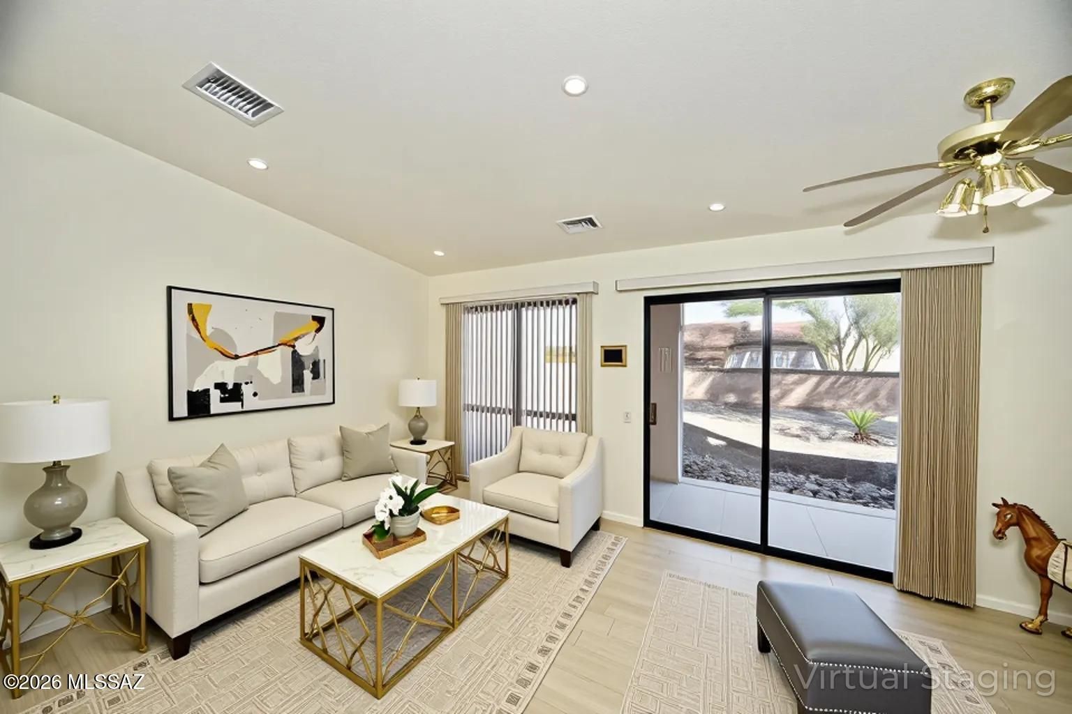 Enjoy sweeping mountain views in this carefree home that checks all the right boxes. Situated on a large, elevated corner lot, it offers spacious outdoor living at its best. The 1521sf 2-bedroom, 2-bath home features a neutral interior and a cozy, welcoming floor plan, perfect for enjoying the many activities in the desirable 55+ Green Valley neighborhood. Conveniently located close to the Las Campanas Center, with easy access to the highway, grocery stores, and churches. Furniture available on a separate bill of sale. New HVAC (10/25), New roof (03/18), All new plumbing (11/22)