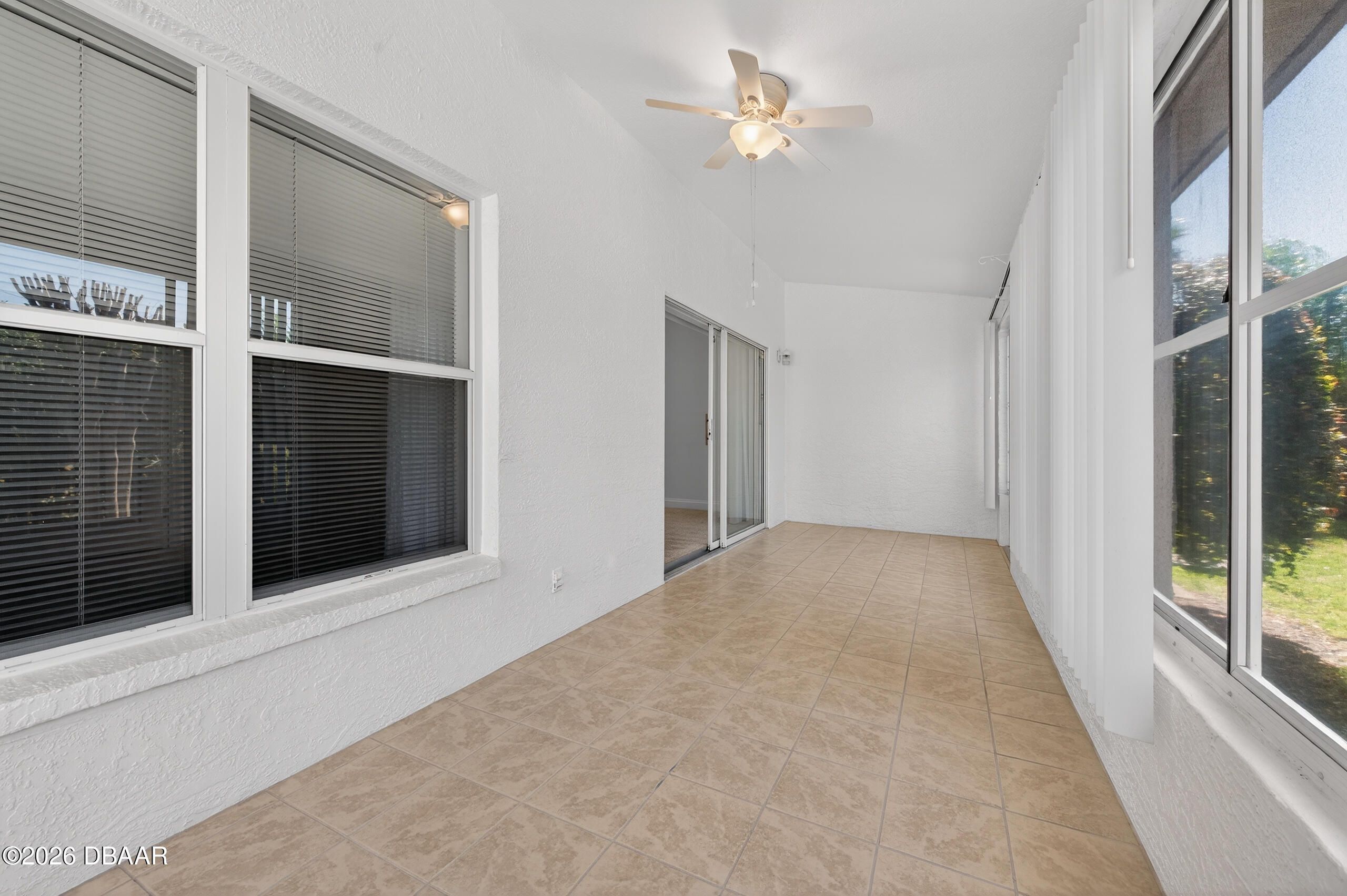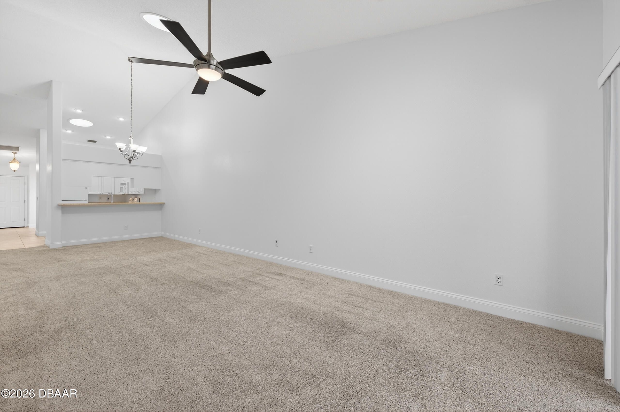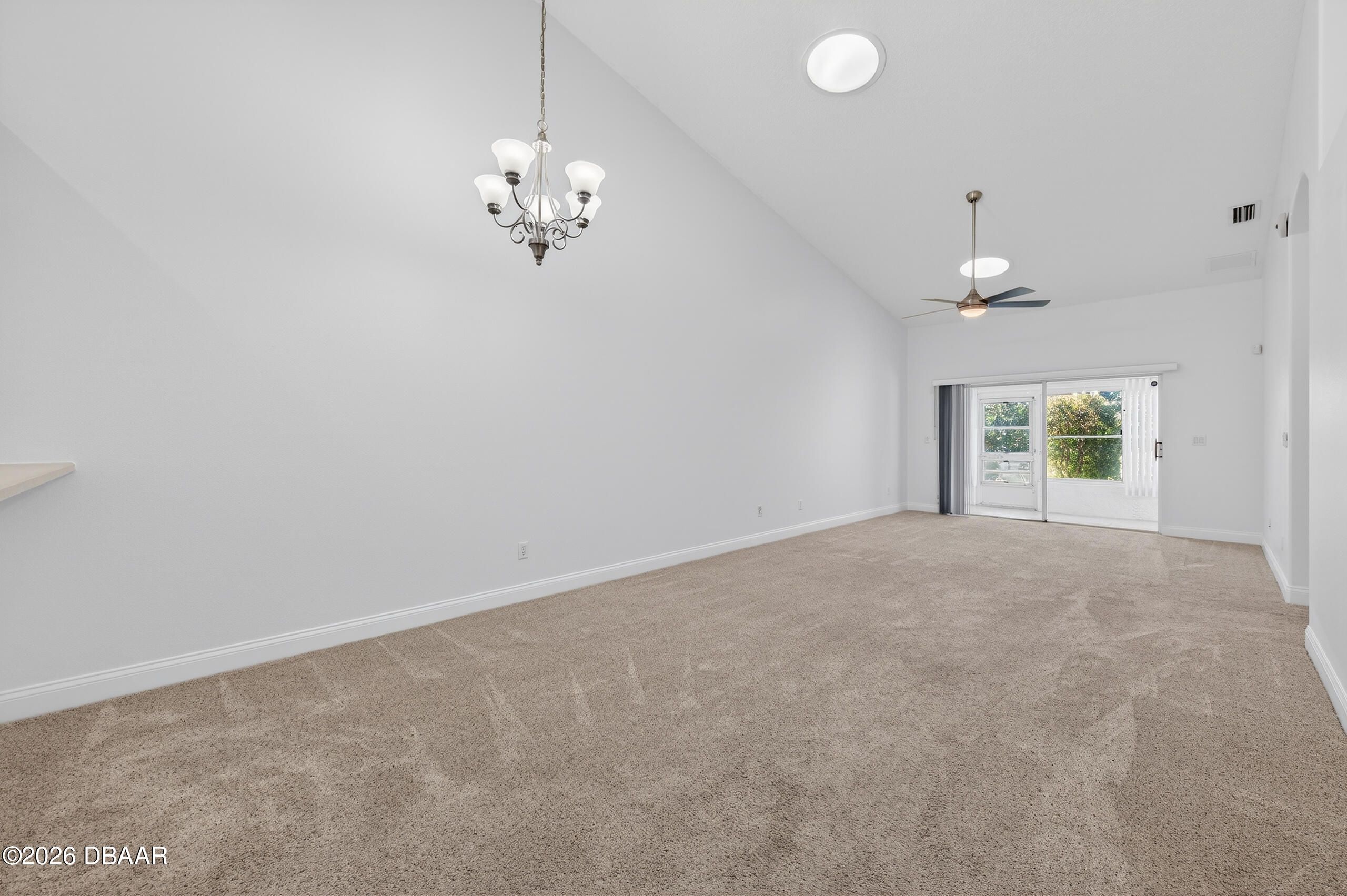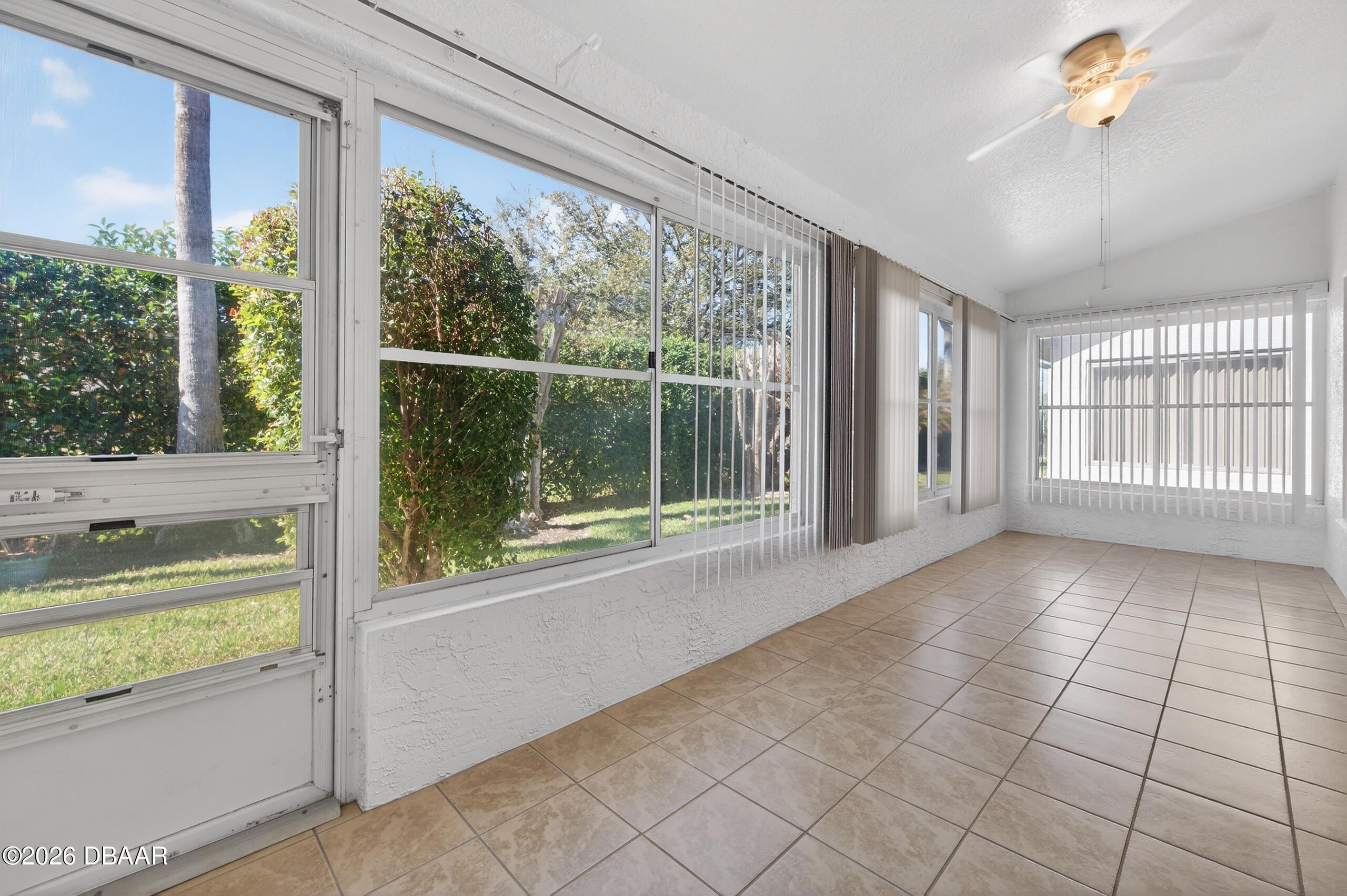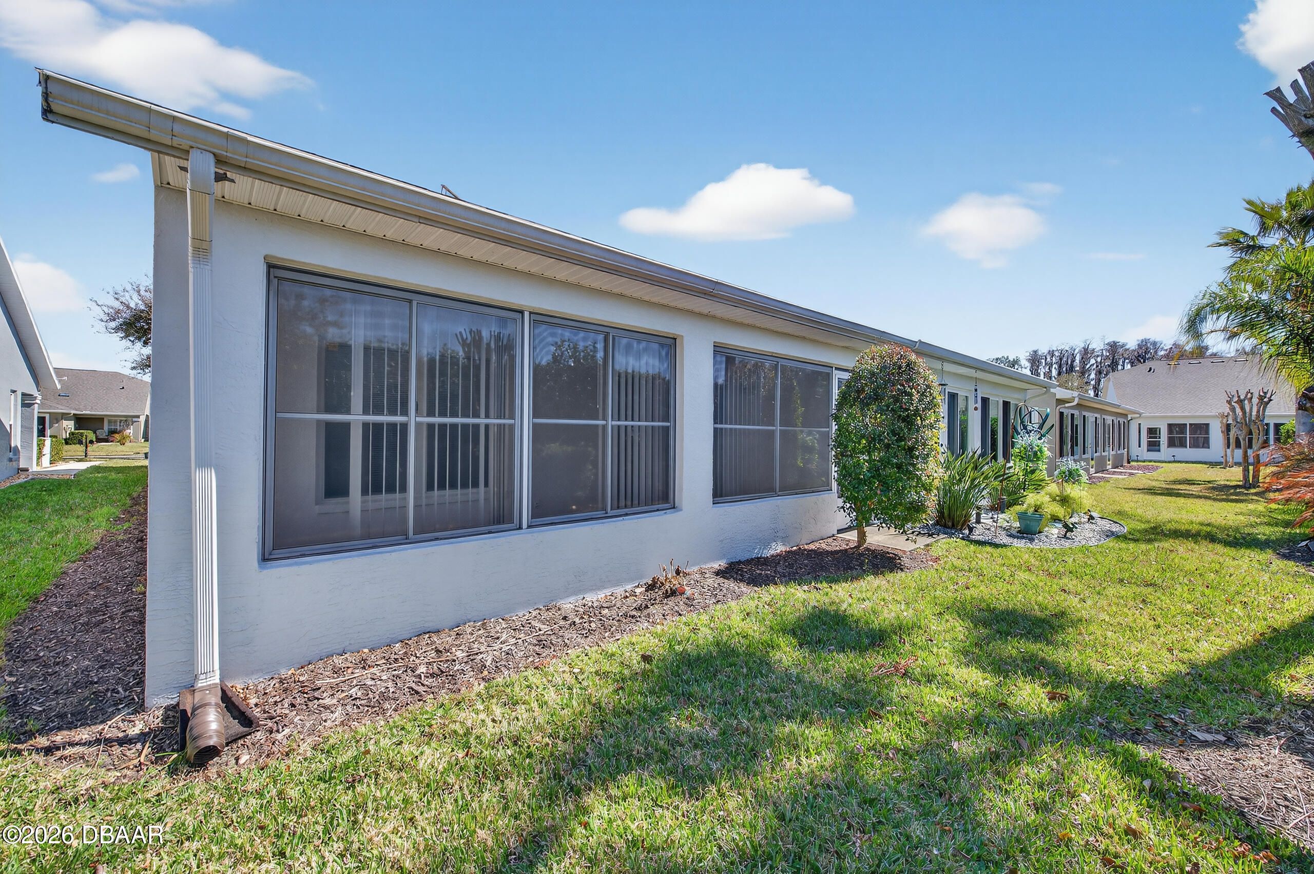 Charming and move-in ready 2004 attached villa with a 1 car garage located in the secure 24/7 gated community of The Villages of Royal Palm in the heart of Port Orange, featuring a NEWER ROOF 2021 for added peace of mind. This 2 bedroom, 2 full bath home plus a large versatile den offers a comfortable and functional layout with space that can easily be used as an office, guest room, hobby area or additional living space. The main areas feature recently shampooed high quality wall to wall carpet, and the interior was freshly painted in 2024, giving the home a fresh, bright, and inviting feel. The great room/family room boasts high vaulted ceilings making it open and airy and is brightened by three circular sun tunnels that bring in natural light throughout the day, creating a warm and welcoming atmosphere, and there is also a Florida room style setup with vinyl slide screen/windows, perfect for enjoying the outdoors with added comfort and flexibility. The home features updated modern li he attached 1 car garage includes an automatic garage door opener and a convenient roll down garage screen with remote. The maintenance free HOA covers full lawn care and landscaping, pest control and sprinkler maintenance, basic Spectrum cable TV and internet, exterior painting approximately every six years, and annual house pressure washing, and residents enjoy access to pickleball courts, tennis courts, basketball court, putting green, shuffleboard, bocce ball, horseshoes, table tennis, whirlpool, two pools including one heated, and a fabulous multi million dollar clubhouse featuring a ballroom, caterer's kitchen, fitness center, library, billiards room, crafts room, office center, a monthly calendar of scheduled activities, and a large covered lanai. The community is perfectly located to all types of shopping, whether it's groceries at Publix, seasonal shopping at HomeGoods, or home improvement needs at Home Depot or Lowe's, all within minutes. There is also a 2-minute access to I-95 highway, the world's most famous beach is just 15 minutes away, and churches, hospitals, urgent care, and doctor offices are all around the corner. Whether you are a snowbird looking for a seasonal retreat or seeking to downsize into a comfortable, low-maintenance home, this villa can serve it all--schedule a showing today and experience firsthand the charm, openness, convenience, and ideal location it has to offer.