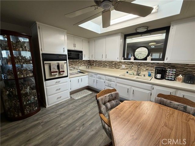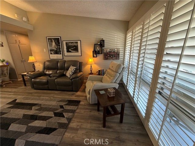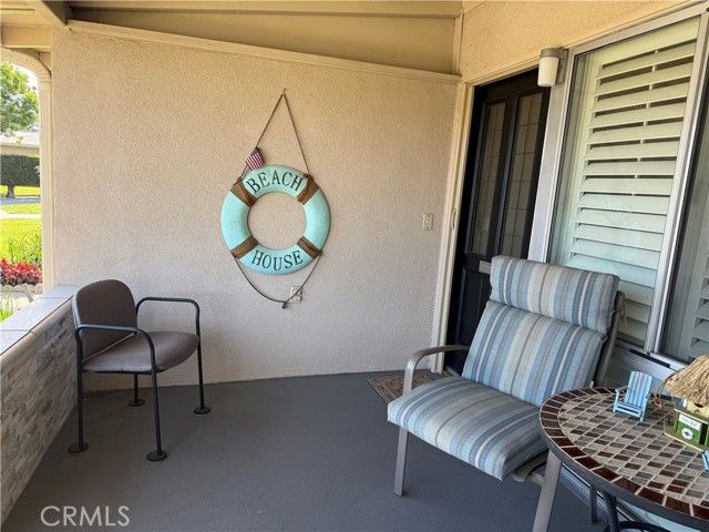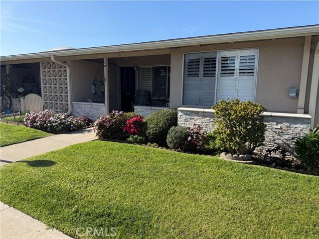 Terrific Location! This fabulous expanded one bedroom one-bathroom cottage is ready to move it. The unique leaded glass door enters into a living room that features plantation shutters, deluxe vinyl plank flooring, and a heat pump with air condition. The kitchen has white cabinets, built-in electric appliances including a stove top, oven, refrigerator, microwave, extra-large skylight, vinyl plank flooring, and a ceiling fan. The enlarged bedroom is spacious and features a walk-in closet that offers lots of storage, sliding glass doors with plantation shutters that open to the patio, a heat pump with air conditioning, plenty of space for an office area, and is carpeted. The bathroom has cultured marble vanity counters, cut-down shower, recessed lighting, a skylight, and vinyl plank flooring. The curb appeal is elegant with its stacked stone walls and charming private patio. It is conveniently located near downtown Leisure World. A great place to enjoy the many amenities offered and lovely ocean breezes.