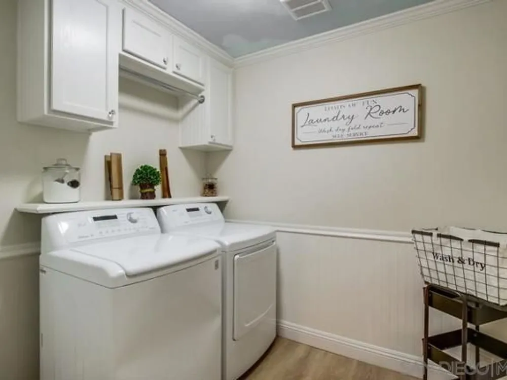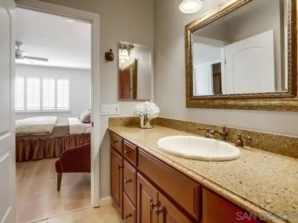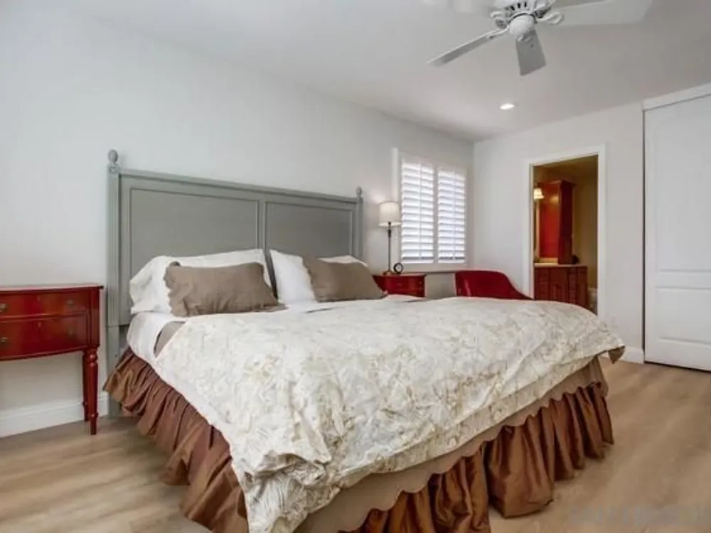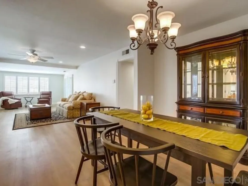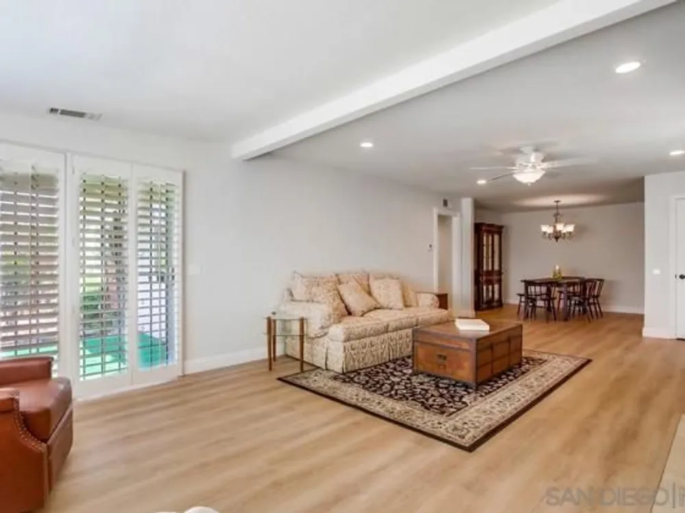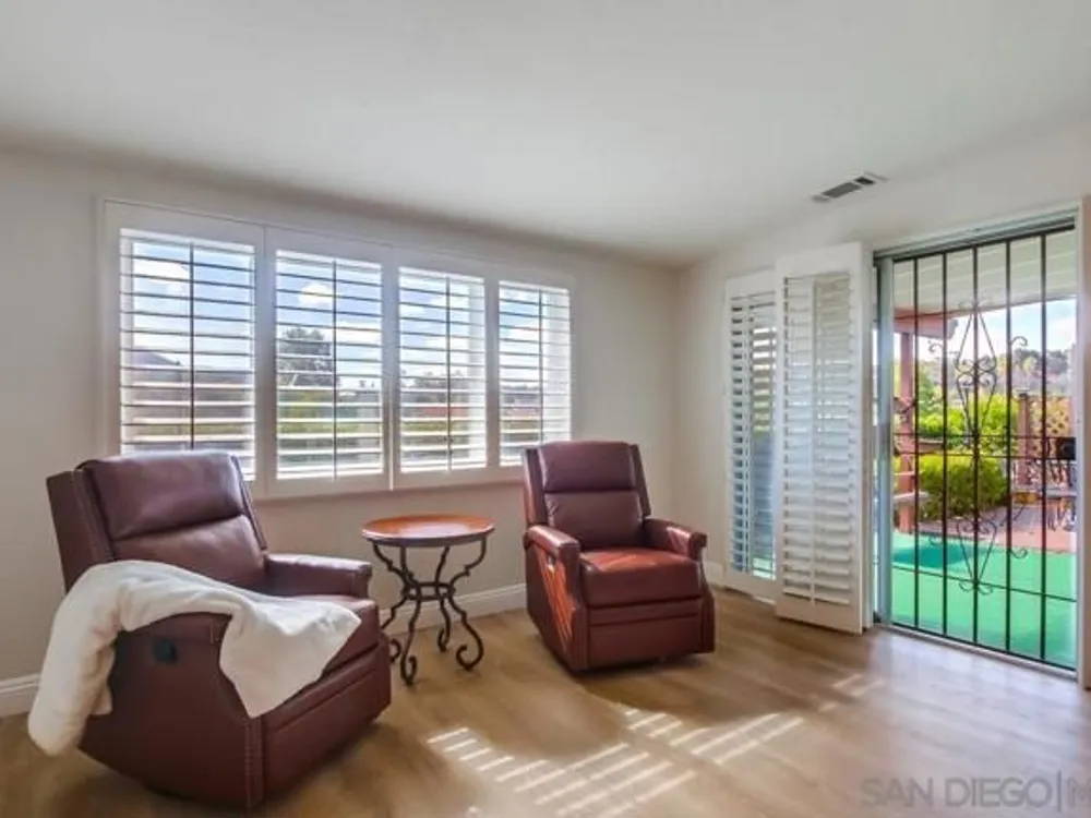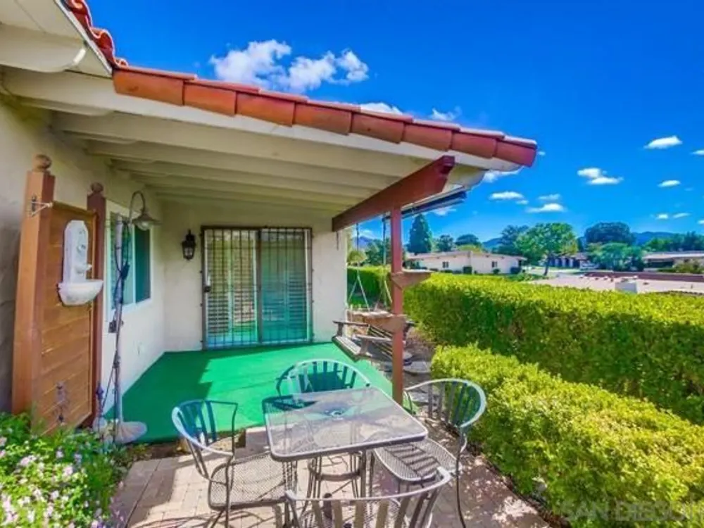 Discover easy living and timeless charm in this beautifully updated single-story 2BR/2BA home located in the desirable Seven Oaks 55+ community of Rancho Bernardo. Offering approx. 1,358 sq. ft. of light-filled living space, this residence blends modern comfort with low-maintenance living. Step inside to an open-concept great room and dining area featuring new LVP flooring, new moldings, recessed can lighting, and plantation shutters throughout. The well-appointed kitchen boasts KraftMaid semi-custom cabinetry, granite countertops, and newer appliances—ideal for everyday living or entertaining. A spacious primary suite includes built-in closet wardrobes and a beautifully bath. Additional highlights include a tankless water heater, new roof, and a private side patio with views, perfect for relaxing outdoors. This charming home also includes a lighted carport and a lockable golf cart garage, ideal for storage or a small workshop. Residents enjoy a vibrant lifestyle with access to the community clubhouse, pool, spa, fitness center, pickleball courts, woodshop, library, and a full calendar of social events. Upgrades/Features list: - Newer interior paint 2025 - Newer LVP flooring - Newer moldings - New roof 2025 - Tankless water heater - Plantation Shutters throughout -Recessed can lights - Kraftsmade semi custom cabinets - Open concept great room/dining -Well appointed kitchen -Spacious master suite - Built in closet wardrobes - Designer laundry room - View rear patio deck (Paint colors by Sherwin Williams - Shoji white walls, Pure white enamel doors and moldings)