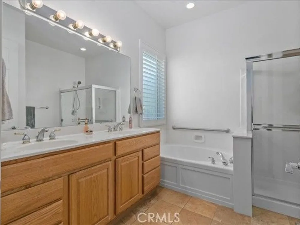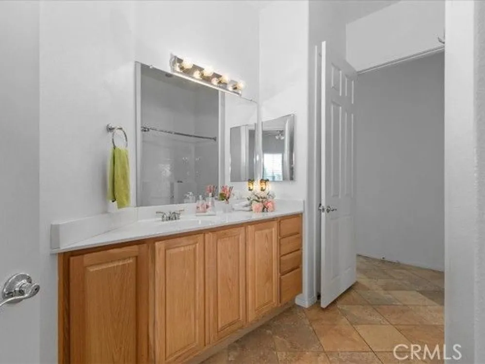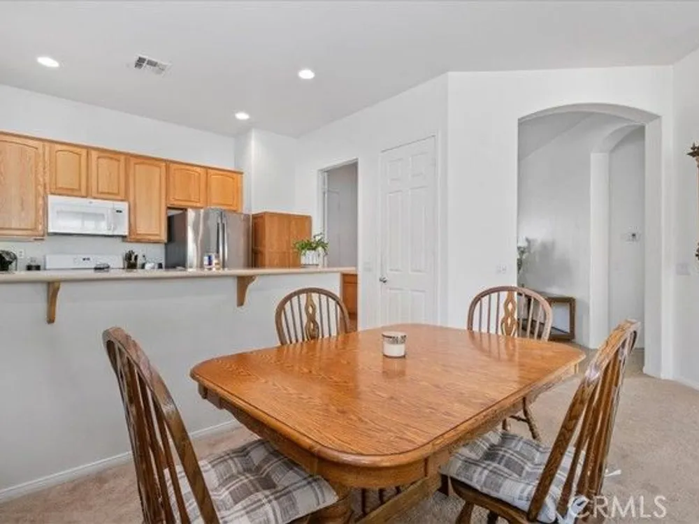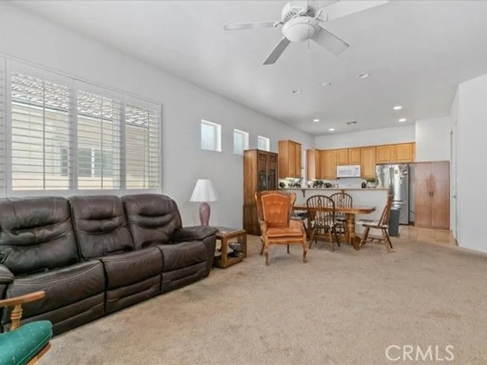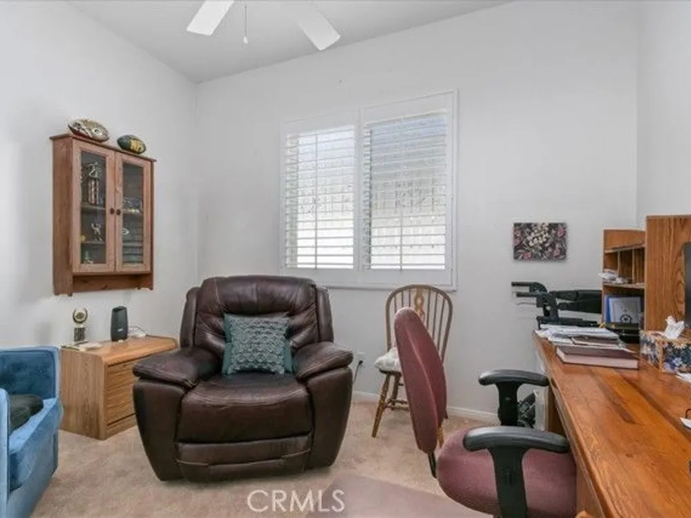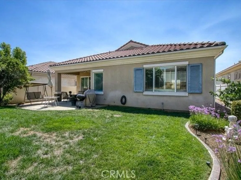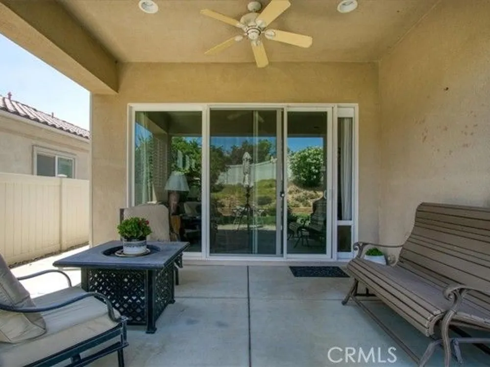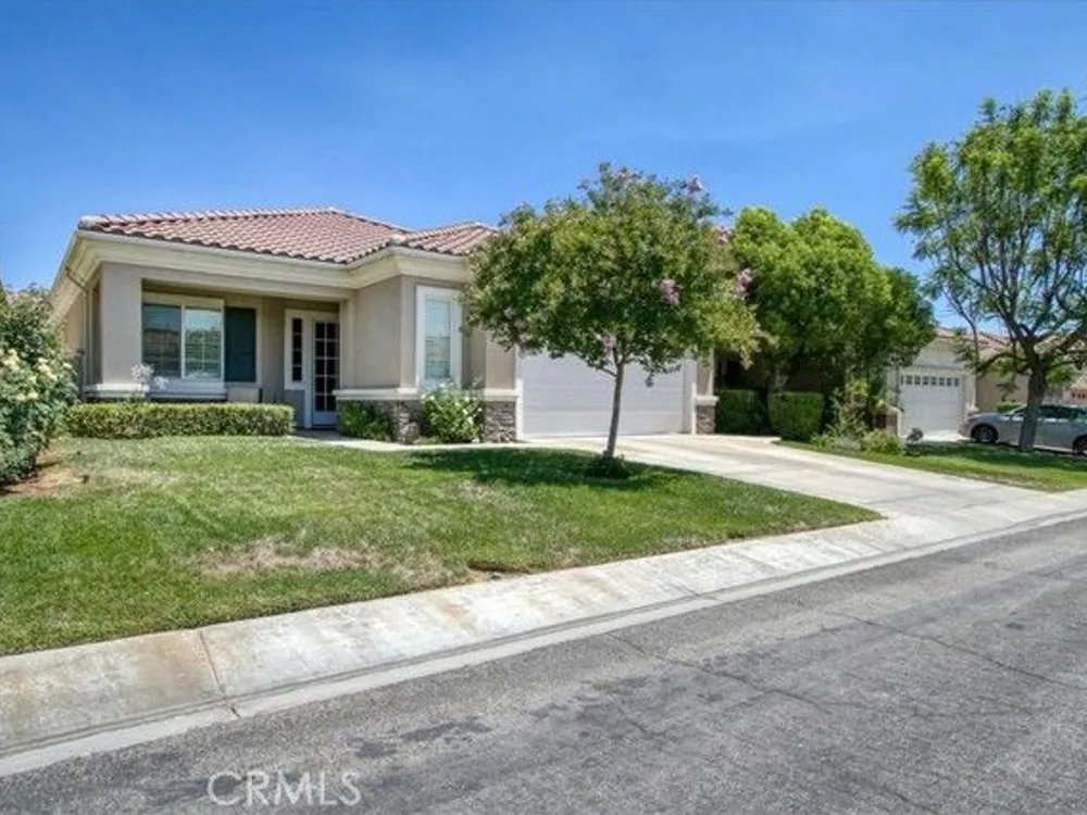 WELCOME HOME! Discover the perfect senior lifestyle in this beautiful 2 bed 2 bath home, situated within the secure, gated 55+ community of Solera at Oak Valley Greens in Beaumont. With the Large Mello/Roos bond already paid off, you can enjoy peace of mind from day one. This charming residence offers abundant storage with spacious walk-in closets in both bedrooms, along with central heating and air for year-round comfort. The kitchen features elegant Corian countertops, a pantry, and a breakfast bar—ideal for casual dining and gatherings. The laundry room, complete with a sink and cabinets, adds convenience to everyday living. Step outside into your private rear yard, beautifully landscaped with mature trees and shrubs, creating a serene outdoor sanctuary perfect for relaxing, gardening, or entertaining. The premier Del Webb community offers scenic mountain views, an active lifestyle, and a welcome escape from the intense desert heat. Since 2003, this community has attracted adults seeking a vibrant, resort-style environment with top-tier amenities, a prime location, and finely crafted homes. In the heart of the community, you'll find the impressive 18,000-square-foot Oakmont Clubhouse, which serves as the hub for social, fitness, and recreational activities. Inside, you'll discover a state-of-the-art fitness center, an indoor walking track, and dedicated studios for yoga, Pilates, and low-impact aerobics. The clubhouse also features arts and crafts rooms, a library, billiard tables, and more providing endless opportunities for entertainment and relaxation. Enjoy the outdoors with resort-style amenities including an outdoor pool and spa, tennis courts, and bocce ball courts surrounding the clubhouse. Nature enthusiasts will love the miles of scenic walking and biking trails, offering stunning views—perfect for hiking, mountain biking, nature watching, and horseback riding adventures. Adjacent to the community, the Oak Valley Greens Golf Course invites you to enjoy a picturesque round of golf on its meticulously maintained, par-72 course, renowned for its bunkers, native grasses, and scenic water features that wind through the community, providing breathtaking mountain vistas. This is an exceptional opportunity to embrace an active, vibrant lifestyle in a peaceful, scenic setting with all the amenities you could wish for. Don’t miss your chance to join this welcoming community, where convenience, recreation, and natural beauty come together.