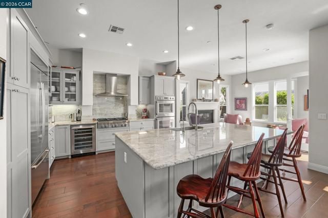 55+ Resort Living in Trilogy. Light & Bright with an Entertainer's Remodeled Kitchen That Really is a Gourmet Kitchen. Extended Light Granite Counters w/Additional Cabinets, Built-in Refrigerator, Double Convection Ovens w/Side-Door Opening, Top Oven w/Rotisserie, Separate Microwave with Additional Drawers, Lg. Single Sink, Pendant Lights, Trash Compactor. Stand Alone Clear Icemaker. Extensive Hardwood Floors, Fireplace in Morning Room, Lg. Built-ins at the Great Room & Office. Formal Dining Room Big Enough for all Your Furniture. Wonderful Paved Backyard w/Fireplace, Smoker & Regular BBQ, Big Area For Dining & Mature Trees. Seller Upgrades List will be at the Property. Builder 20 Year Pre-paid Solar Lease, Balance of Term to Be Transferred to Buyer. Gorgeous Clubhouse with Cafe, Event Center, Indoor & Outdoor Pools, Spa & Gym Facility, Pickleball/Tennis & Bocce Courts, On-Site & Offsite Activities and so Very Much More. You Really Need to Come & See!!!