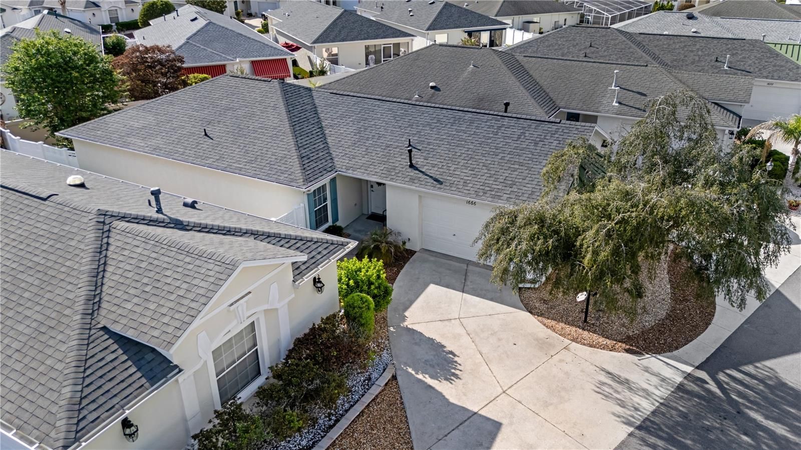 BOND PAID!! TURNKEY!! This beautifully appointed courtyard villa is truly move-in ready—just bring your toothbrush and start enjoying The Villages lifestyle. Located in a highly desirable neighborhood known for its one-of-a-kind, unique elevations, this home stands out immediately with its rare and attractive bay window front elevation and solid block and stucco construction. Inside, you’ll find newly installed luxury vinyl plank flooring throughout, volume ceilings, and a professionally painted interior that creates a clean, bright, and updated feel from the moment you walk in. The kitchen is both stylish and functional, featuring natural maple cabinetry, stainless steel appliances, a French door refrigerator, and a gas range—perfect for those who love to cook and entertain. Major systems have already been taken care of, offering peace of mind for years to come. The home features a newer roof (2022) and a high-end 3-ton, 18 SEER2 Carrier HVAC system installed in 2025 —a significant upgrade that provides superior efficiency and comfort. The attention to detail continues throughout the home, including California Closet systems in both the primary and guest bedrooms, high-end furnishings available turnkey, and a garage with professionally epoxy-coated flooring. The outdoor space is designed for true low maintenance, with the yard fully rocked so you can spend more time enjoying life and less time on upkeep. Location is everything, and this villa delivers—just minutes from the Polo Fields, Savannah Center, and an abundance of shopping, dining, and recreation options that make The Villages so special. This is a rare opportunity to own a fully upgraded, turnkey courtyard villa with a paid bond, premium systems, and distinctive curb appeal in one of the most sought-after areas.
