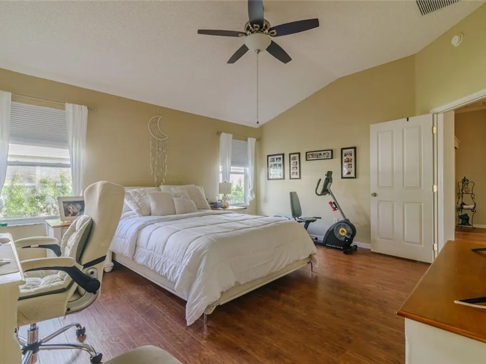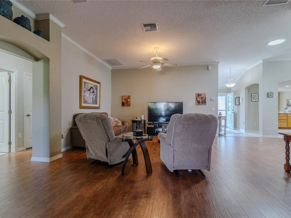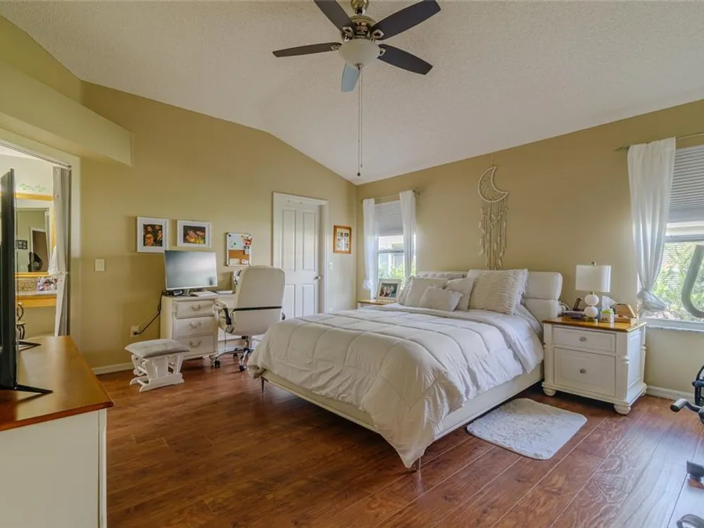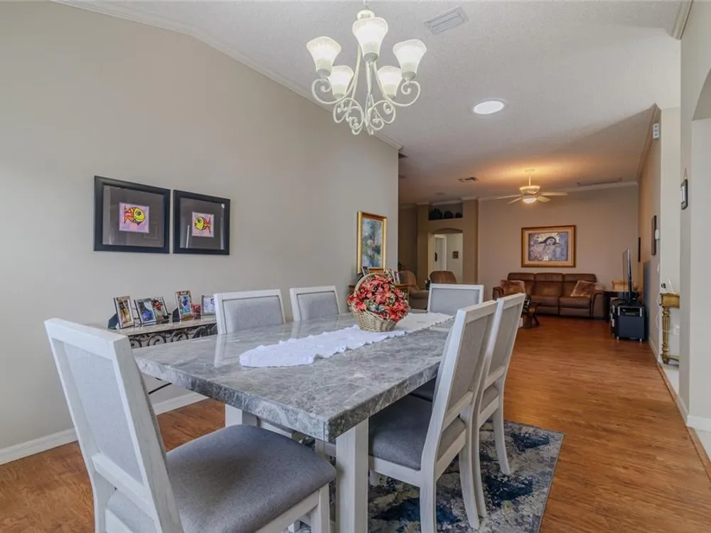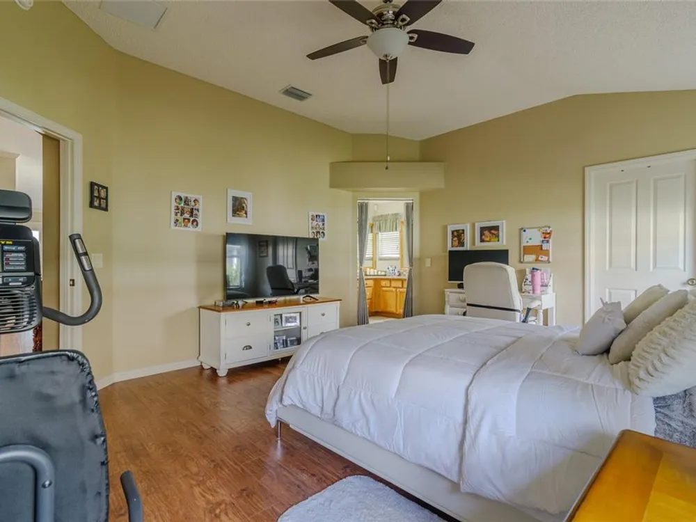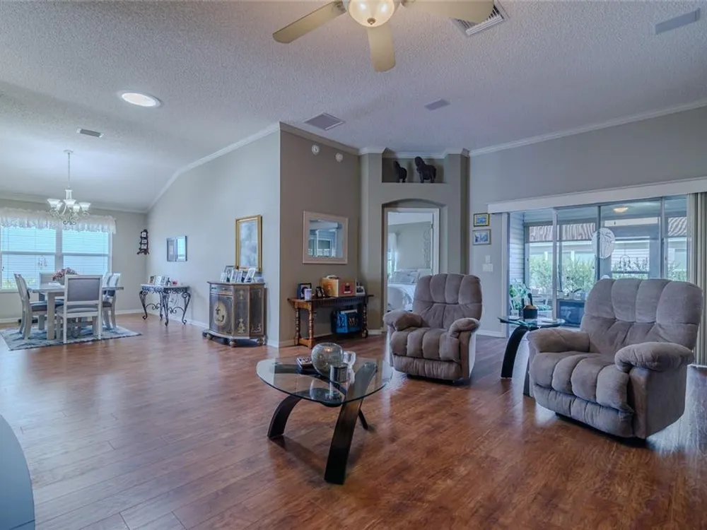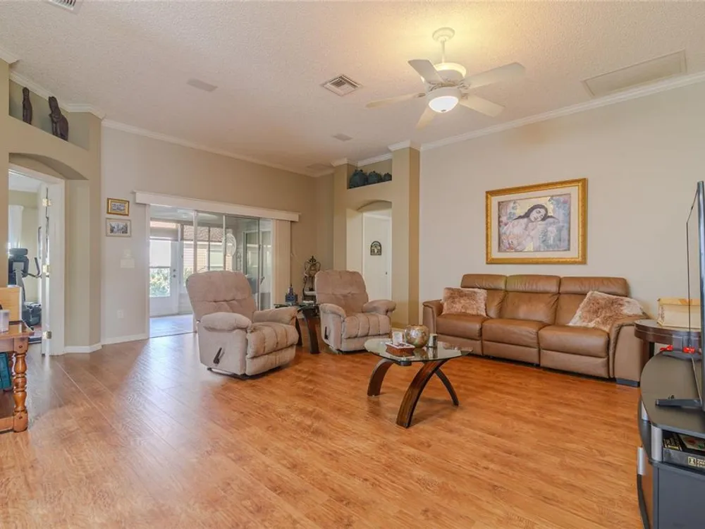 Welcome Home,,! Beautiful and Well Maintained 3/2 on a Corner Lot in The Village of Calumet Grove! BOND PAID, ROOF (2019) HVAC & HEATER (2019), 2 Car Garage & all-season Enclosed Lanai. Open-Bright & Inviting Living Spaces with tile Flooring and wood-look laminate throughout the main living area. The Open Eat-in Kitchen features Maple Cabinets, Granite Counters with Complimentary Backsplash, Stainless Appliances with plenty of cabinets and a pantry closet. Off the Living Room through Sliding Glass Doors, you will find the Enclosed lanai that is a wonderful area to have your morning coffee or afternoon cocktail...! The spacious primary suite includes dual sinks, and a walk-in shower, spacious guest bedroom and 3rd bedroom and a good size laundry room with extra flex space including a built-in desk. Most of the furniture staying with the house.! Located in the Village of Calumet Grove where you can experience the tranquil life in the north end, located close to some of the finest dining, golf and recreation the area. Visit the Nancy Lopez Legacy Country Club where there is always something good on the grill. The Lopez Legacy Golf Course is a 27-hole championship course with each nine named for one of Nancy's beautiful daughters. Executive golfers are in for a treat at either of the two courses found here, Walnut Grove or Briarwood. With three recreation centers close by, you'll never run out of things to do including Mulberry Grove Pool & Regional Recreation Center, plus your close to Mulberry Grove Shopping Center offering Grocery, Drugstore, Banking, Medical, VA Center, Restaurants etc. There is so much to do and see. Schedule your showing today! (Golf Cart is being sold separately)