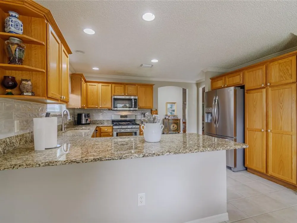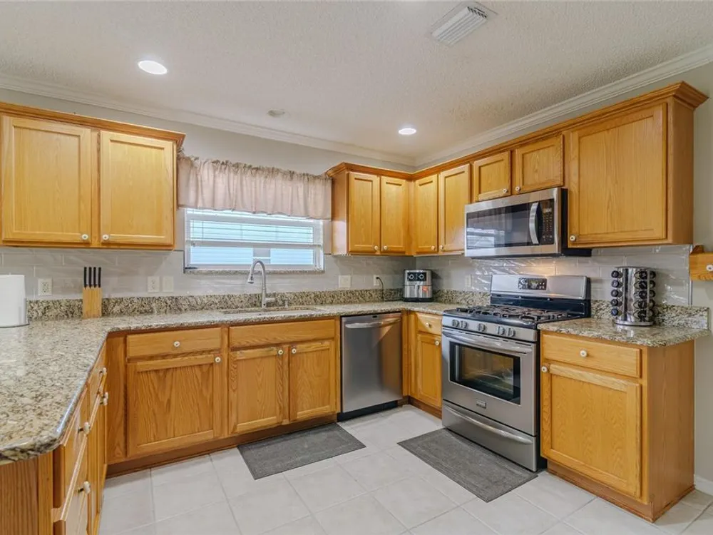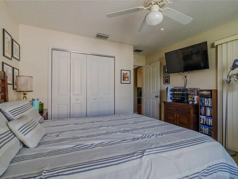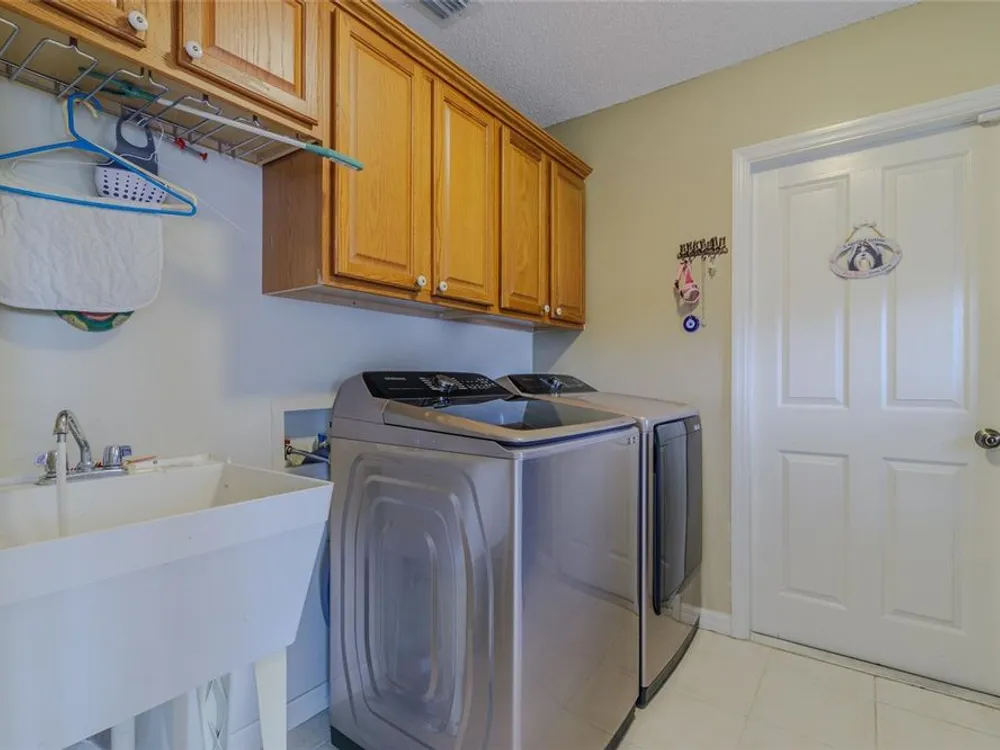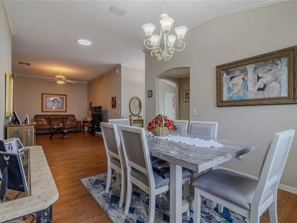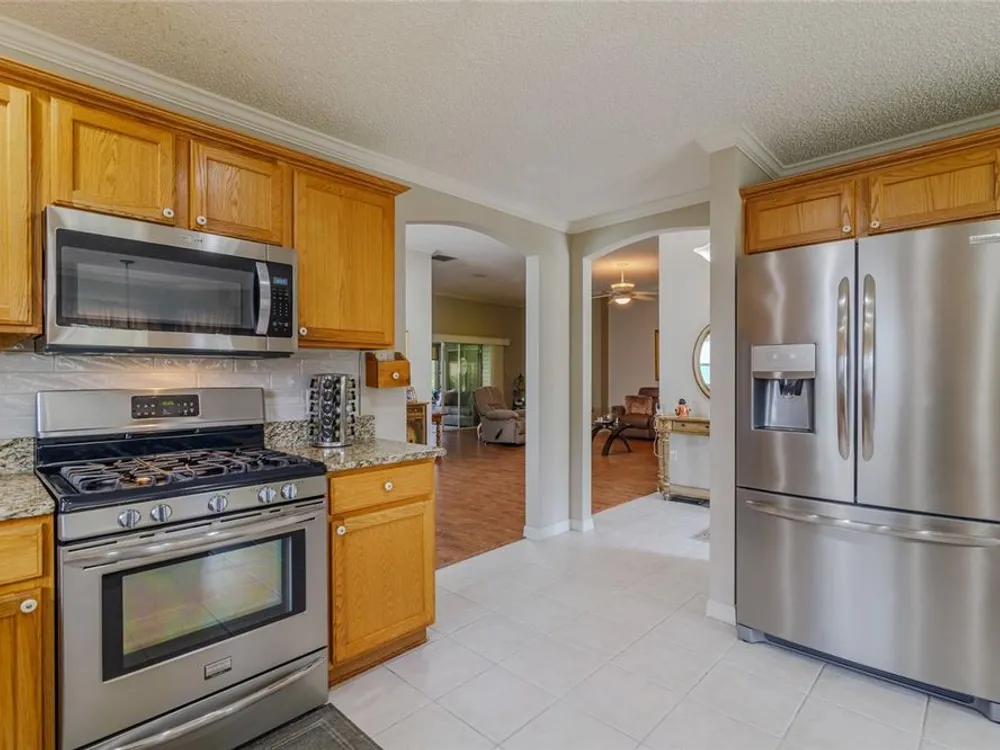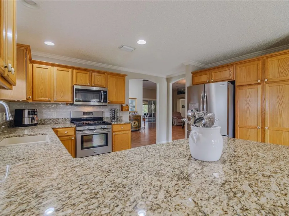 Welcome Home,,! Beautiful and Well Maintained 3/2 on a Corner Lot in The Village of Calumet Grove! BOND PAID, ROOF (2019) HVAC & HEATER (2019), 2 Car Garage & all-season Enclosed Lanai. Open-Bright & Inviting Living Spaces with tile Flooring and wood-look laminate throughout the main living area. The Open Eat-in Kitchen features Maple Cabinets, Granite Counters with Complimentary Backsplash, Stainless Appliances with plenty of cabinets and a pantry closet. Off the Living Room through Sliding Glass Doors, you will find the Enclosed lanai that is a wonderful area to have your morning coffee or afternoon cocktail...! The spacious primary suite includes dual sinks, and a walk-in shower, spacious guest bedroom and 3rd bedroom and a good size laundry room with extra flex space including a built-in desk. Most of the furniture staying with the house.! Located in the Village of Calumet Grove where you can experience the tranquil life in the north end, located close to some of the finest dining, golf and recreation the area. Visit the Nancy Lopez Legacy Country Club where there is always something good on the grill. The Lopez Legacy Golf Course is a 27-hole championship course with each nine named for one of Nancy's beautiful daughters. Executive golfers are in for a treat at either of the two courses found here, Walnut Grove or Briarwood. With three recreation centers close by, you'll never run out of things to do including Mulberry Grove Pool & Regional Recreation Center, plus your close to Mulberry Grove Shopping Center offering Grocery, Drugstore, Banking, Medical, VA Center, Restaurants etc. There is so much to do and see. Schedule your showing today! (Golf Cart is being sold separately)