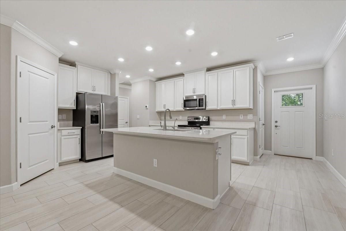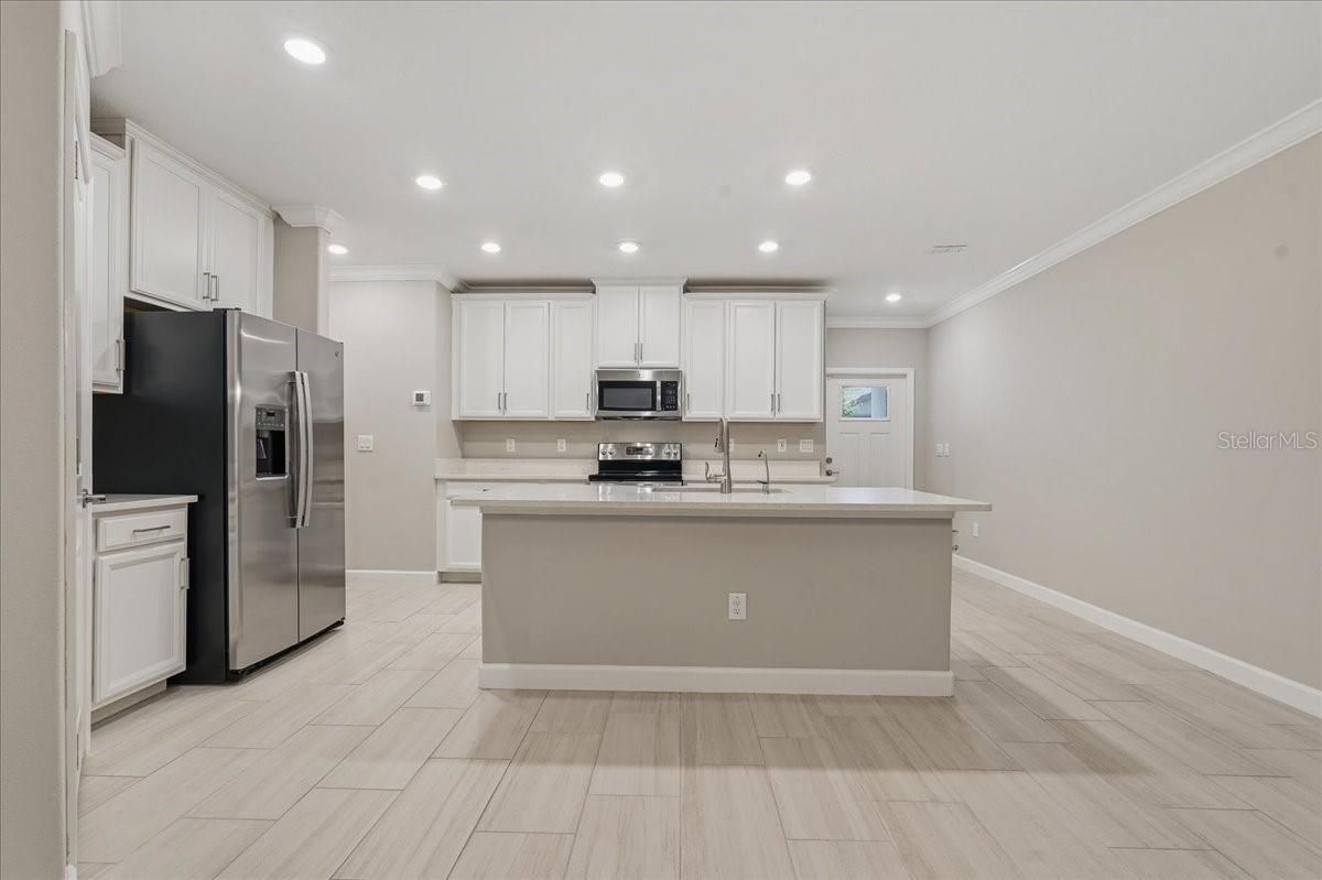 - Ceiling Fan(s), Crown Molding, Living/Dining Room, Open Floorplan, Main Level Primary, Solid-Wood Cabinets, Stone Counters, Walk-In Closet(s)