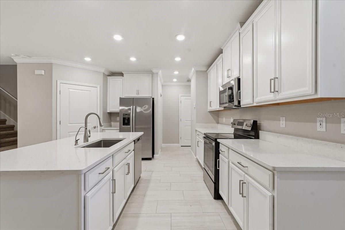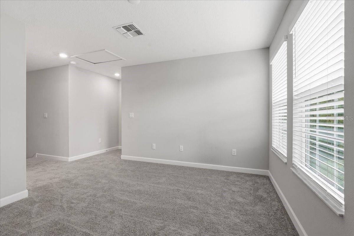 Fantastic opportunity to own a "newer" upgraded home at Angeline at a great price! Come and take a look at this pristine, upgraded home and make it your very own! This home has 2 bedrooms, 2.5 baths, plus a loft and a spacious 2 car garage. The home sits on a wonderful conservation lot with a water pond view creating a tranquil oasis to enjoy all day! The kitchen, with quartz countertops and stainless appliances is perfectly situated, giving you a full view of the living / dining room combination! The primary bedroom is on the first floor, and upstairs you will find the 2nd bedroom with a loft - a great separate area for guests to enjoy full privacy! The home comes with a washer and dryer, new carpet in the bedrooms and loft, as well as epoxy flooring in the garage. Don't miss this chance to live at Angeline in Land O' Lakes, an active 55+ community with a resort style clubhouse featuring numerous amenities, including an on-site restaurant, community pool, fitness center, pickleball courts, shuffleboard, bocce ball, and so much more!