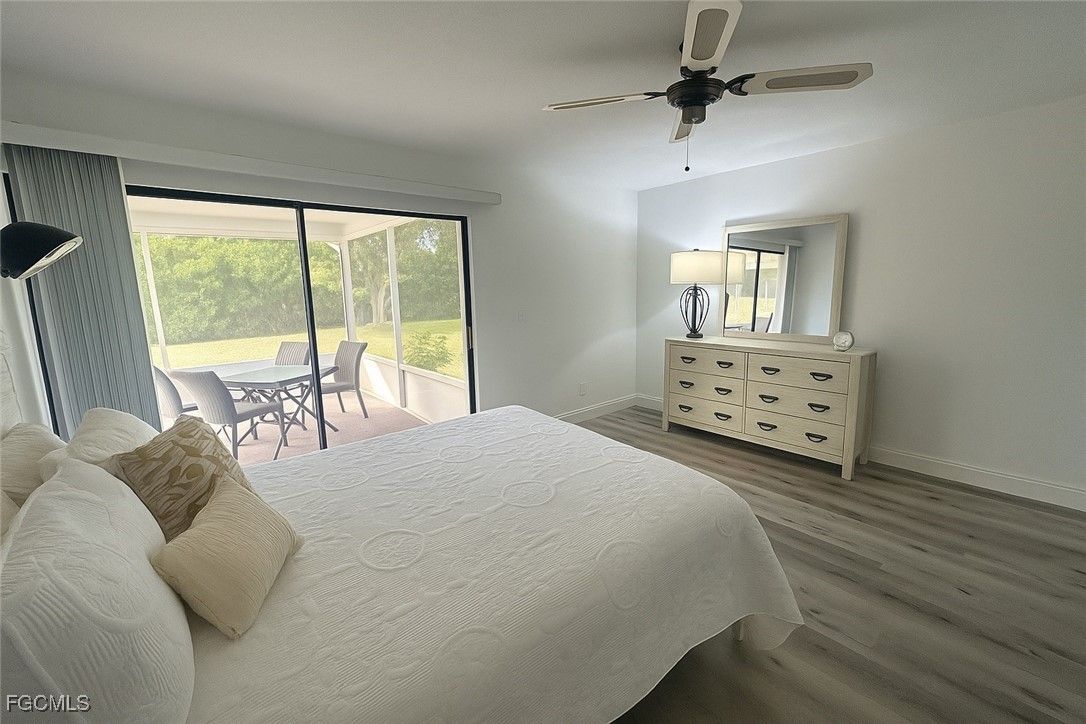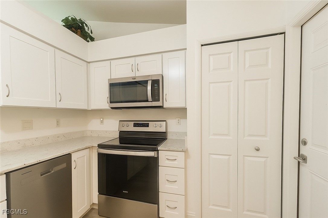 Beautifully Updated & Rare 3-Bedroom Home in Coveted Cinnamon Cove Welcome to this pristine, move-in-ready 3-bedroom residence—one of the rarest floor plans available in the highly desirable community of Cinnamon Cove. Perfectly positioned in an ideal location, this home offers both tranquility and convenience while showcasing tasteful updates throughout. Step inside to an airy, open-concept living space with soaring ceilings, abundant natural light, and a seamless flow ideal for both relaxing and entertaining. The spacious living room features large sliding glass doors that open to the expansive screened-in lanai, offering peaceful views of lush green space—your own private, serene backdrop. The beautifully renovated kitchen boasts crisp white cabinetry, sleek stainless-steel appliances, quartz countertops, and multiple arched pass-throughs that add architectural charm while enhancing openness. A dedicated dining area with an elegant light fixture creates the perfect setting for gatherings. The primary suite is a true retreat with direct access to the lanai, generous closet space, and an updated en-suite bath with a modern, walk-in tiled shower and safety grab bar. Additional bedrooms are bright, comfortable, and ideal for guests, a home office, or hobby space. Enjoy Florida living at its finest on the large screened lanai—perfect for morning coffee, dining outdoors, or simply enjoying the peaceful greenery and mature trees behind the home. Community & Fees: Cinnamon Cove is a beautifully maintained, amenity-rich gated community. The HOA fee is $2,520 per quarter and includes flood insurance, offering both value and peace of mind. Estimated annual taxes: approximately $4,200. This highly sought-after community is known for its convenient location—just minutes from shopping, dining, beaches, hospitals, and everything Southwest Florida living has to offer. Don’t miss this rare opportunity to own a 3-bedroom home in Cinnamon Cove—updated, bright, spacious, and ideally situated.