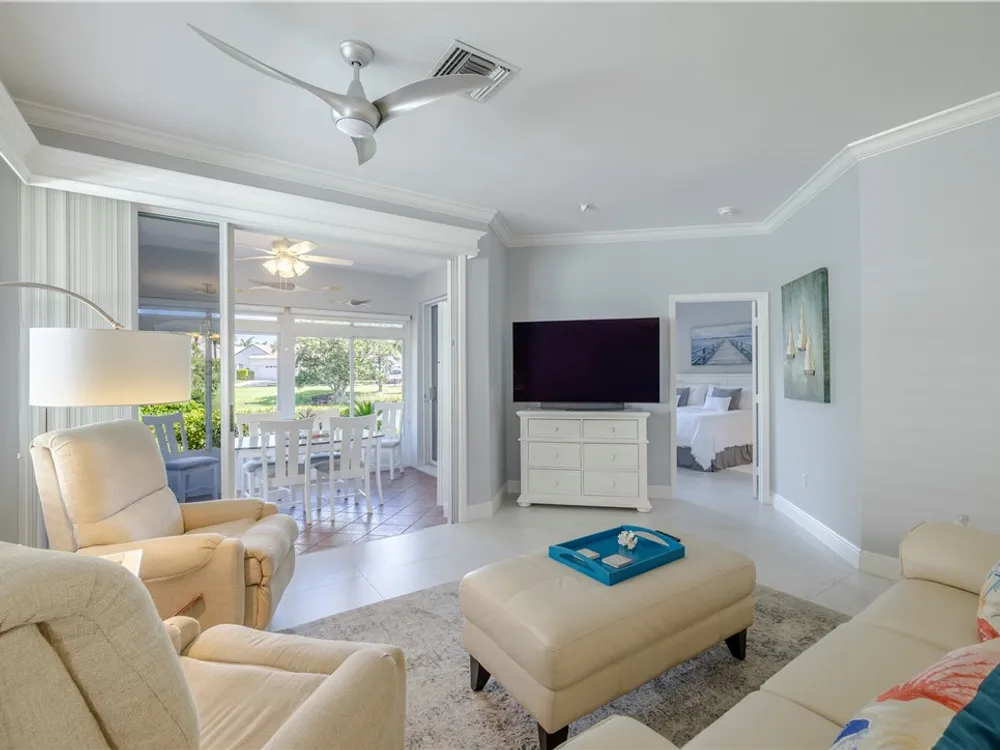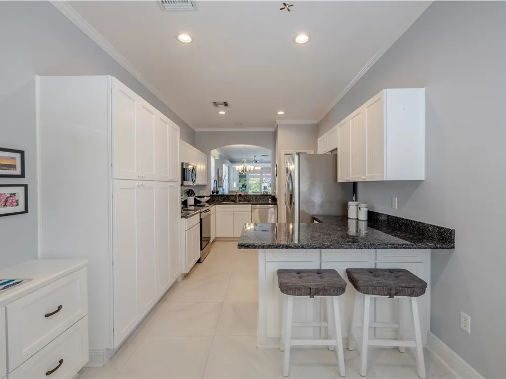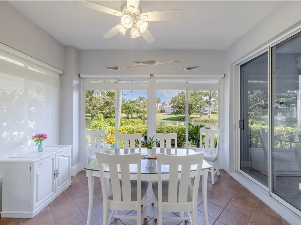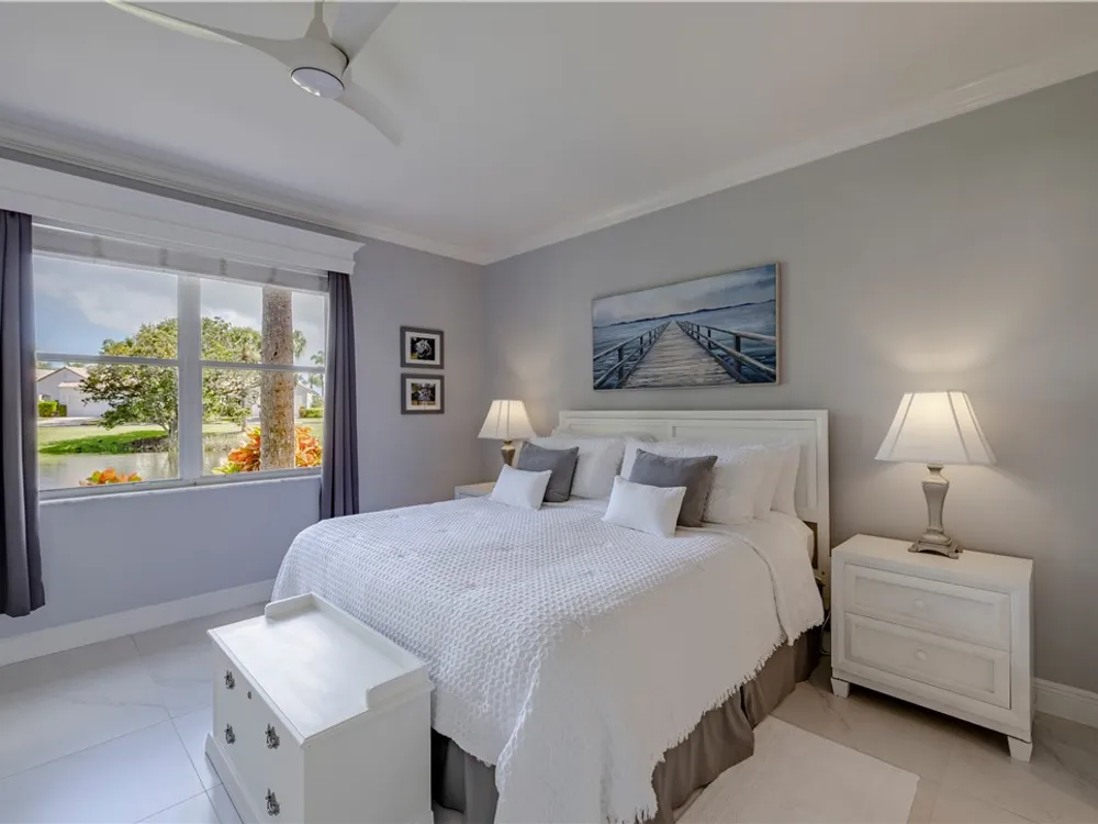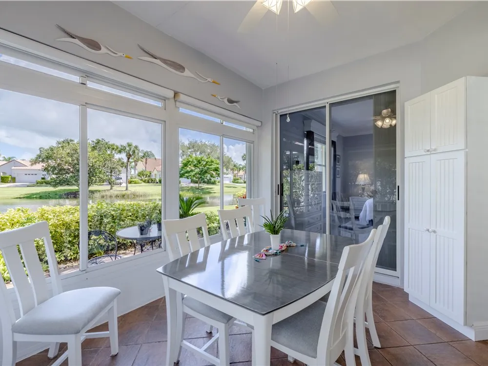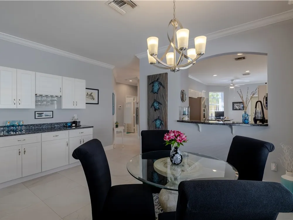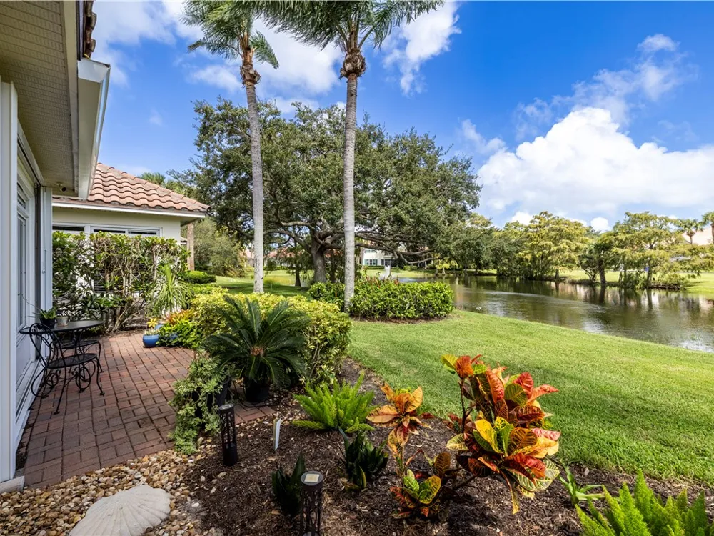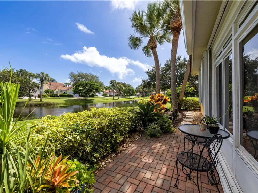 Picture perfect pond/lakefront home in popular Victoria Island. A few outstanding features in this home are new roof & water heater 2024, gutters 2025, updated cabinet pullouts & pantry in kitchen, re piped in 2019 and paver patio in rear where you can enjoy watching the plethora of birds. Fabulous built in bar conveniently located between the Dr and LR! Beautiful porcelain tile floors throughout, painted inside in 2020. As you walk to the front door, you are greeted with landscaping that has been refreshed with white rocks and plants. Minutes from the VI pool area. This is a winner!!