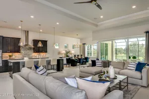 Enjoy all the benefits of a new construction home and experience a new level of retirement living at our newest Del Webb community, Del Webb River Reserve, with a free Golf Cart included. This brand-new active adult community represents everything that your next chapter in life should be about: Finding a place to belong and living life the way you want. Envision a thoughtfully crafted, resort-style residence nestled in nature with expansive amenities and vibrant gathering areas that will foster lifelong connections. This gated, active adult community is located 30 minutes north of Downtown Tampa. Featuring the open-concept Stellar floor plan, this home has all the space and upgraded finishes you've been looking for. The designer gourmet kitchen showcases a large center island with a large single bowl granite sink, stylish white cabinets, 3cm quartz countertops with tiled backsplash, a large pantry, and Whirlpool stainless steel appliances including a dishwasher, built-in oven and microwave, and stovetop with range hood. The bathrooms have upgraded stylish cabinets and quartz countertops and there is a walk-in shower and dual sinks in the Owner's bath. There is 9''x36'' tile flooring in the main living areas, flex room, bathrooms and laundry room and stain resistant carpet in the bedrooms. Additional upgrades include tray ceiling at gathering room, screened in lanai, LED downlights and floor outlet in the gathering room, upgraded brushed nickel lighting and door hardware throughout and a Smart Home technology package with video doorbell. Enjoy peace of mind with Pulte's transferable, 10-year Limited Structural Warranty that covers materials and workmanship in the 1st year, workability of plumbing, electrical, HVAC, and other mechanical systems through the 2nd year, various types of water infiltration and internal leaks through the 5th year, and the structural integrity of the home through the 10th year. Plus, we're currently offering limited-time incentives and below-market rates!