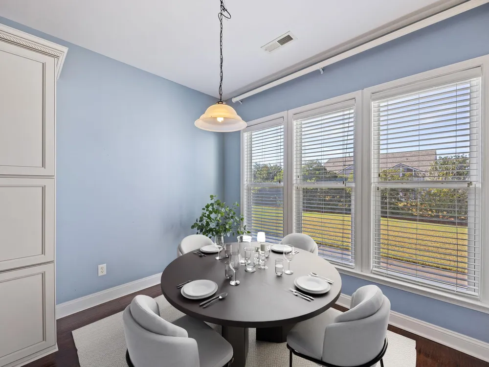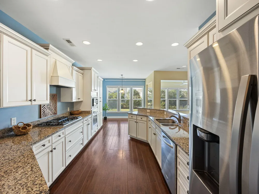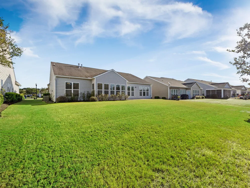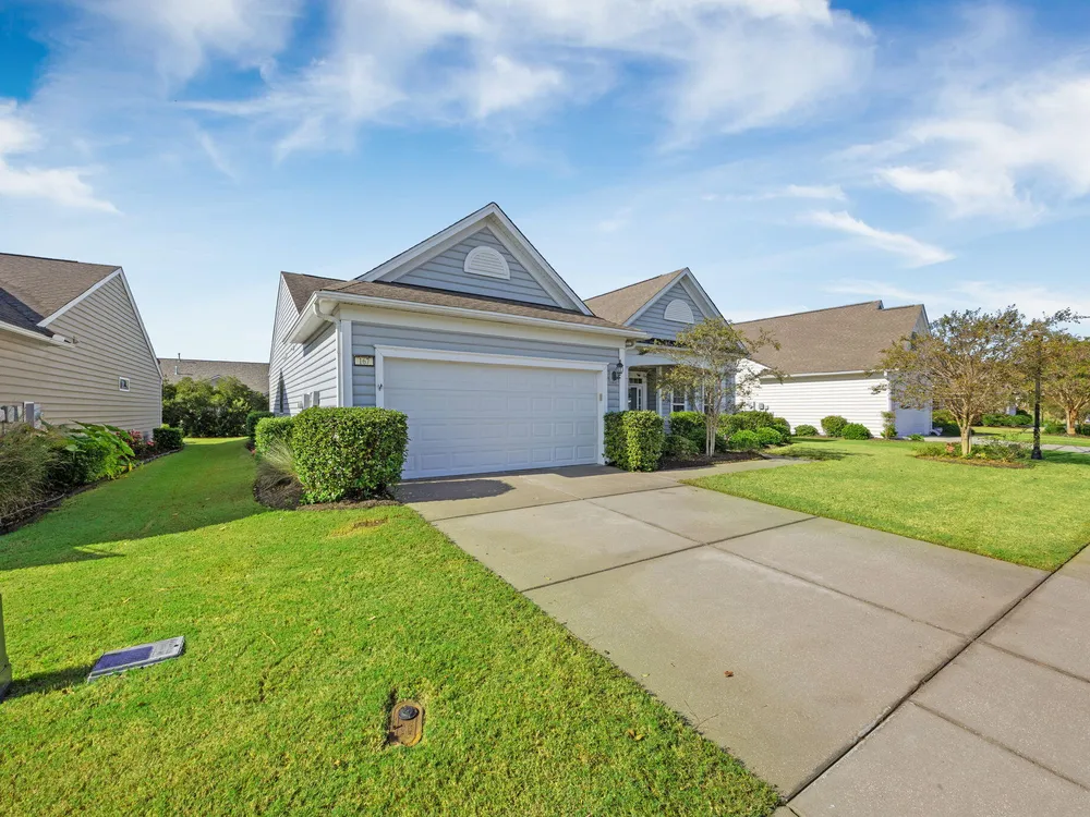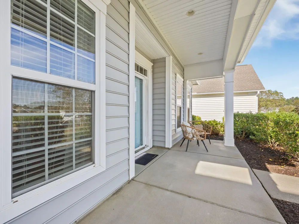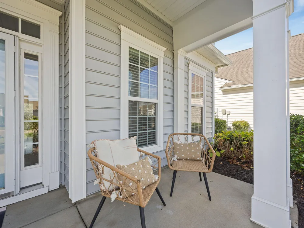 Welcome to resort-style living in this beautifully maintained 3-bedroom, 2 bath home, perfectly situated on a desirable lot in the sought-after Del Webb community of Cane Bay. From the moment you arrive, the charming front porch and abundance of windows fill the home with natural light, creating an inviting atmosphere. Inside, you're greeted by a third bedroom or office space. The thoughtfully designed kitchen features a granite breakfast bar, hood vent, gas cooktop and double wall ovens with built in microwave. The attached eat-in area is perfect for entertaining or enjoying your morning coffee. For larger gatherings, a separate dining room offers additional space for hosting. Storage is abundant with custom cabinets in the laundry room and a two car garage. The spacious living roomis bathed in natural light, complemented by a gas fireplace. An added sunroom offers the perfect spot to relax or provide extra room for entertaining. The generous primary suite includes a tray ceiling, walk-in closet, and a spa-like ensuite bath complete with a soaking tub and separate shower. The additional bedroom is also a suite and ideal for guests or family. Del Webb at Cane Bay is a gated, golf cart-friendly community offering world-class amenities including resort-style pools, tennis courts, a fitness center, miles of walking and jogging trails, and a vibrant calendar of community events all just minutes from shopping, dining, and everyday conveniences. Don't miss your chance to enjoy the best of Lowcountry living in one of the area's premier active adult communities!